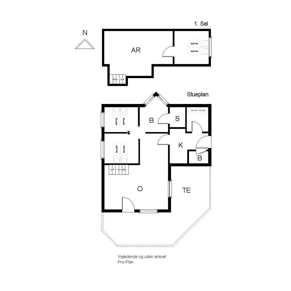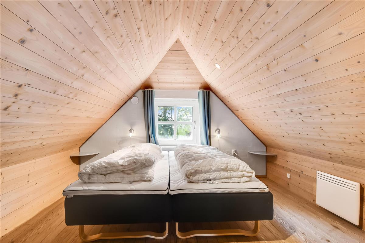 Bettengrösse: 2 Doppelbetten mit je zwei Matratzen 90 x 200 cm + 1 Doppelbett mit je zwei Matratzen 80 x 200 cm + 1 Etagenbett, wobei das obere Koje 80 x 200 cm ist, und das untere koje 120 x 200 cm ist.