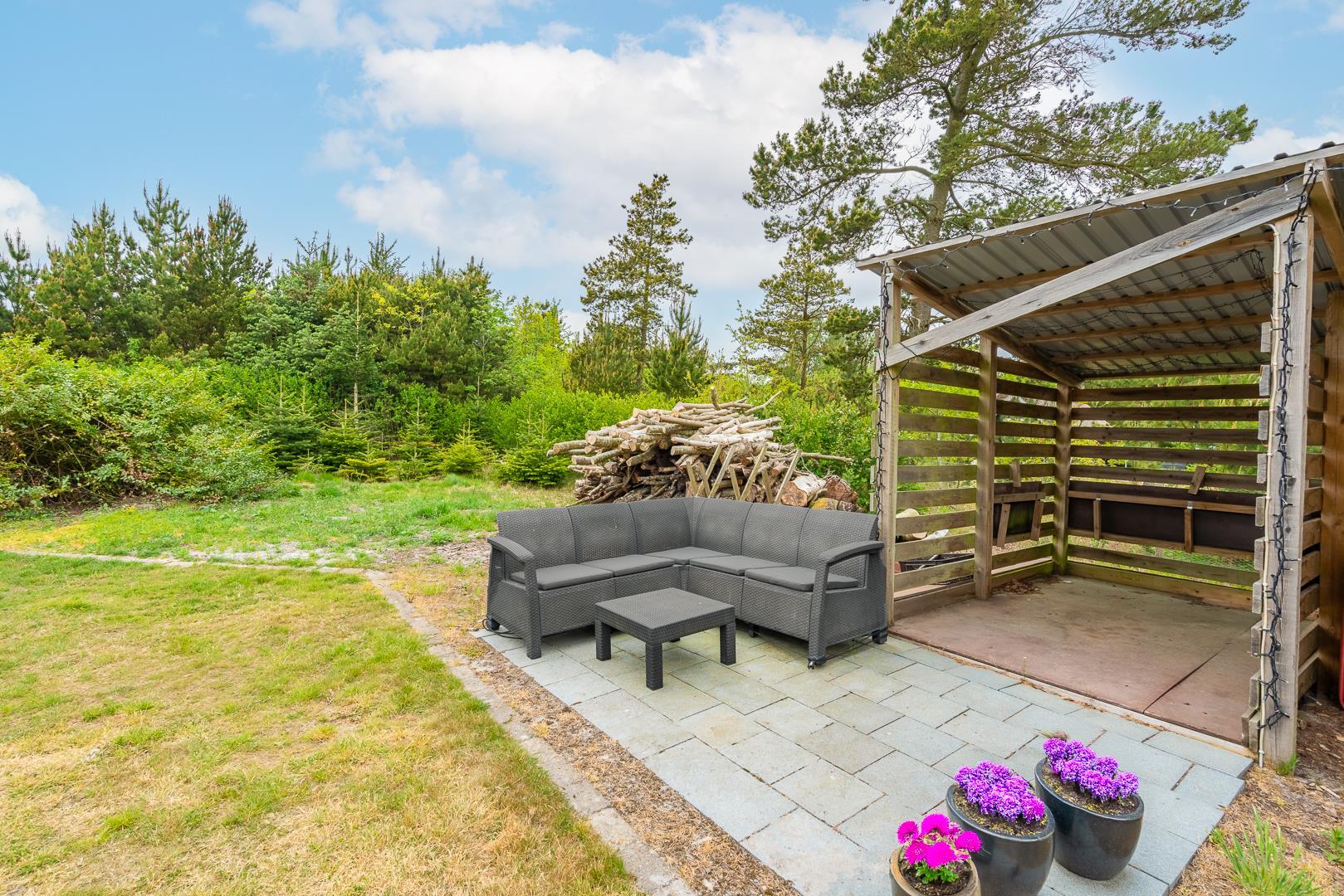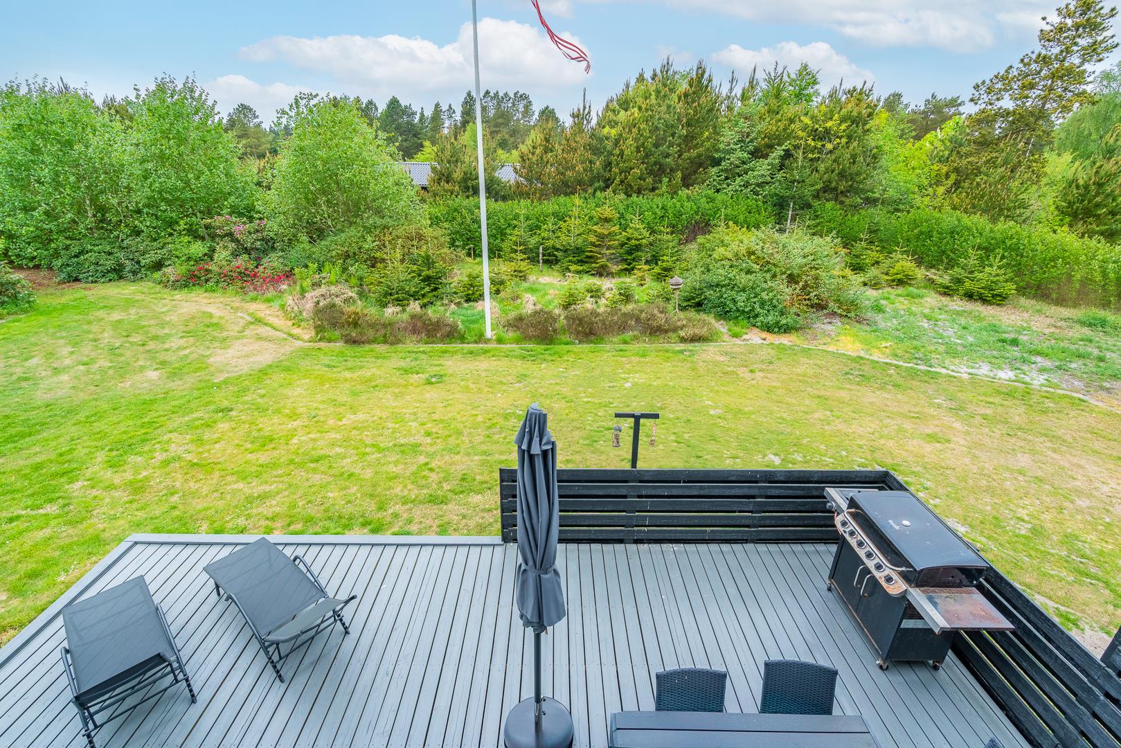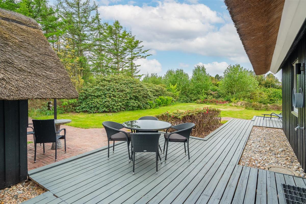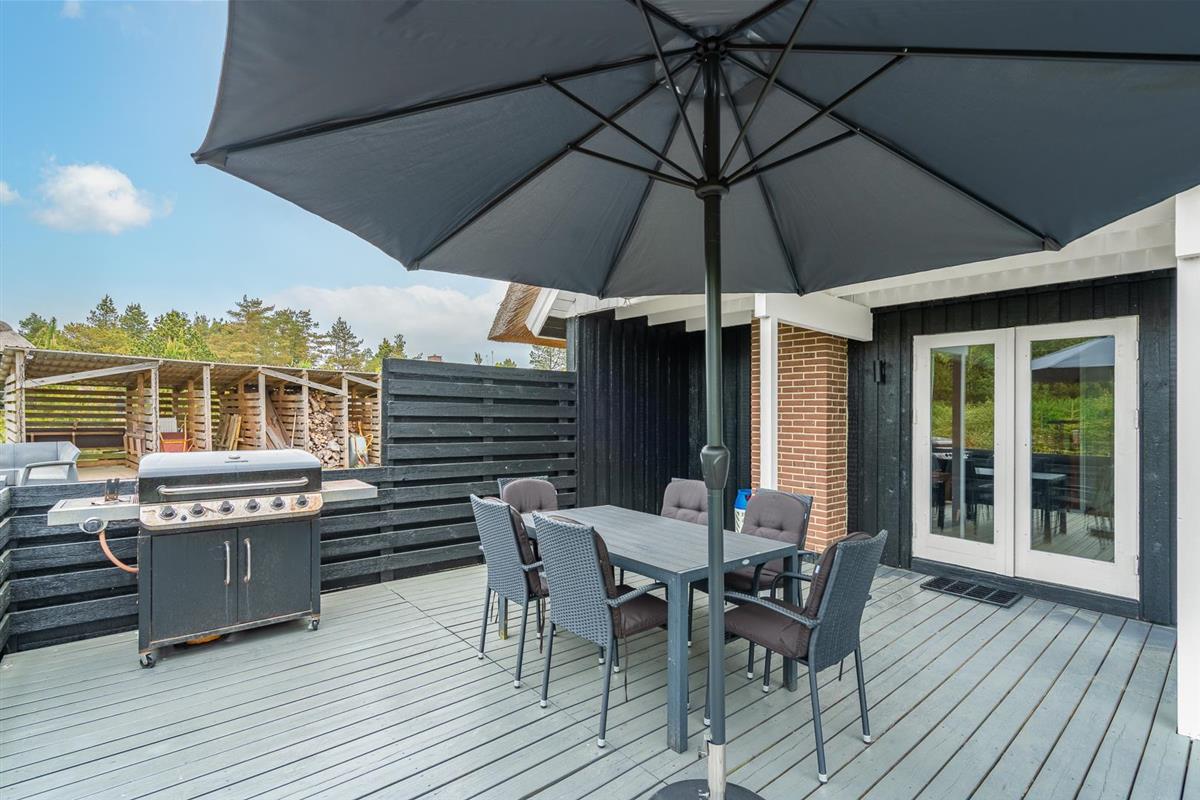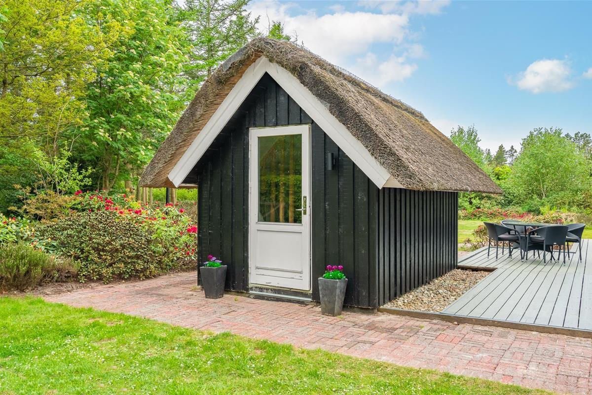 Im Obergeschoss lädt eine kleine Leseecke auf der Galerie zu ruhigen Momenten ein. Mehrere Terrassen – teils überdacht – mit Garten- und Loungemöbeln sowie Liegestühlen bieten vielfältige Möglichkeiten zur Erholung im Freien. Für mitgebrachte Fahrräder steht ein abschließbarer Abstellraum zur Verfügung.