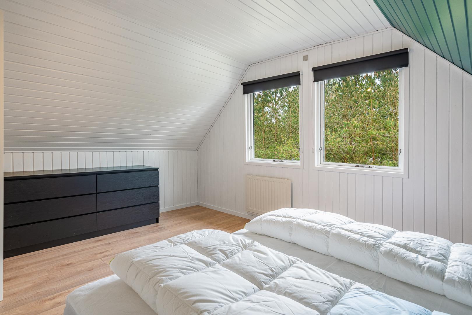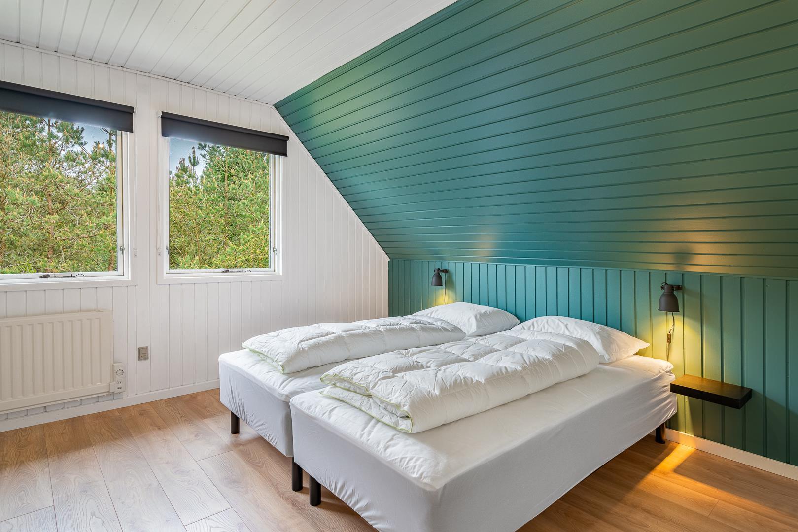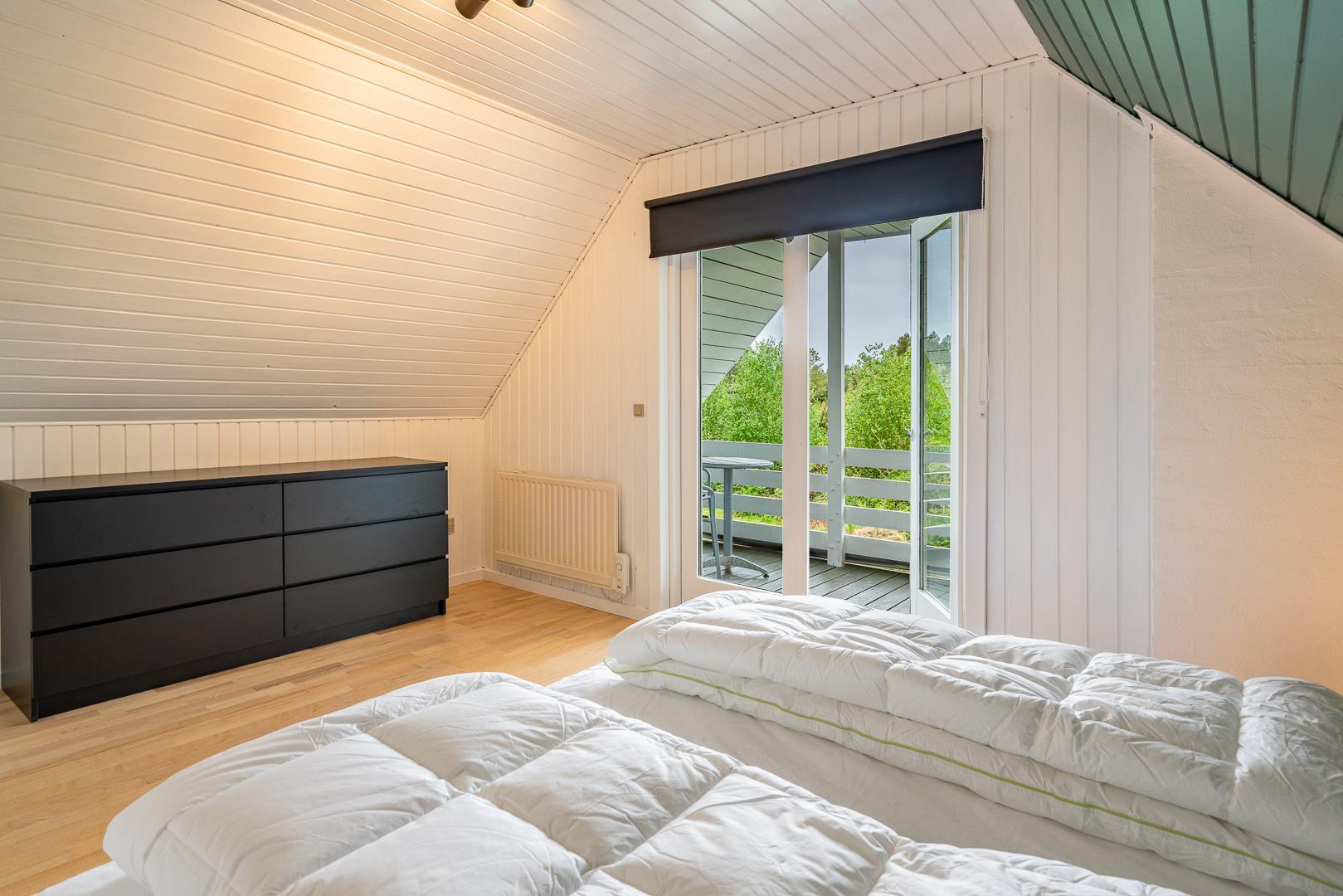 Das Haus verfügt über drei Schlafzimmer mit neuen Betten und Holzfußböden – eines im Erdgeschoss und zwei besonders geräumige Zimmer im Obergeschoss. Von einem Schlafzimmer aus gelangen Sie auf einen überdachten Balkon, ideal für den ersten Kaffee am Tag.