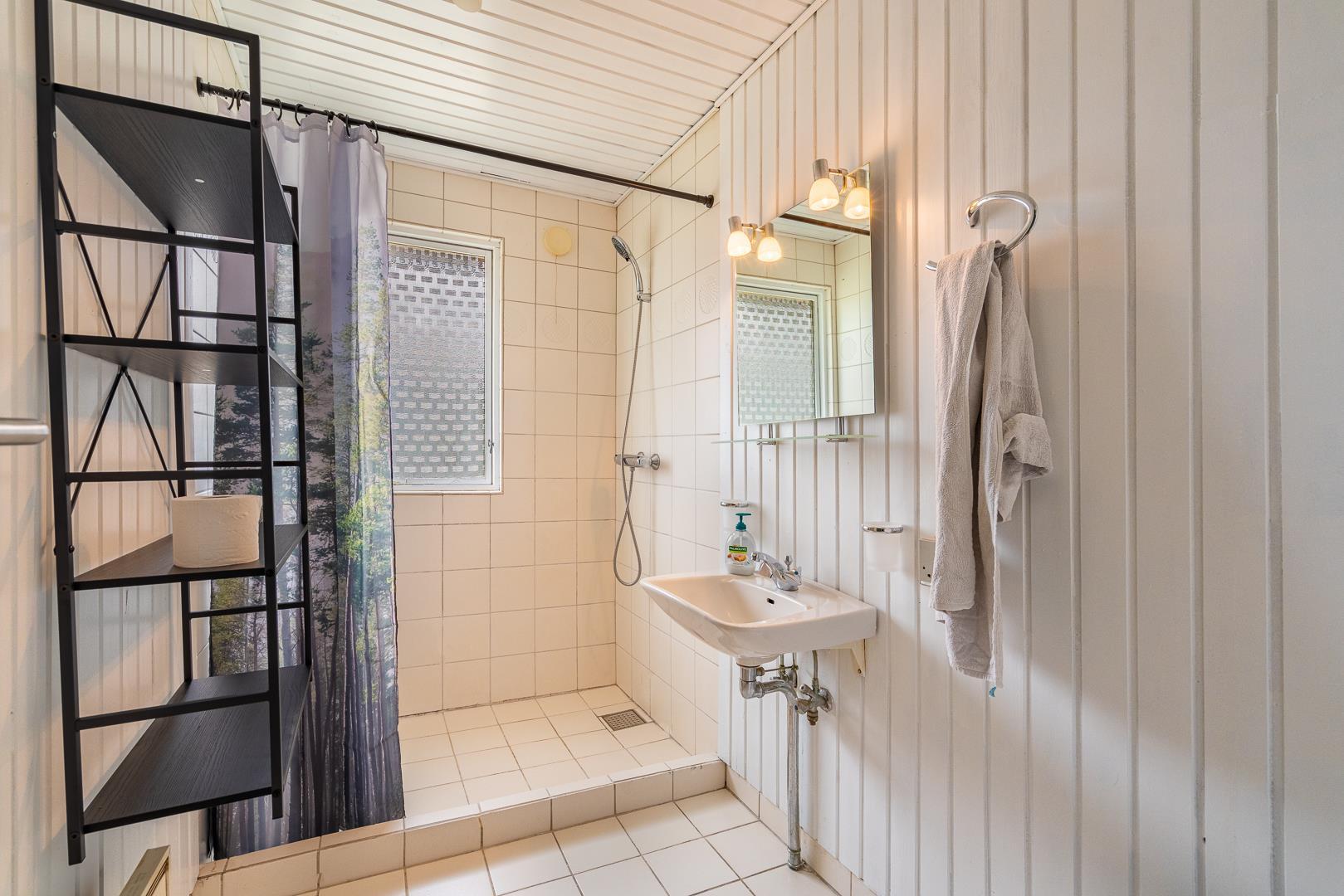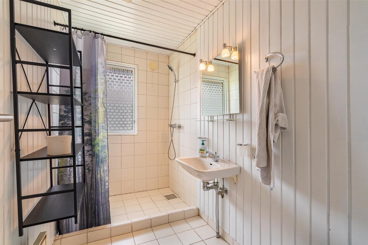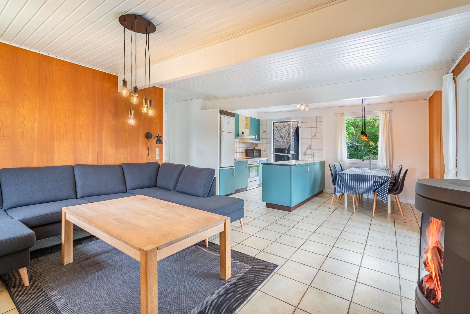 Im Inneren erwartet Sie ein heller, offener Wohnbereich mit integrierter Küche, Essplatz und gemütlicher Sofaecke. Der Kaminofen sorgt für behagliche Wärme an kühleren Abenden. Die große, geschützte Naturgrundstück bietet Ruhe und Freiheit für Mensch und Tier. Das Badezimmer verfügt über eine großzügige Dusche.