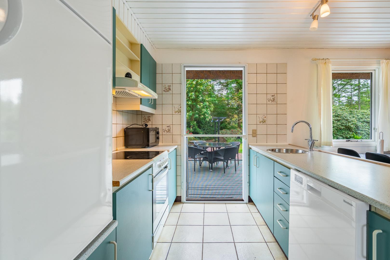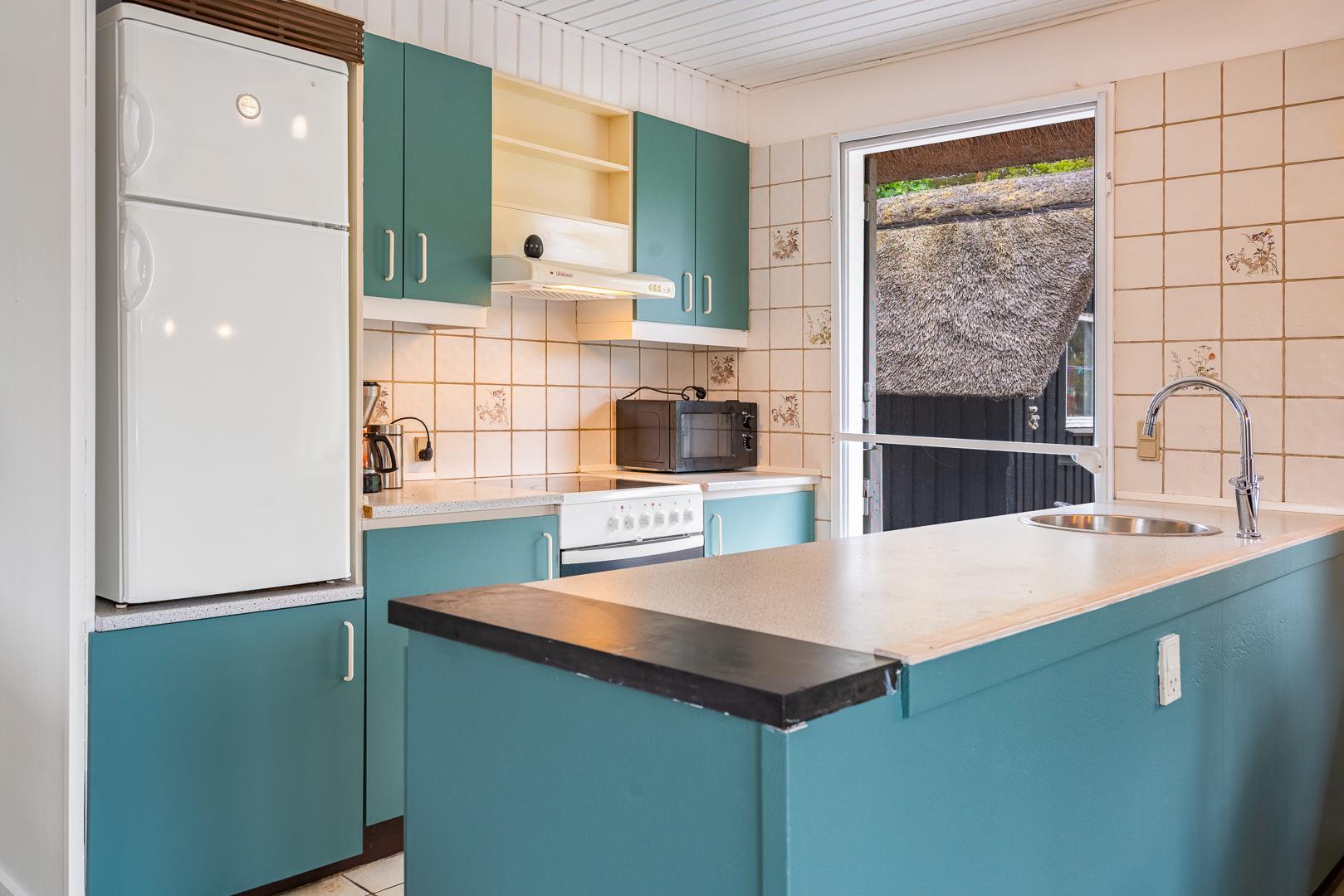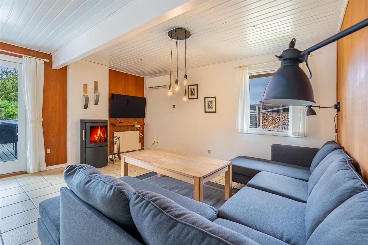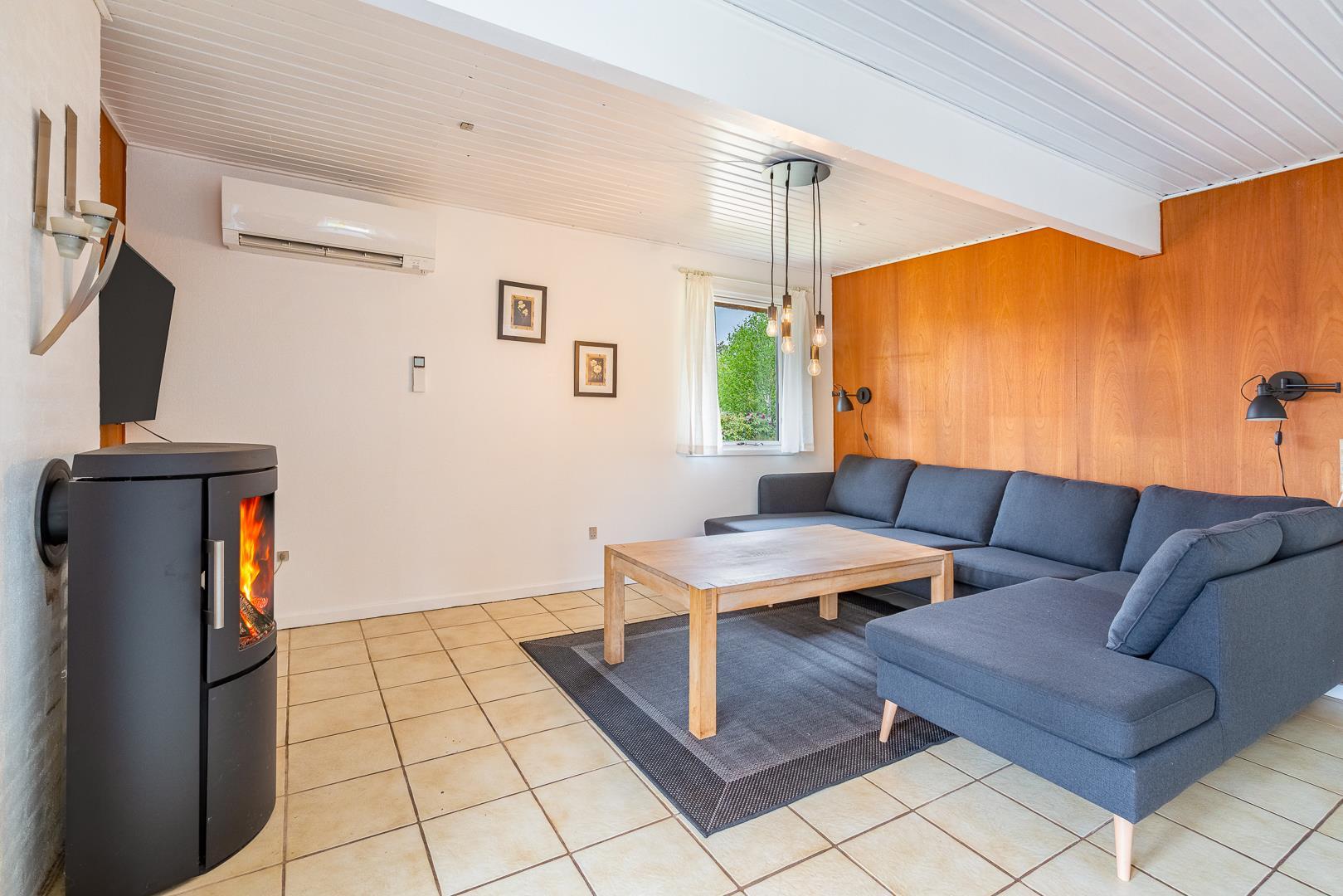 Im Inneren erwartet Sie ein heller, offener Wohnbereich mit integrierter Küche, Essplatz und gemütlicher Sofaecke. Der Kaminofen sorgt für behagliche Wärme an kühleren Abenden. Die große, geschützte Naturgrundstück bietet Ruhe und Freiheit für Mensch und Tier. Das Badezimmer verfügt über eine großzügige Dusche.