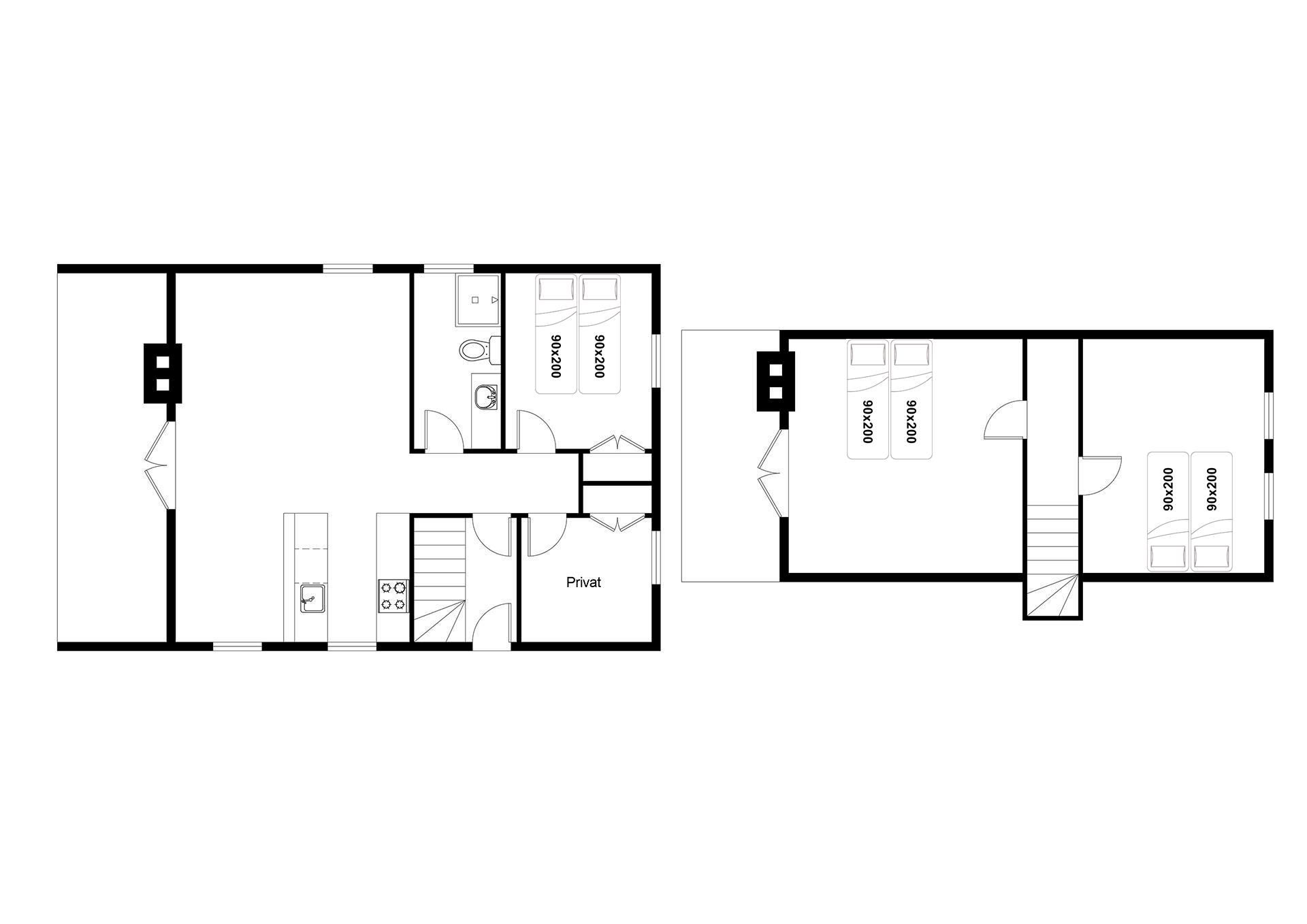 Bettengrösse: 3 Doppelbetten mit je 2 Matratzen á 90 x 200 cm