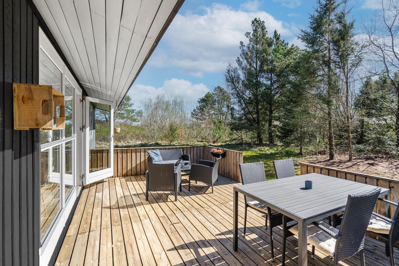 An einem sonnigen Tag können Sie die schöne Terrasse genießen, oder wenn Sie es vorziehen, ist auch ein überdachter Teil vorhanden.