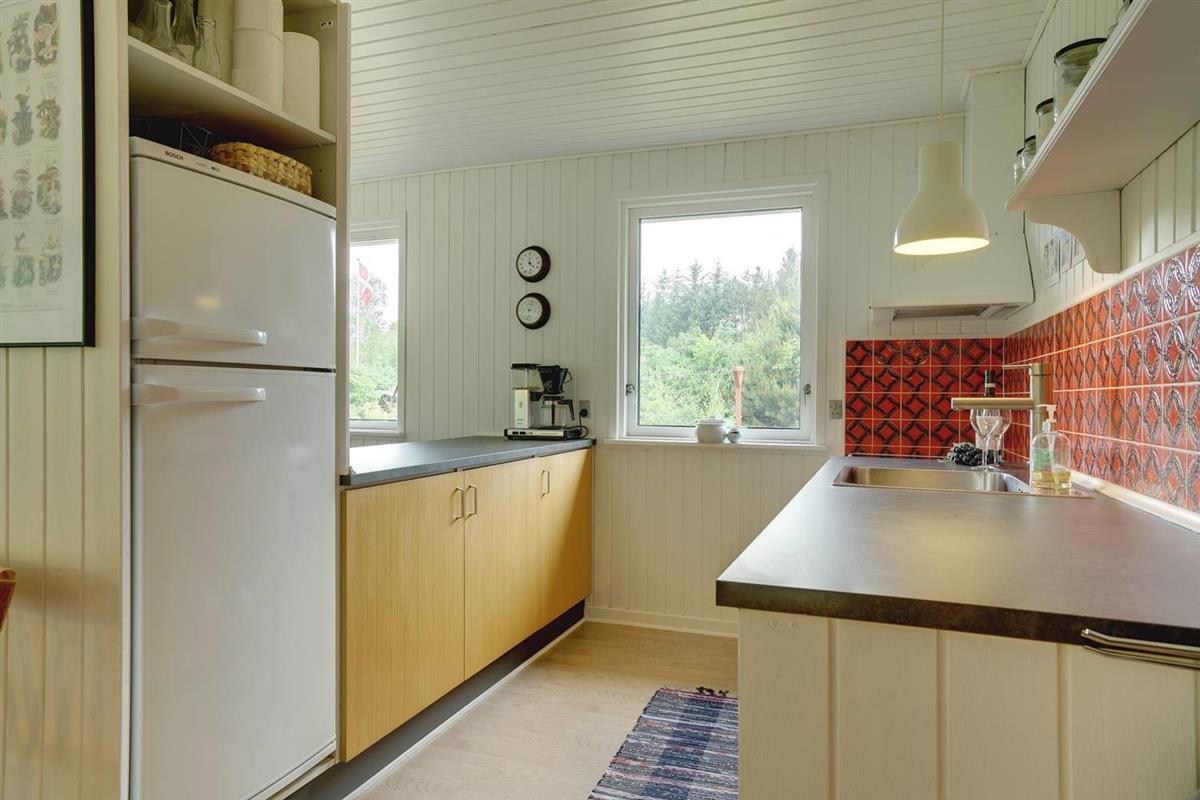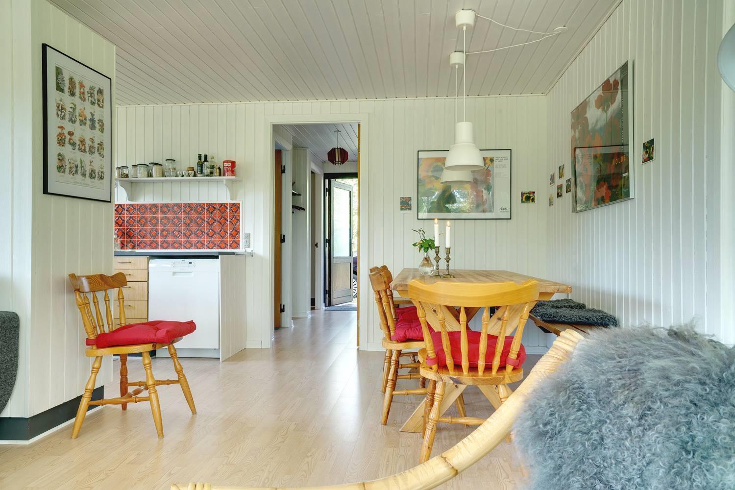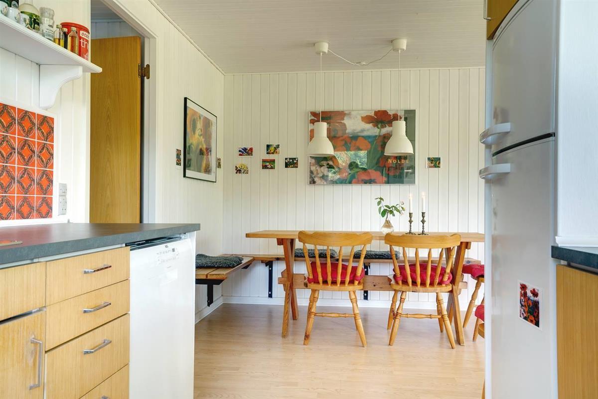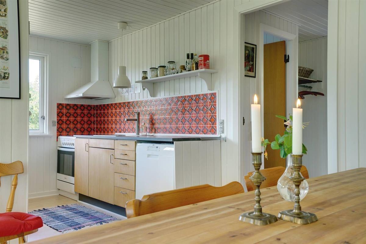 Einfach eingerichtetes Ferienhaus, aber gut gepflegt und teilweise renoviert. Schönes Grundstück mit überdachter Terrasse, ruhig und ungestört gelegen. 2 gute Schlafzimmer mit Doppelbett und 1 Schlafraum mit Etagenbett - das Haus kann jedoch nur für bis zu 4 Personen gemietet werden. Schönes Wohnzimmer mit TV und Holzofen. Authentische, charmante Küche mit Geschirrspüler, separatem Gefrierfach. Badezimmer teilweise renoviert 2017. Ein Haus mit gutem Preis-Leistungs-Verhältnis und passend für die kleinere Familie. Das Haus wird als Nichtraucherhaus und ohne Haustiere vermietet.