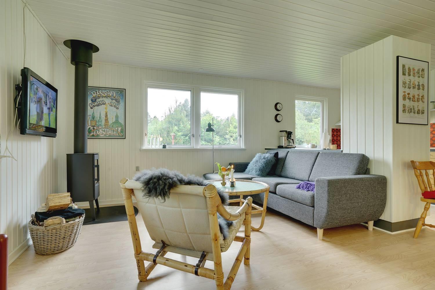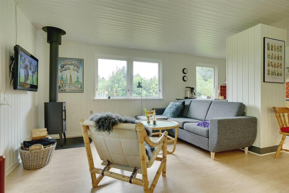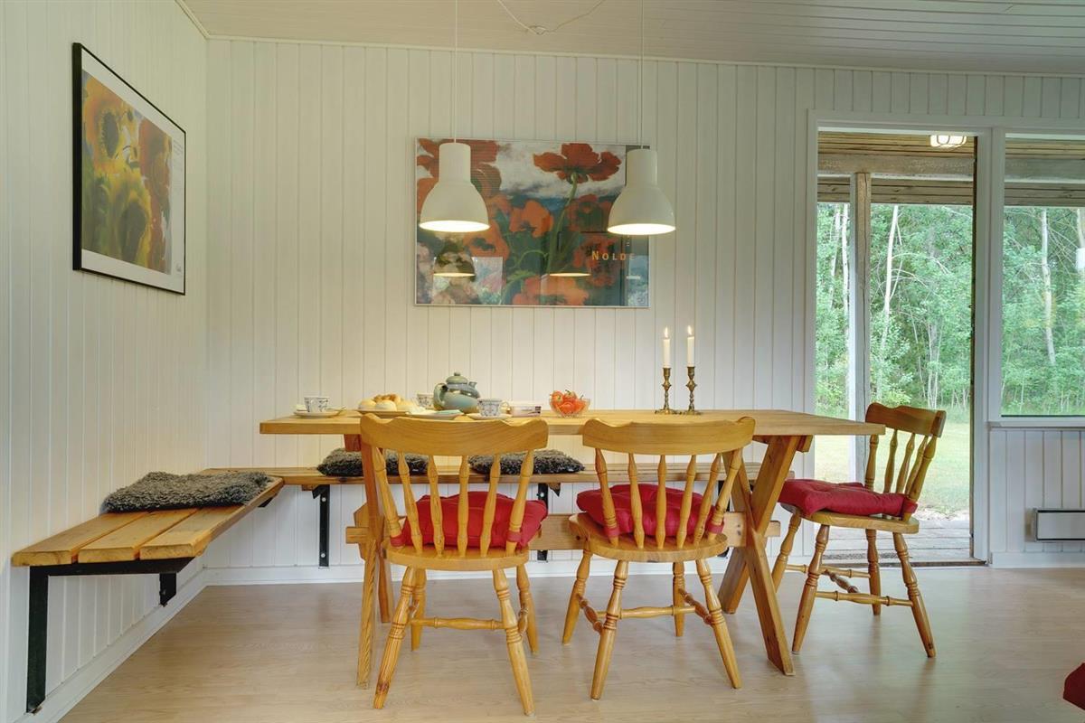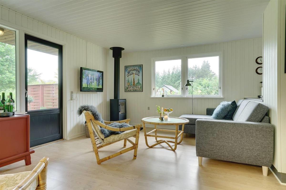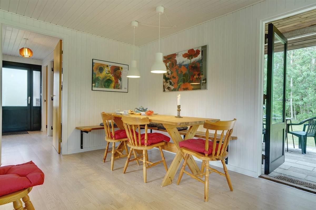 Einfach eingerichtetes Ferienhaus, aber gut gepflegt und teilweise renoviert. Schönes Grundstück mit überdachter Terrasse, ruhig und ungestört gelegen. 2 gute Schlafzimmer mit Doppelbett und 1 Schlafraum mit Etagenbett - das Haus kann jedoch nur für bis zu 4 Personen gemietet werden. Schönes Wohnzimmer mit TV und Holzofen. Authentische, charmante Küche mit Geschirrspüler, separatem Gefrierfach. Badezimmer teilweise renoviert 2017. Ein Haus mit gutem Preis-Leistungs-Verhältnis und passend für die kleinere Familie. Das Haus wird als Nichtraucherhaus und ohne Haustiere vermietet.