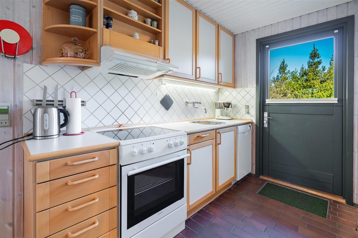 Der helle Wohnraum ist das Herzstück des Ferienhauses im Peder Larsensvej 67 und besticht durch seine skandinavische Einrichtung, die Gemütlichkeit und Funktionalität verbindet. An kühleren Tagen spendet der Kamin wohlige Wärme und sorgt für entspannte Abende mit der Familie. Darüber hinaus sorgt eine energiesparende Wärmepumpe das ganze Jahr über für ein angenehmes Raumklima. Die Küche mit Spülmaschine macht das Aufräumen nach dem Essen zum Kinderspiel und bietet viel Platz für gesellige Kochabende.