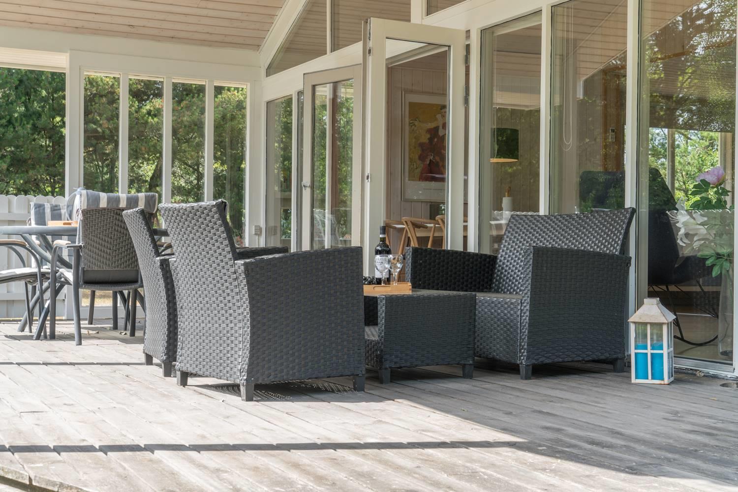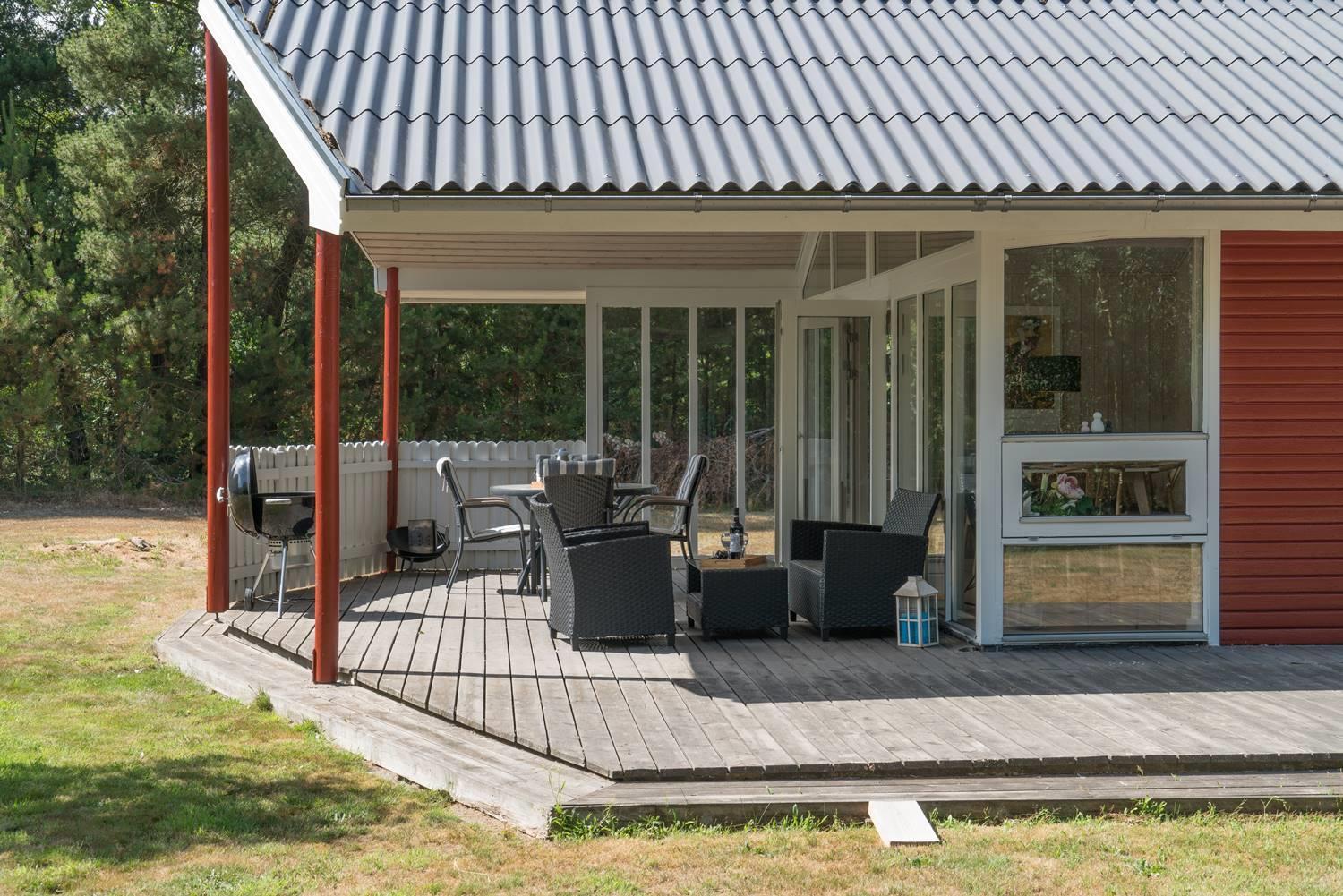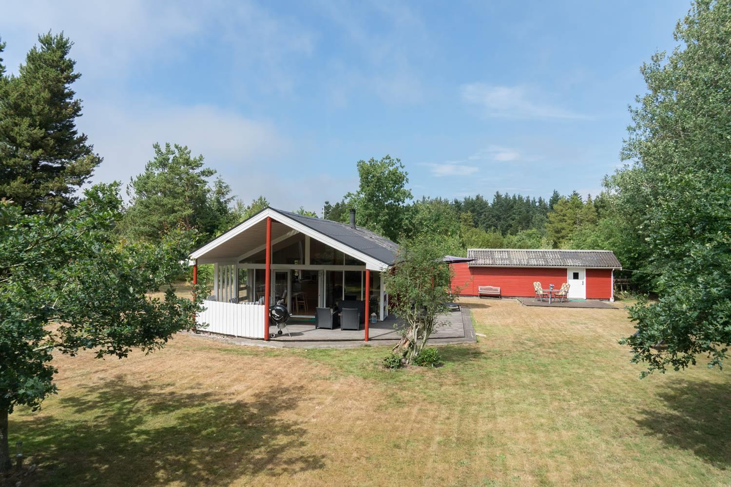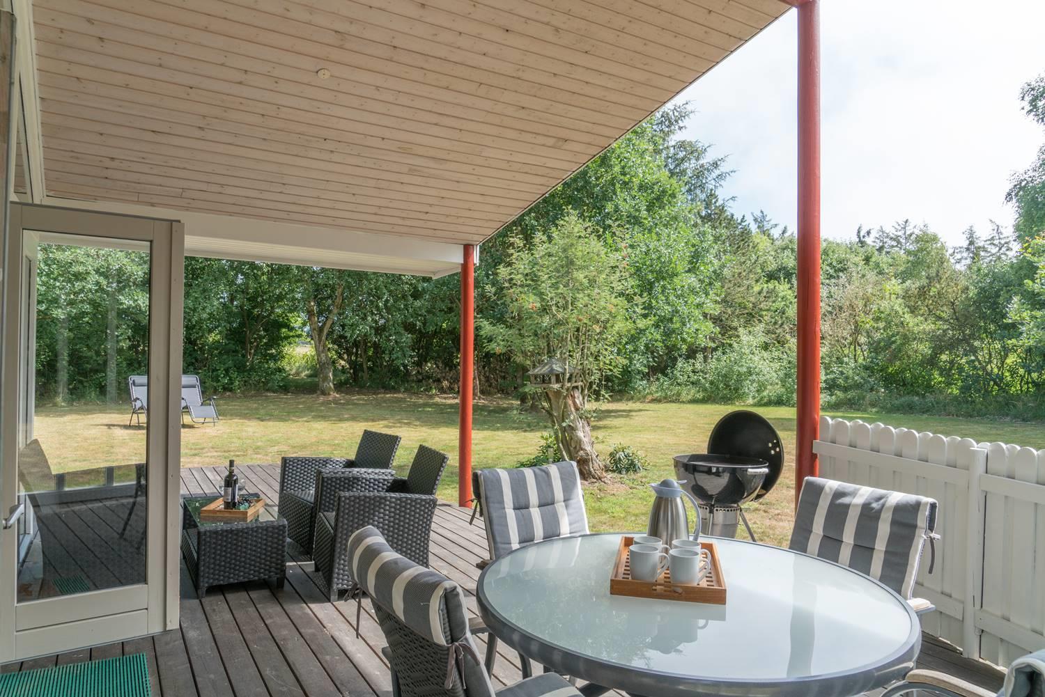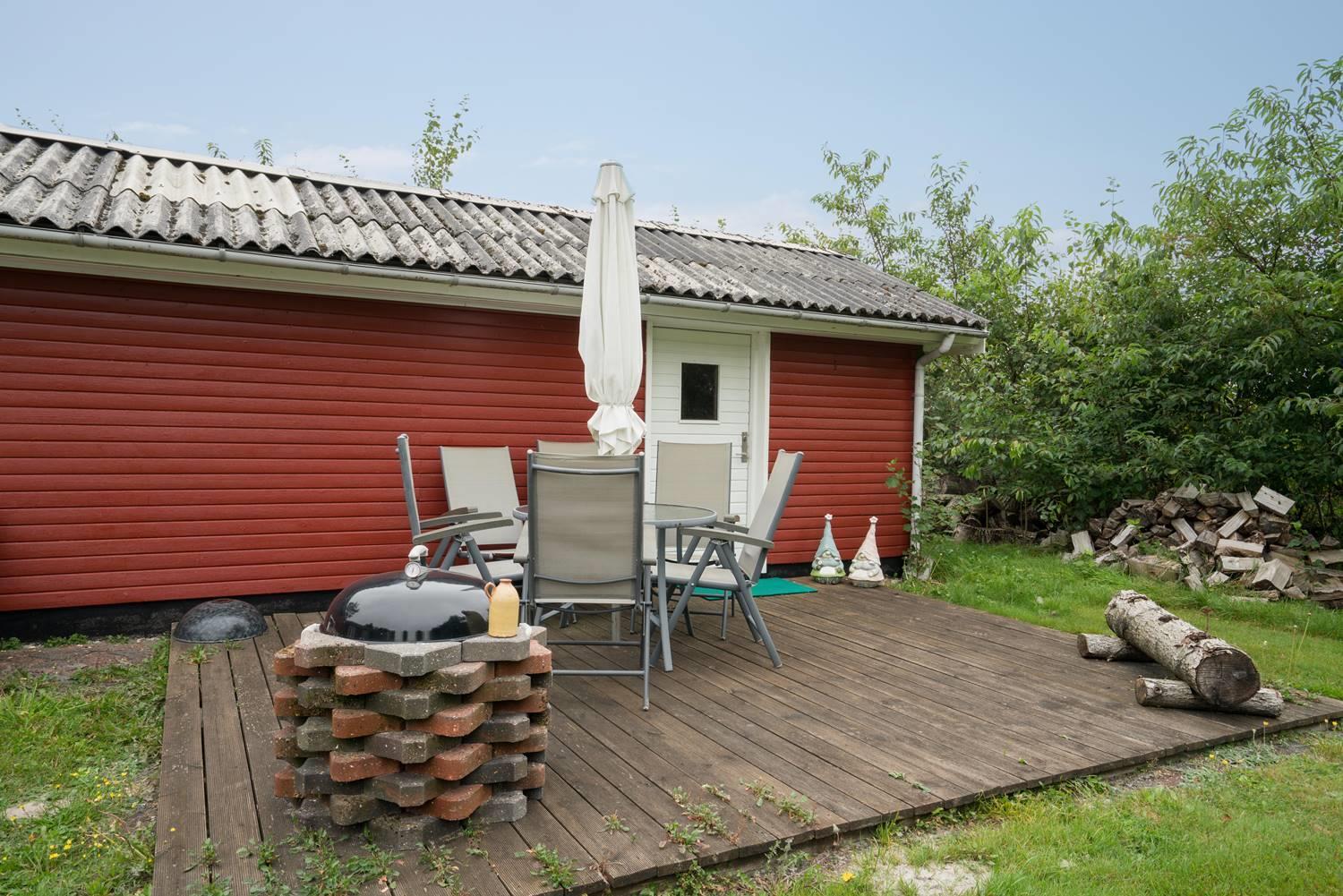 Der großzügige Außenbereich des Ferienhauses im Engvejen 27 bietet euch viel Platz zum Entspannen und Erholen inmitten der dänischen Natur. Das eingezäunte Grundstück ist ideal für Familien und Hundebesitzer, die ihren vierbeinigen Begleiter sicher und unbeschwert draußen spielen lassen möchten.