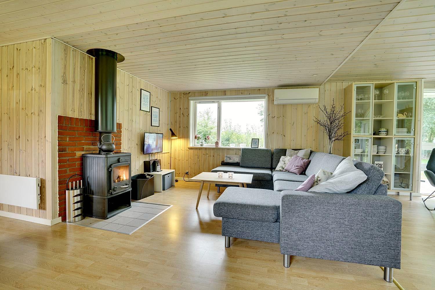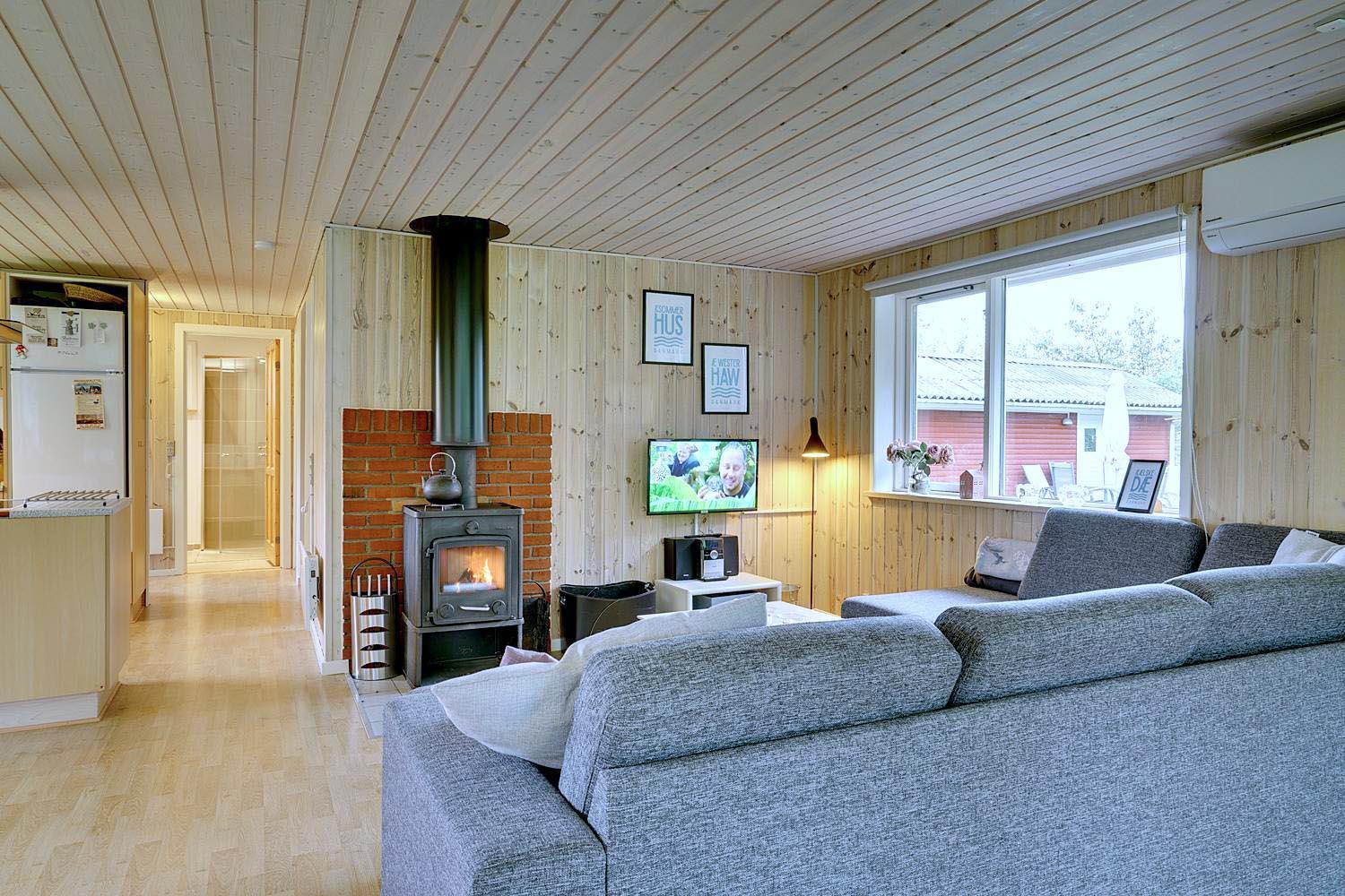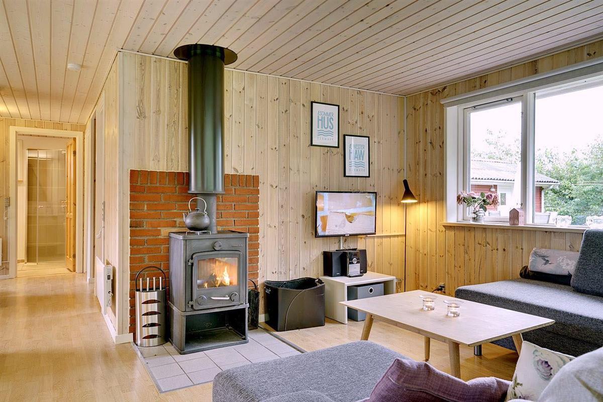 Gemütlicher Innenbereich mit Kamin und Google Chromecast im Engvejen 27
