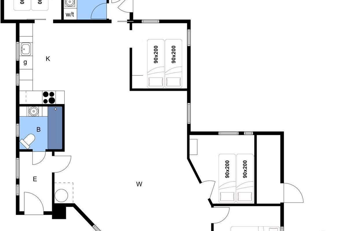 Bettengrösse: 4 Doppelbetten mit je 2 Matratzen á 90 x 200 cm.
