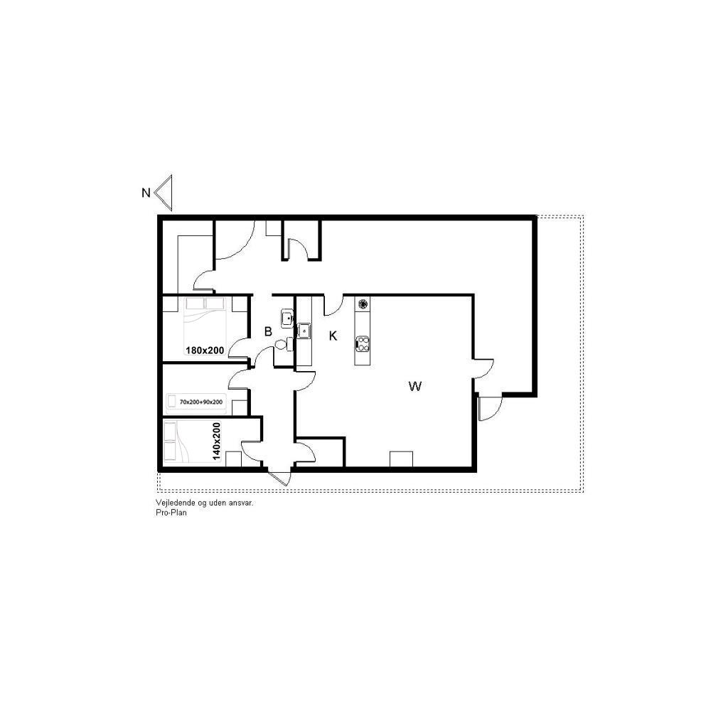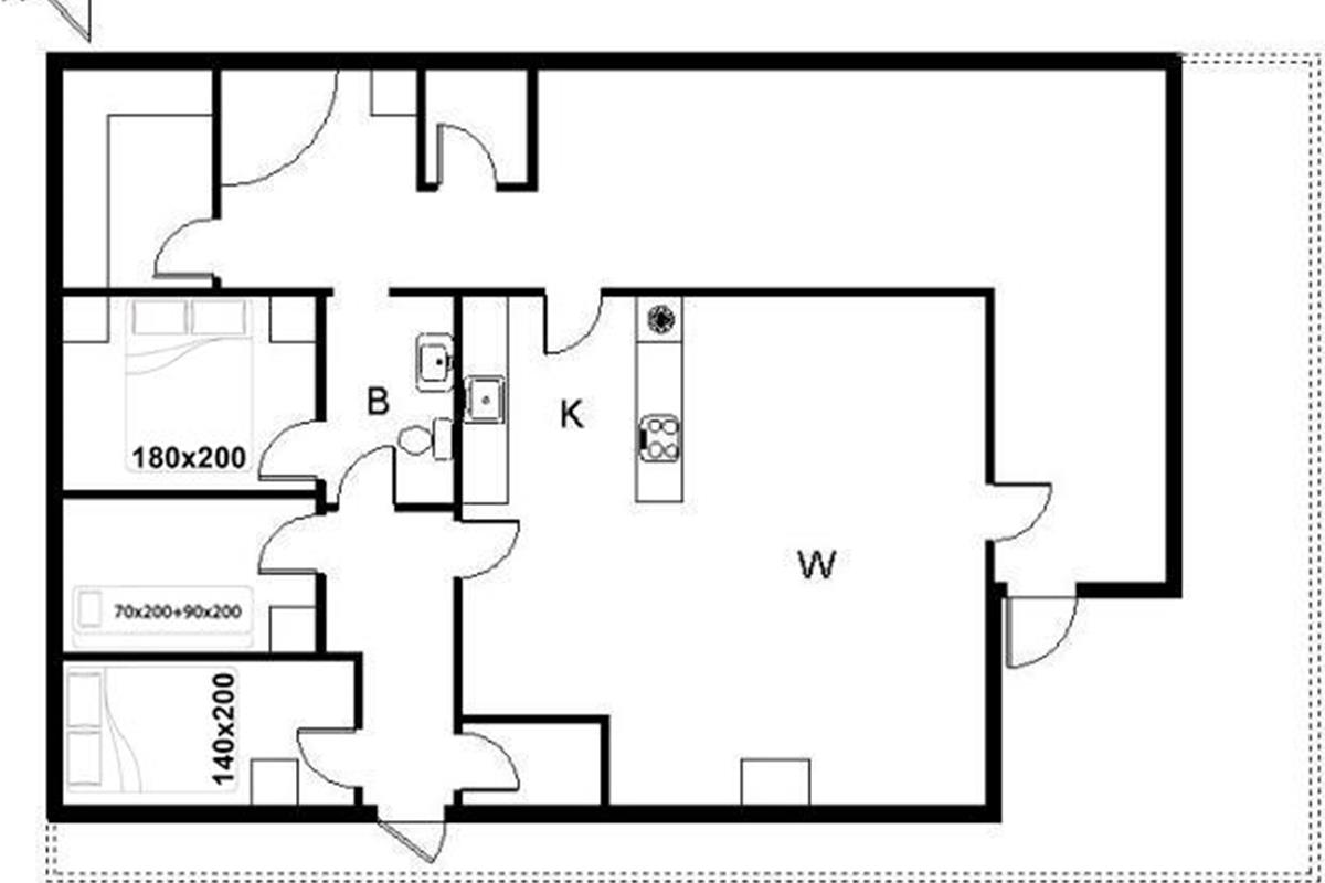 Bettengrösse: 1 Doppelbett 180 x 200 cm + 1 Doppelbett 140 x 200 cm + 1 Etagenbett das obere Bett ist 70 x 200 cm und das untere Bett ist 90 x 200 cm.
