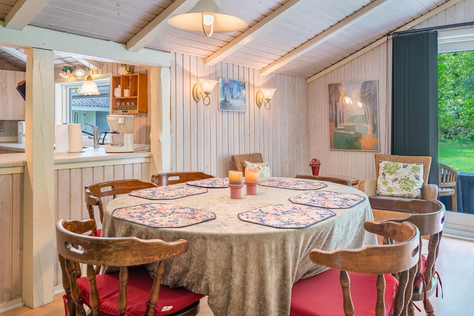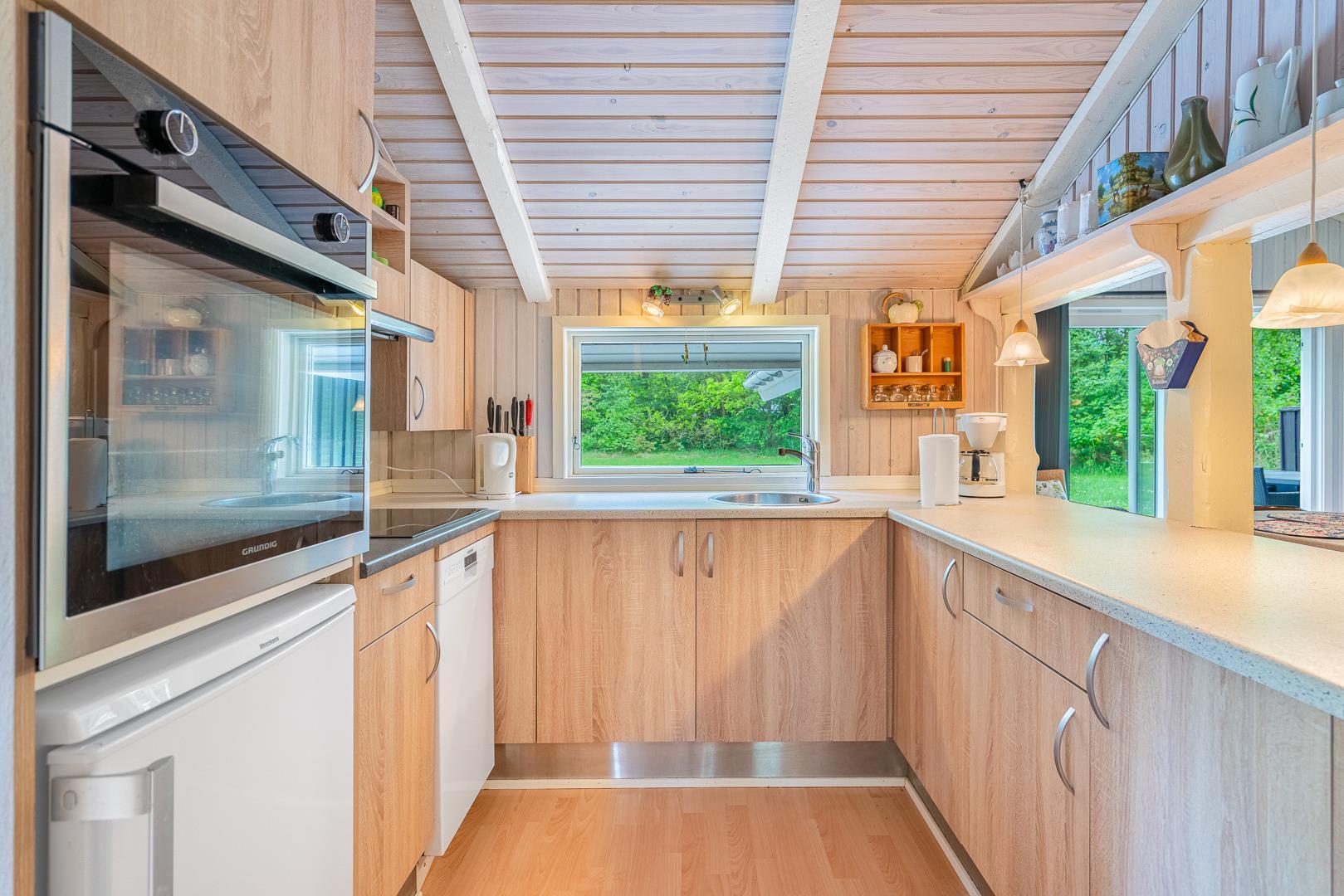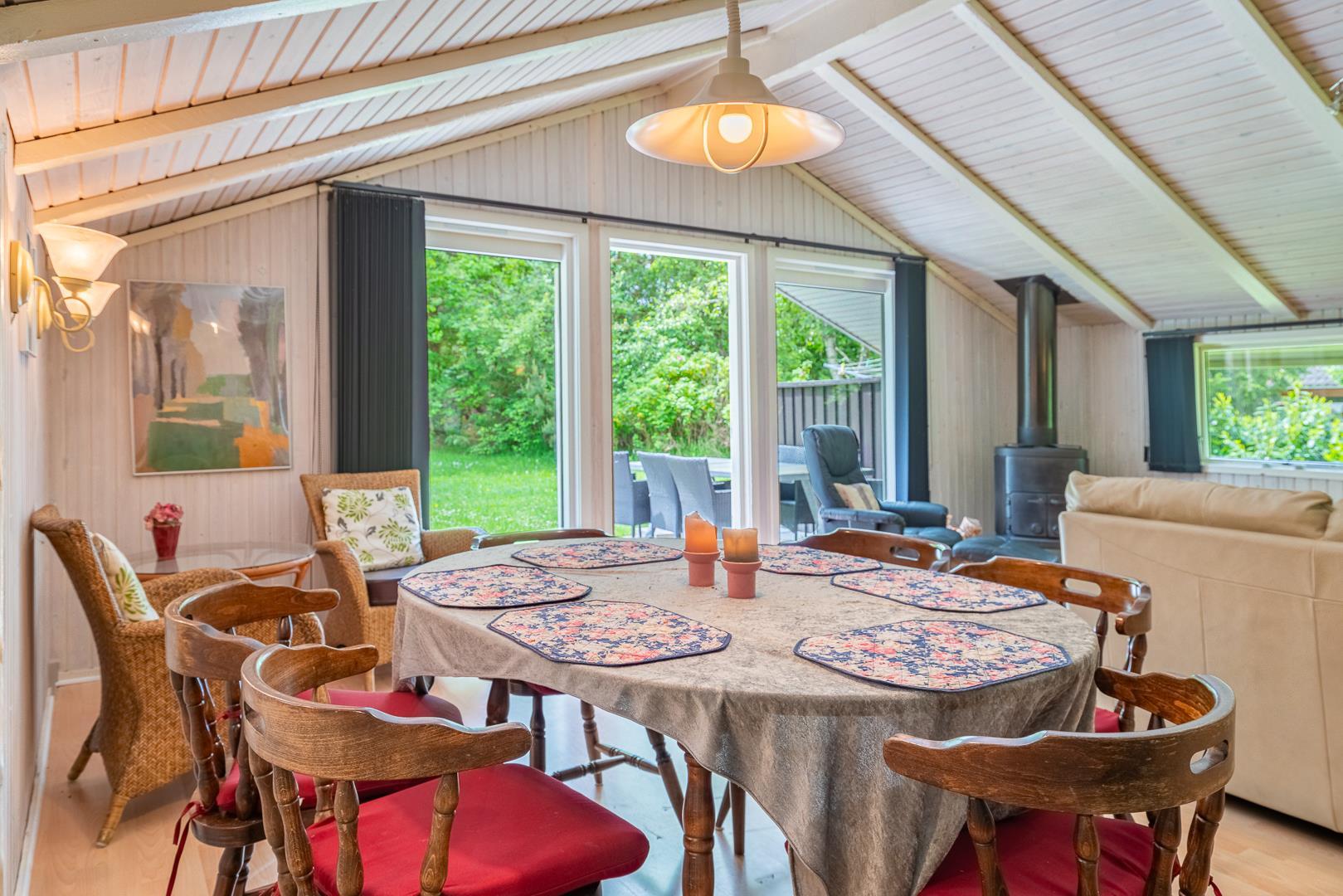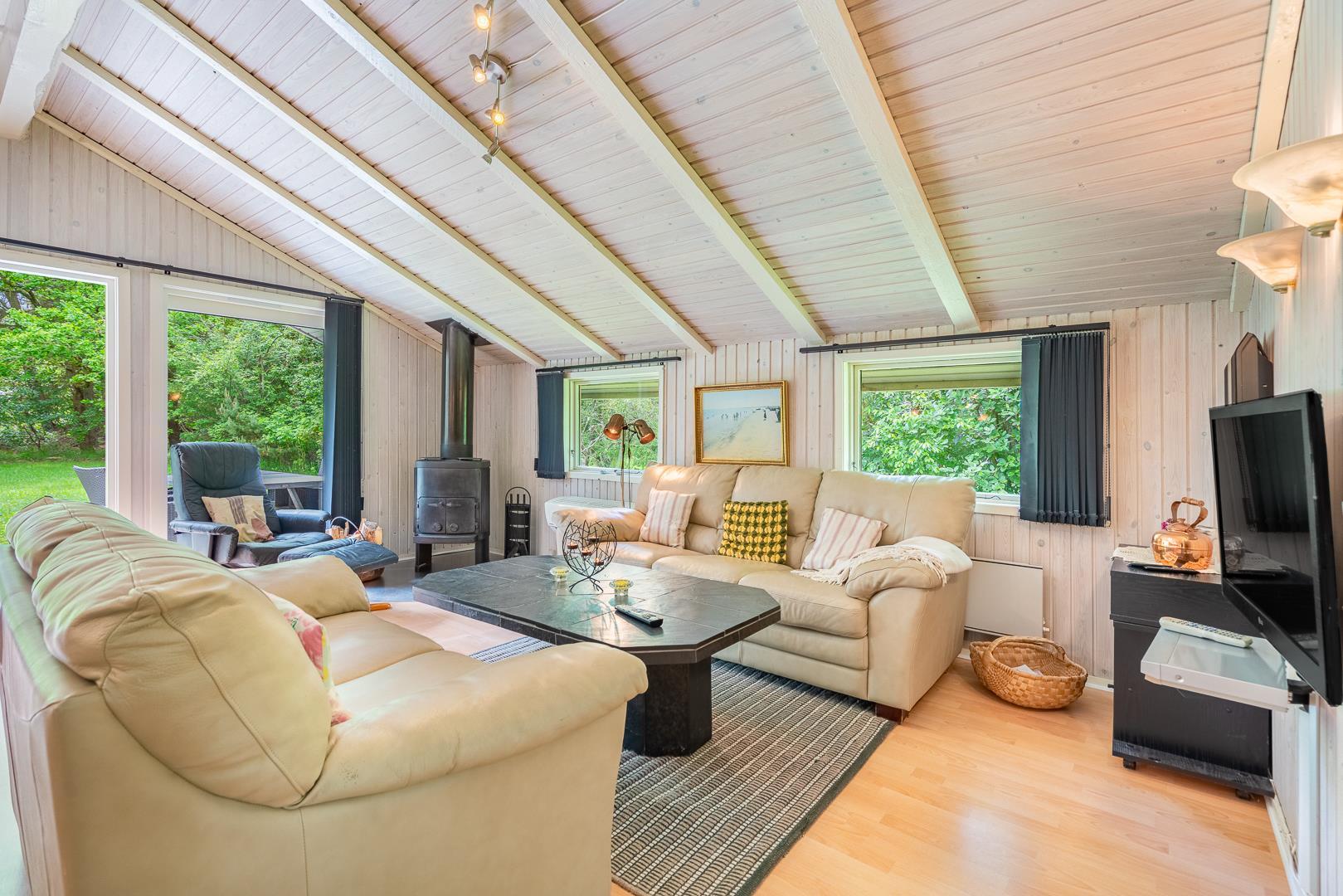 Auf einem tollen geschlossenen und ungestörten Grundstück am Ende einer Sackgasse liegt dieses gemütliche Ferienhaus mit dazugehörigem Carport. Das Haus ist eingerichtet mit: Eingang, funktionaler Winkelküche, Doppelstockbettzimmer mit 2 Schlafplätzen, 2 gute Schlafzimmer mit Doppelbetten. Die Stube ist gut möbliert mit Ledersofa, sowie einer Korbecke für Gemütlichkeit und Spiel. Außerdem gibt es eine Essecke. Von der Stube gibt es Zugang zur teilweise überdachten Holzterrasse, die natürlich mit Gartenmöbeln und Sonnenliegen ausgestattet ist.