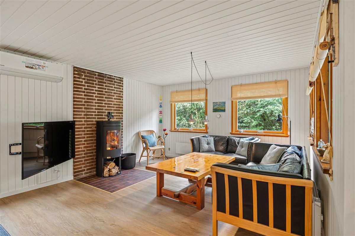 Der Innenbereich dieses Ferienhauses strahlt Gemütlichkeit aus. Im schönen Wohnbereich könnt ihr euch dank des Fernsehers und des Kaminofens entspannen. Macht es euch auf dem Sofa mit einem Glas Wein gemütlich, lest ein Buch oder spielt Karten am Esstisch. Eine energiesparende Wärmepumpe sorgt für ein ideales Raumklima.