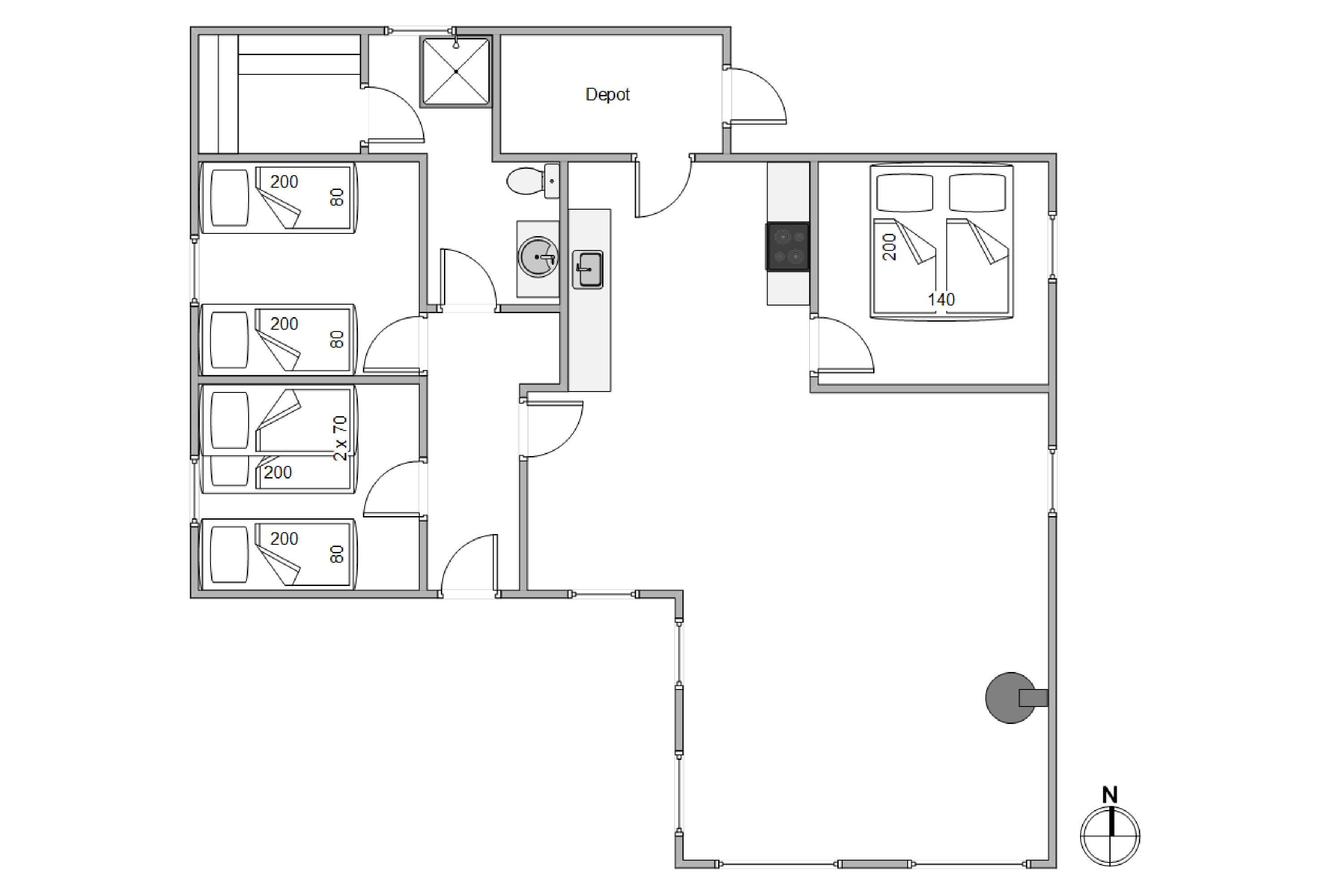 Willkommen in eurem nächsten Urlaubsdomizil an der dänischen Westküste. Das einladende Ferienhaus unter der Adresse Hans Hansensvej 49 in Houstrup erstreckt sich über komfortable 79 Quadratmeter und bietet Platz für bis zu 6 Personen.