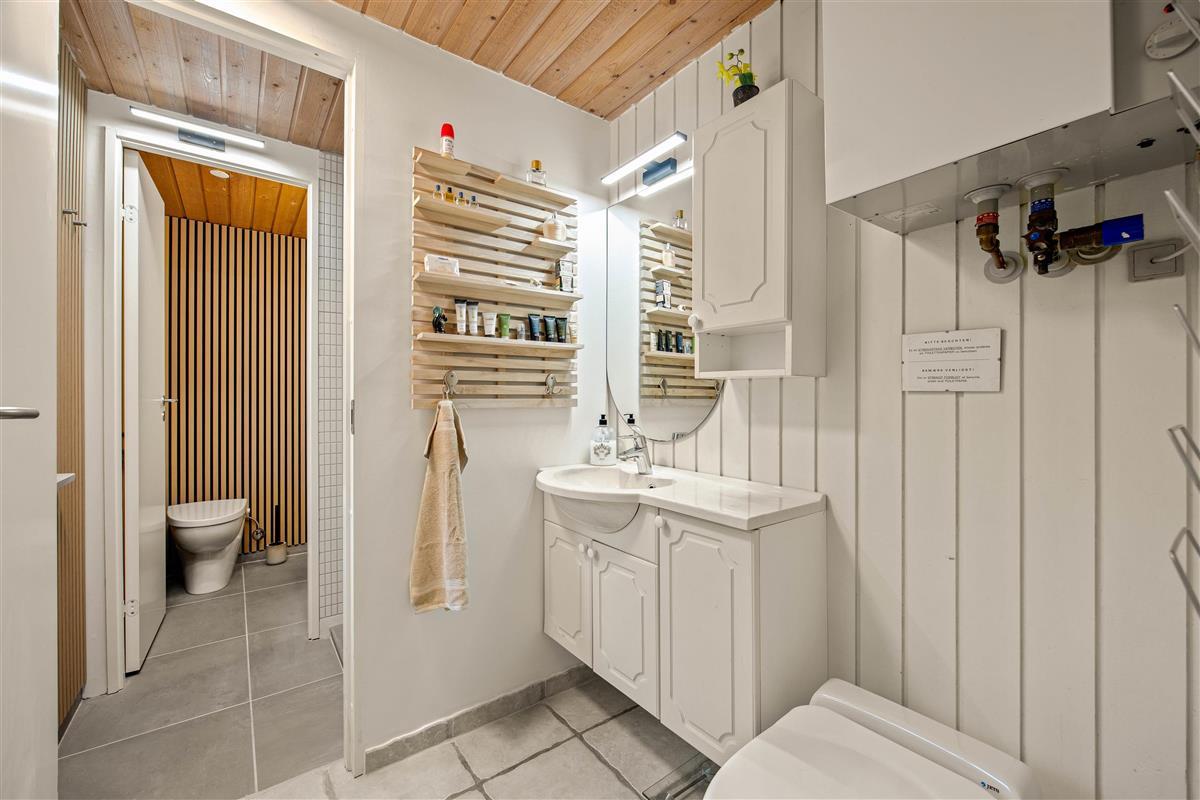 The interior spaces are painted in light colours and feature numerous windows, allowing plenty of natural light to create an open, welcoming atmosphere. The sauna is located in the separate annexe, which also includes a shower. Here you can enjoy a refreshing shower after your sauna session and completely unwind.