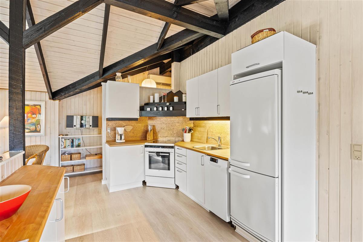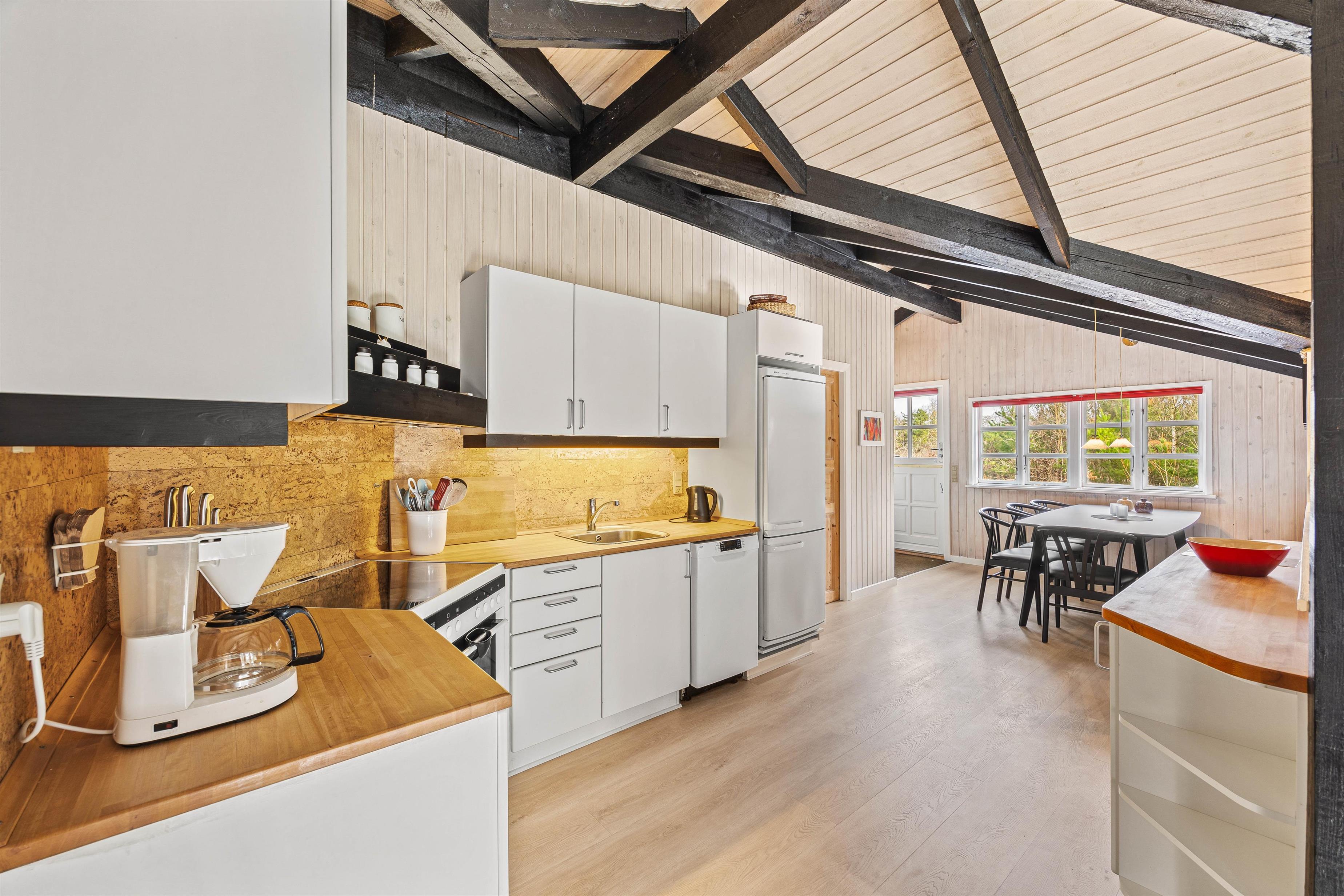 The heart of the holiday home is the living room with its wood-burning stove providing comfortable warmth. Here you can relax after a day at the beach or exploring nature. The open-plan design makes the holiday home perfect for spending time together - whether enjoying a film night or social games evenings.