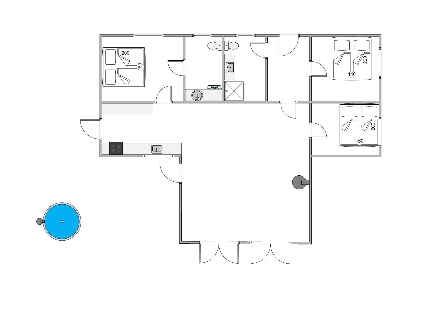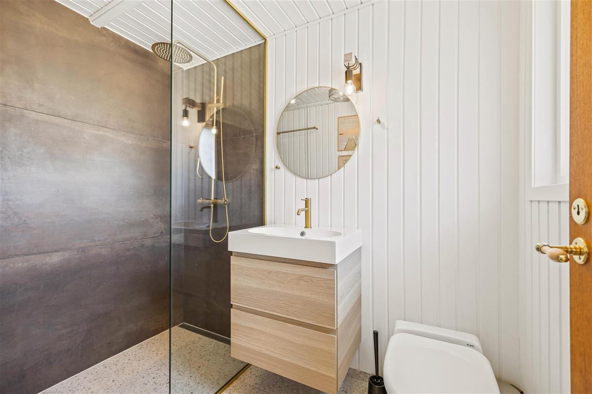 The heart of this holiday home is the welcoming living area with its open-plan kitchen. The kitchen is fully equipped with everything you need for cooking. When the weather turns cool, light up the wood-burning stove and feel the warmth spread throughout the house. Three bedrooms provide peaceful rest after an active day, ensuring you're refreshed for the next day's adventures. One bedroom has access to a small WC where you'll also find the washing machine for your holiday laundry, complete with underfloor heating to keep your feet warm. A bathroom with shower, WC and underfloor heating is located near the other bedrooms.