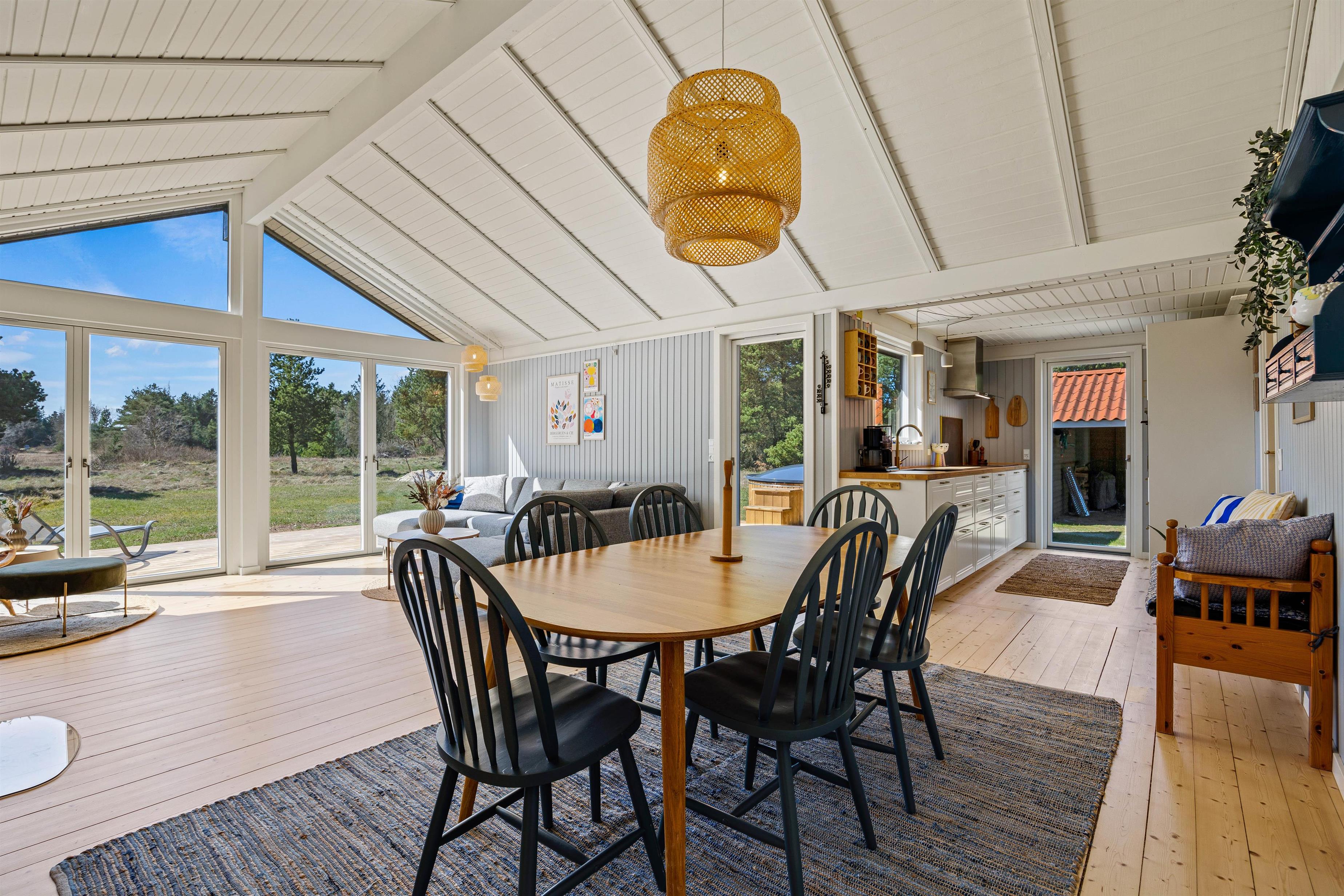 The holiday home on Sdr. Skovvej 1 is situated in the heart of the magnificent West Coast nature. Forest, heathland, dunes, beach and sea - everything is accessible by foot or bicycle. The natural surroundings are special in every season. Good shopping facilities can be found in Nørre Nebel, where you'll find a butcher, baker and several supermarkets. Fresh fish is available in Hvide Sande, perfect for evening barbecues.