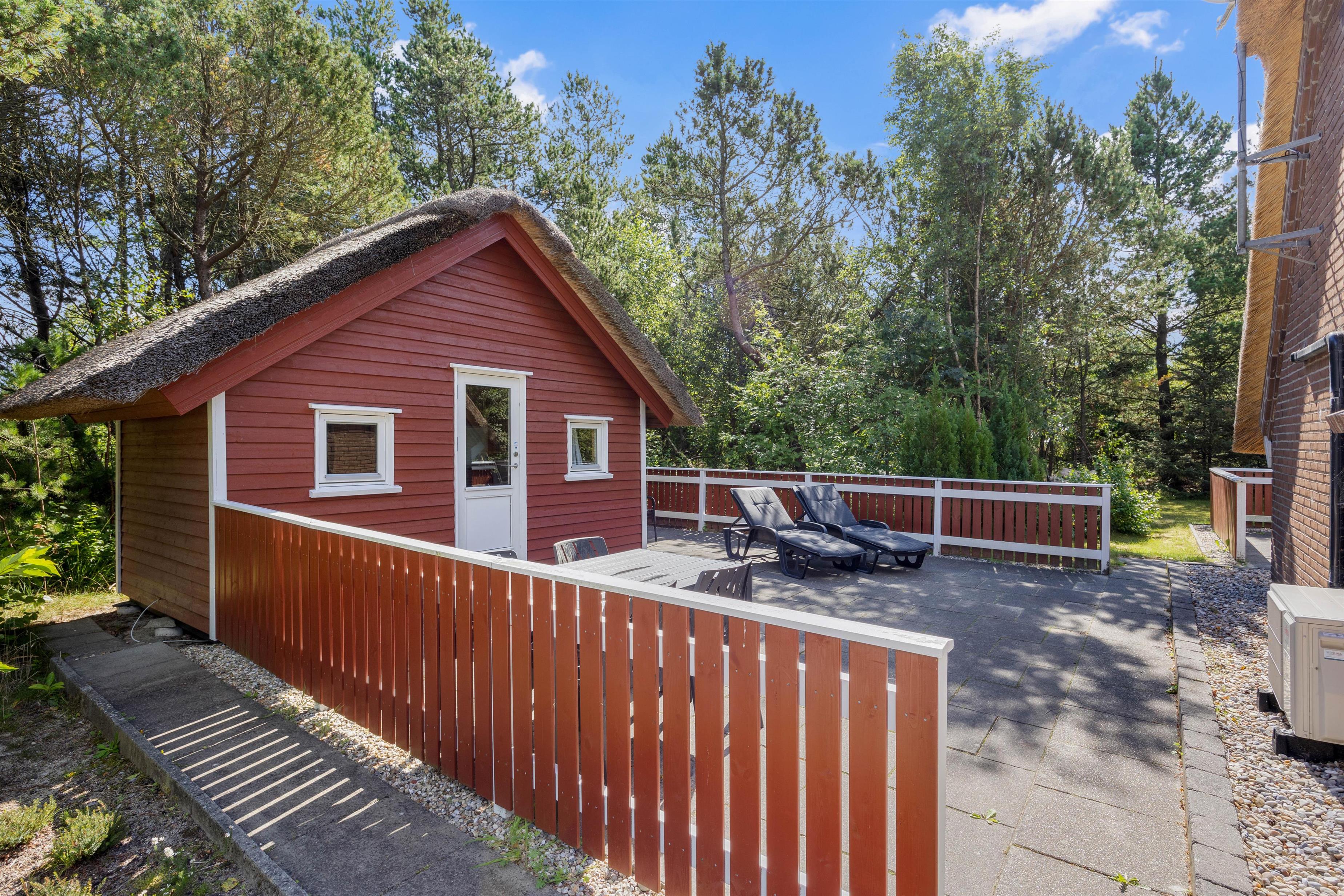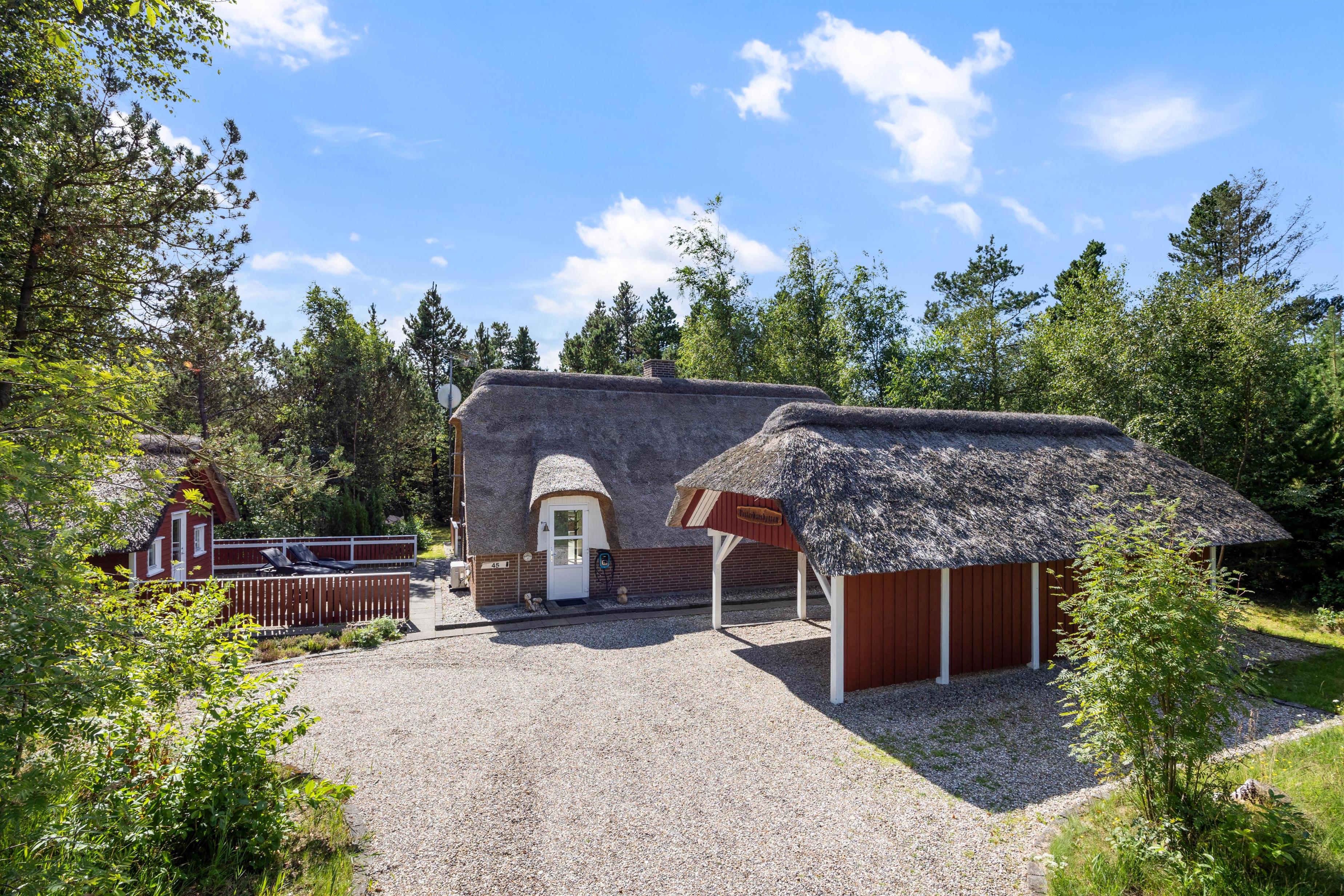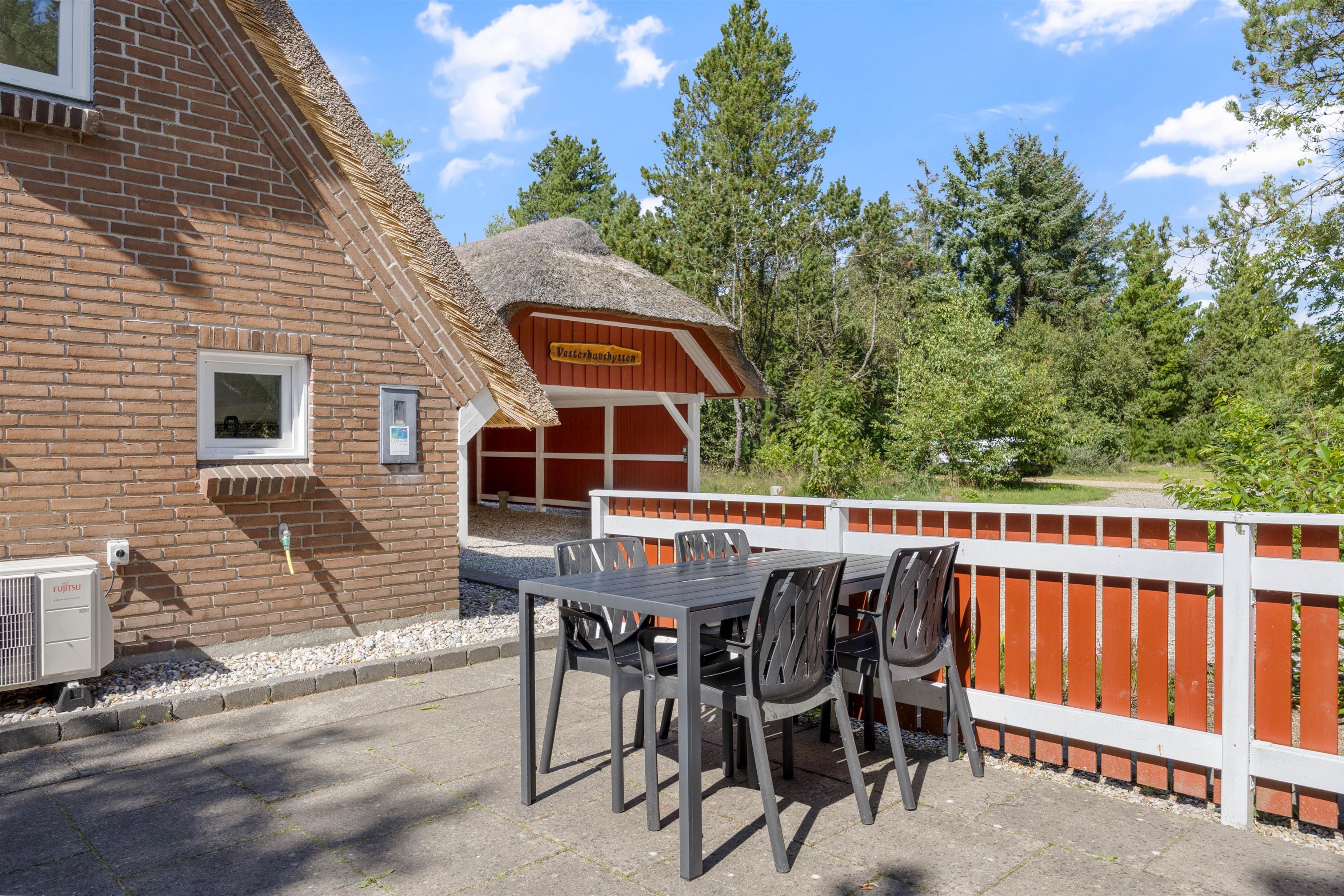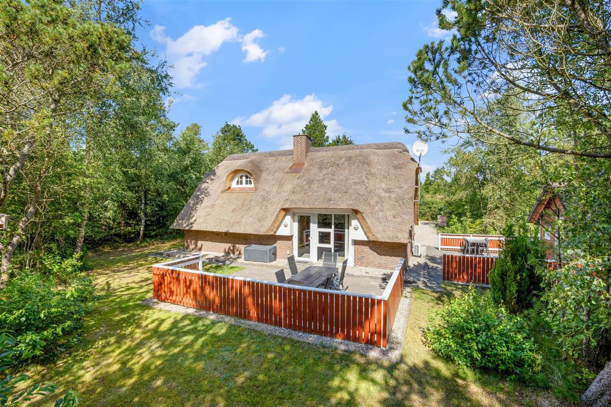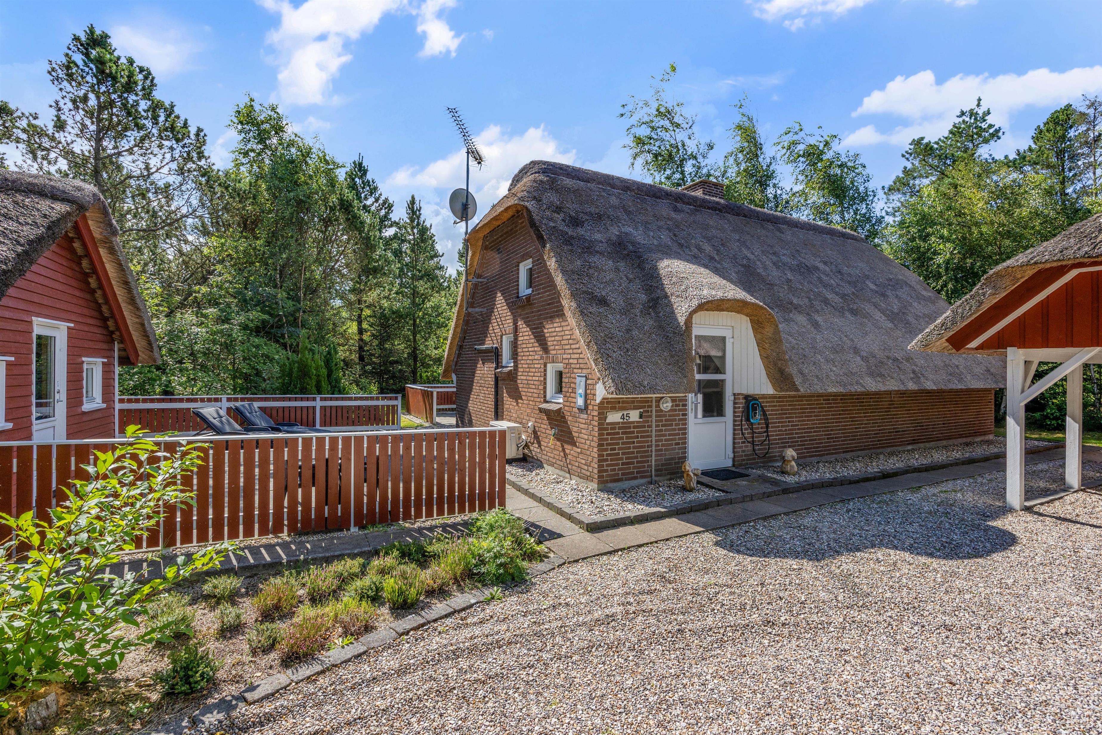 You'll find the charming Vesterhavshytten holiday home at Højsvej 45 in picturesque Houstrup. This beautiful brick holiday home offers 95 square metres of space across two floors, accommodating up to 6 people. The holiday home features a traditional thatched roof, giving it that characteristic Danish charm.