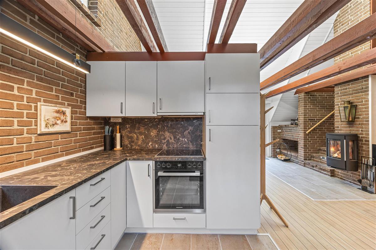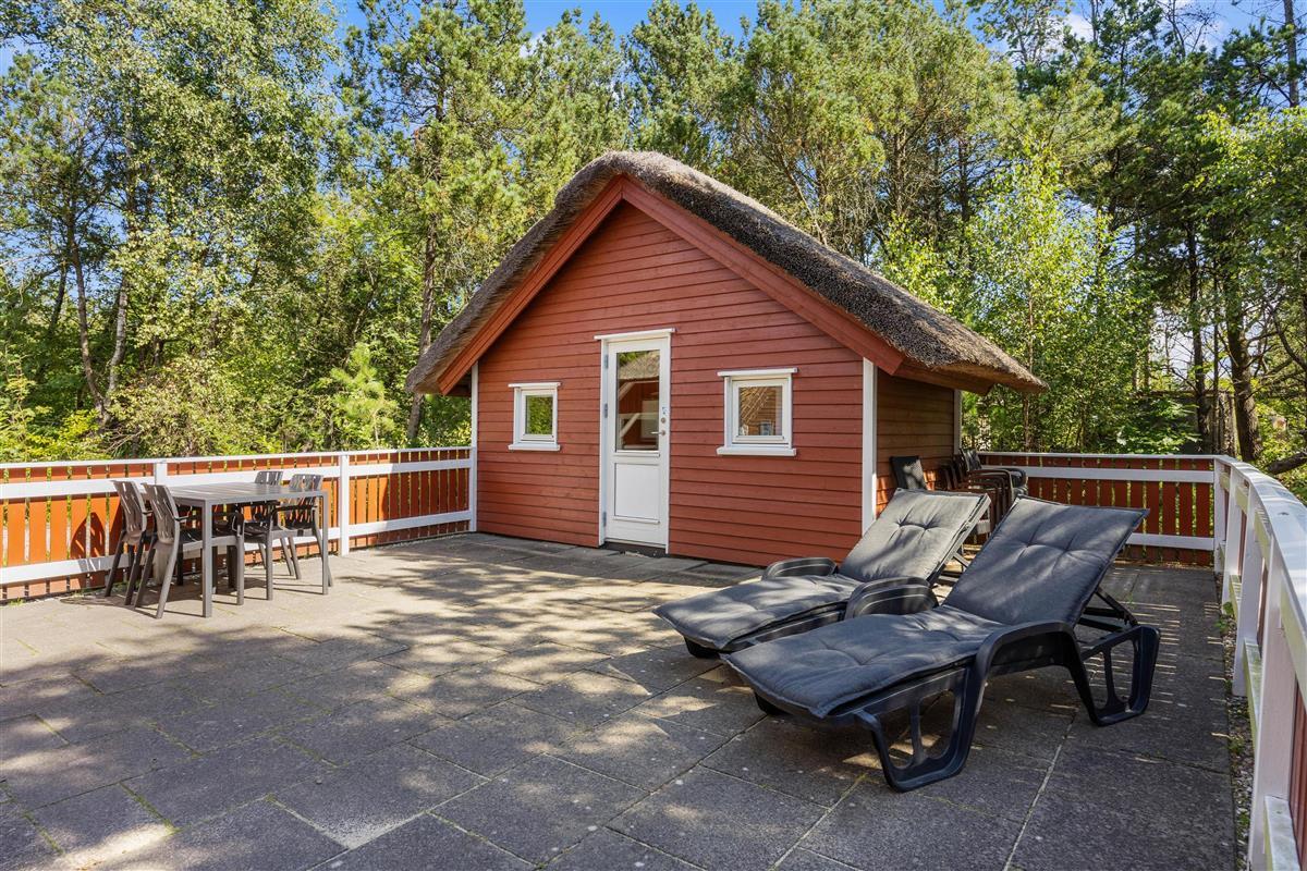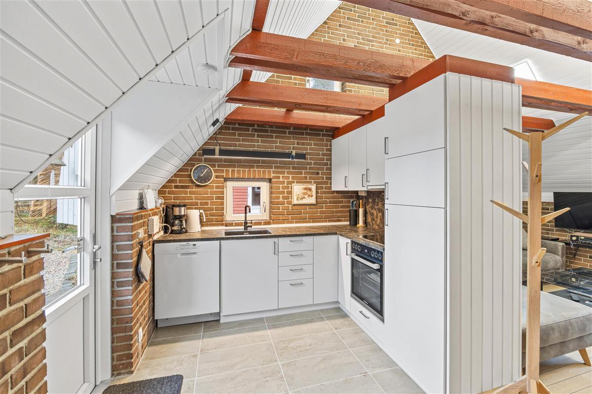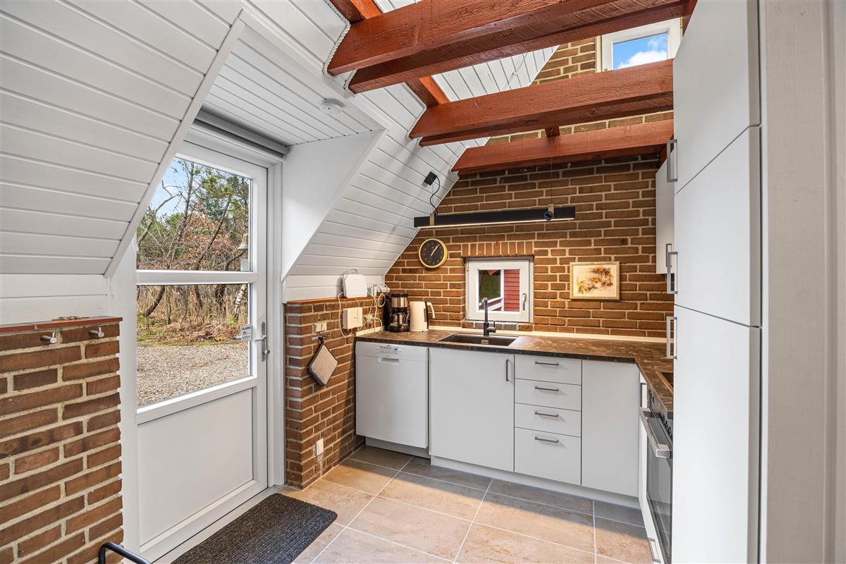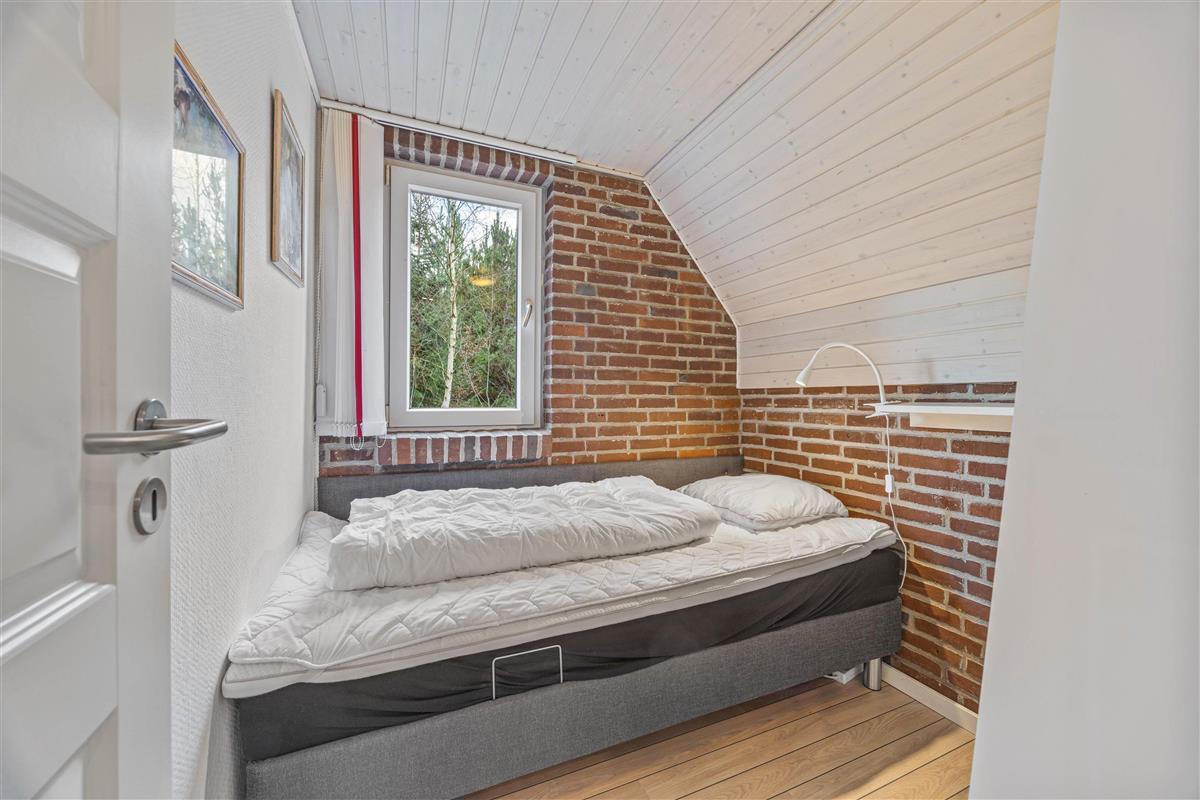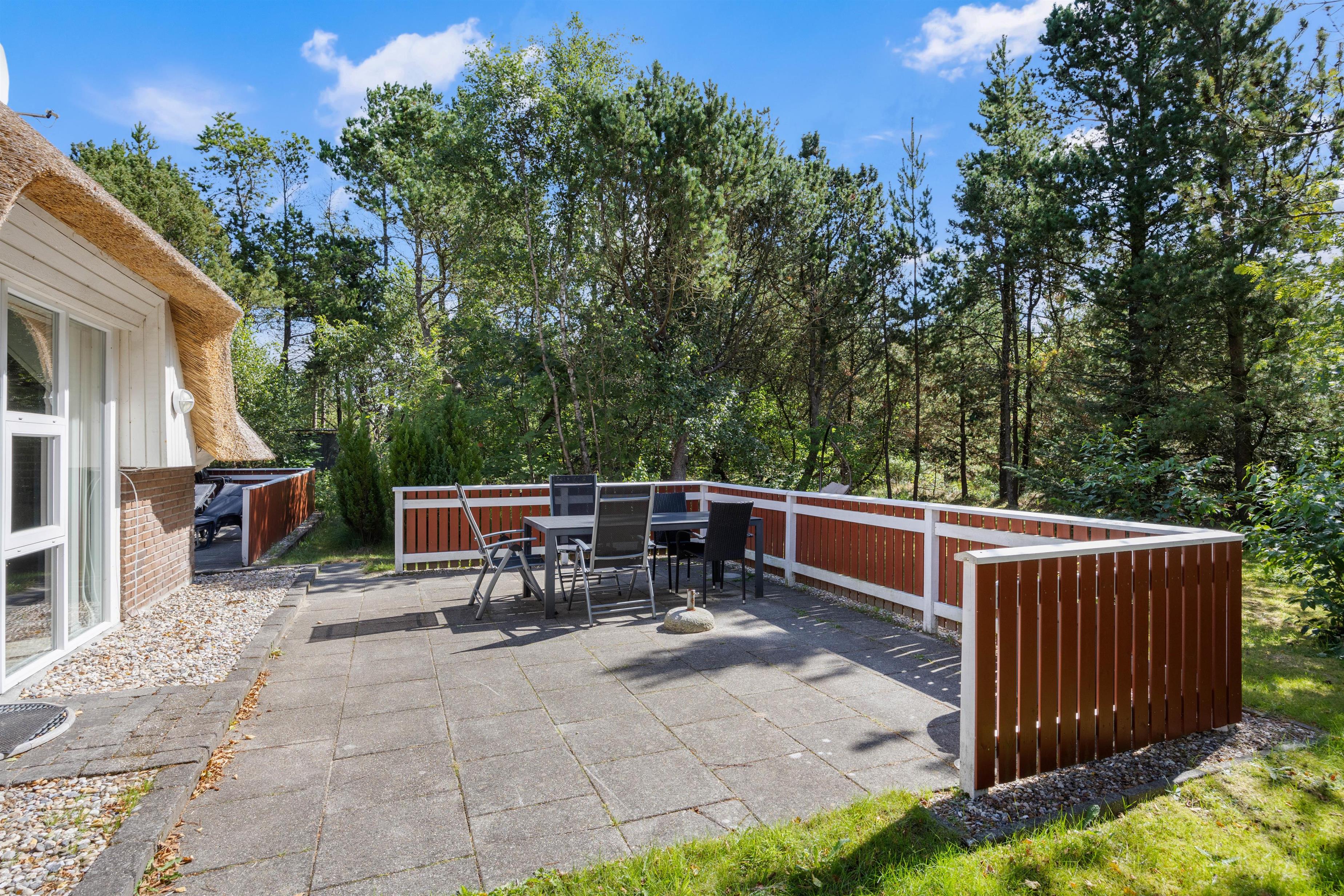 You'll find the charming Vesterhavshytten holiday home at Højsvej 45 in picturesque Houstrup. This beautiful brick holiday home offers 95 square metres of space across two floors, accommodating up to 6 people. The holiday home features a traditional thatched roof, giving it that characteristic Danish charm.