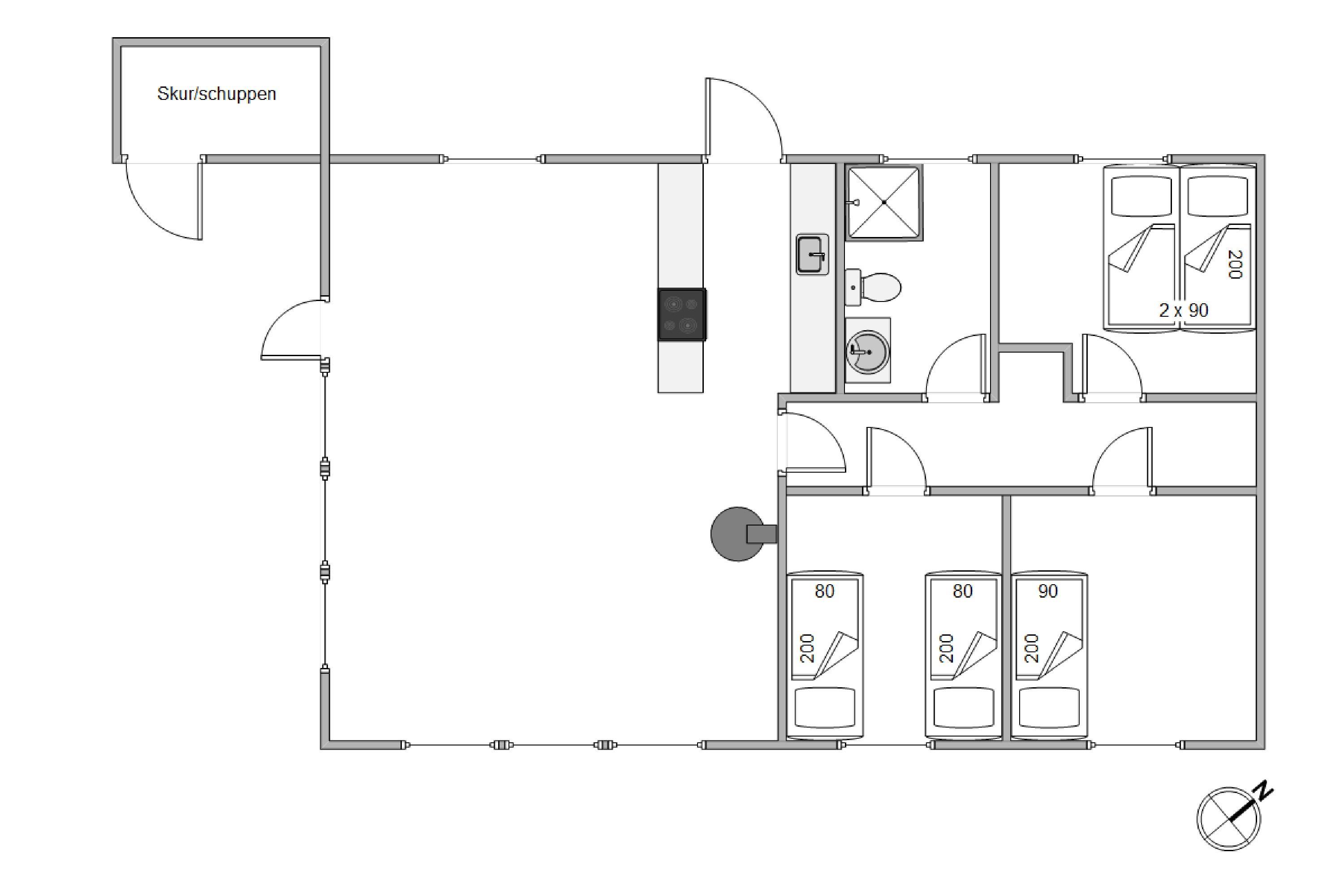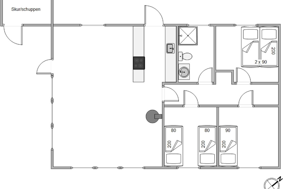 With a living area of 73 square metres, the holiday home offers plenty of space to relax after a long day at the beach or exploring the surroundings. The wood-burning stove provides both warmth and a cosy atmosphere. The modern kitchen makes cooking a pleasure and features a dishwasher, giving you more time to focus on what matters. Thanks to Google Chromecast, you're not limited to local TV programming and can choose from a vast library of videos, music and games. The holiday home has 3 bedrooms in total, one with a double bed, while the other two bedrooms feature single beds.