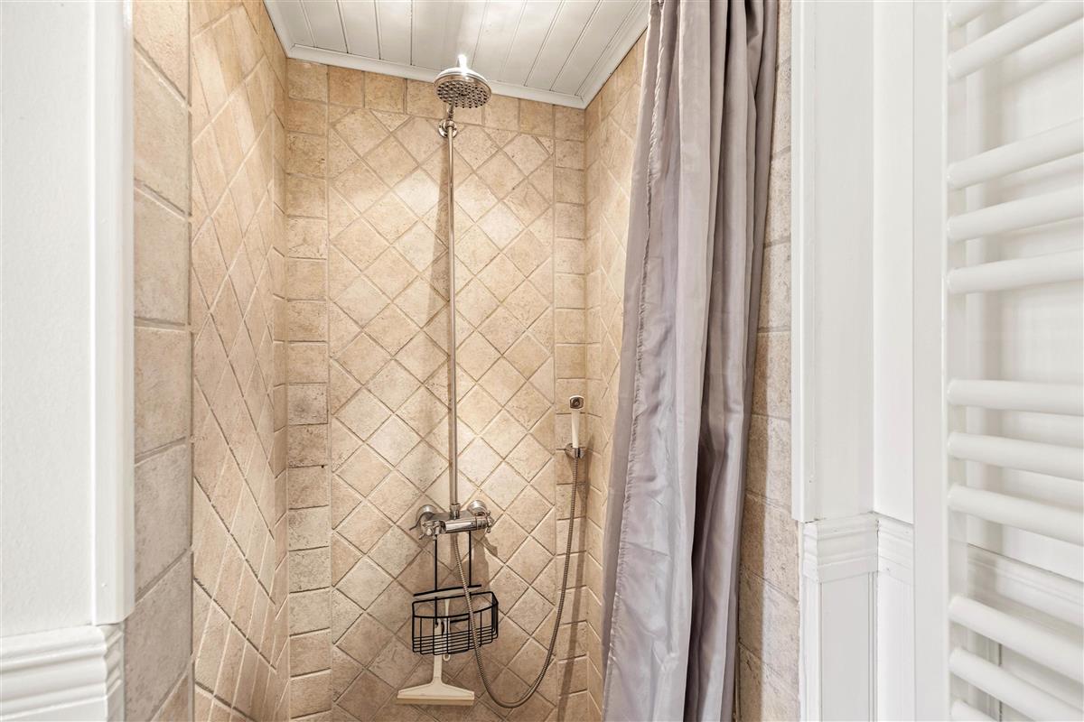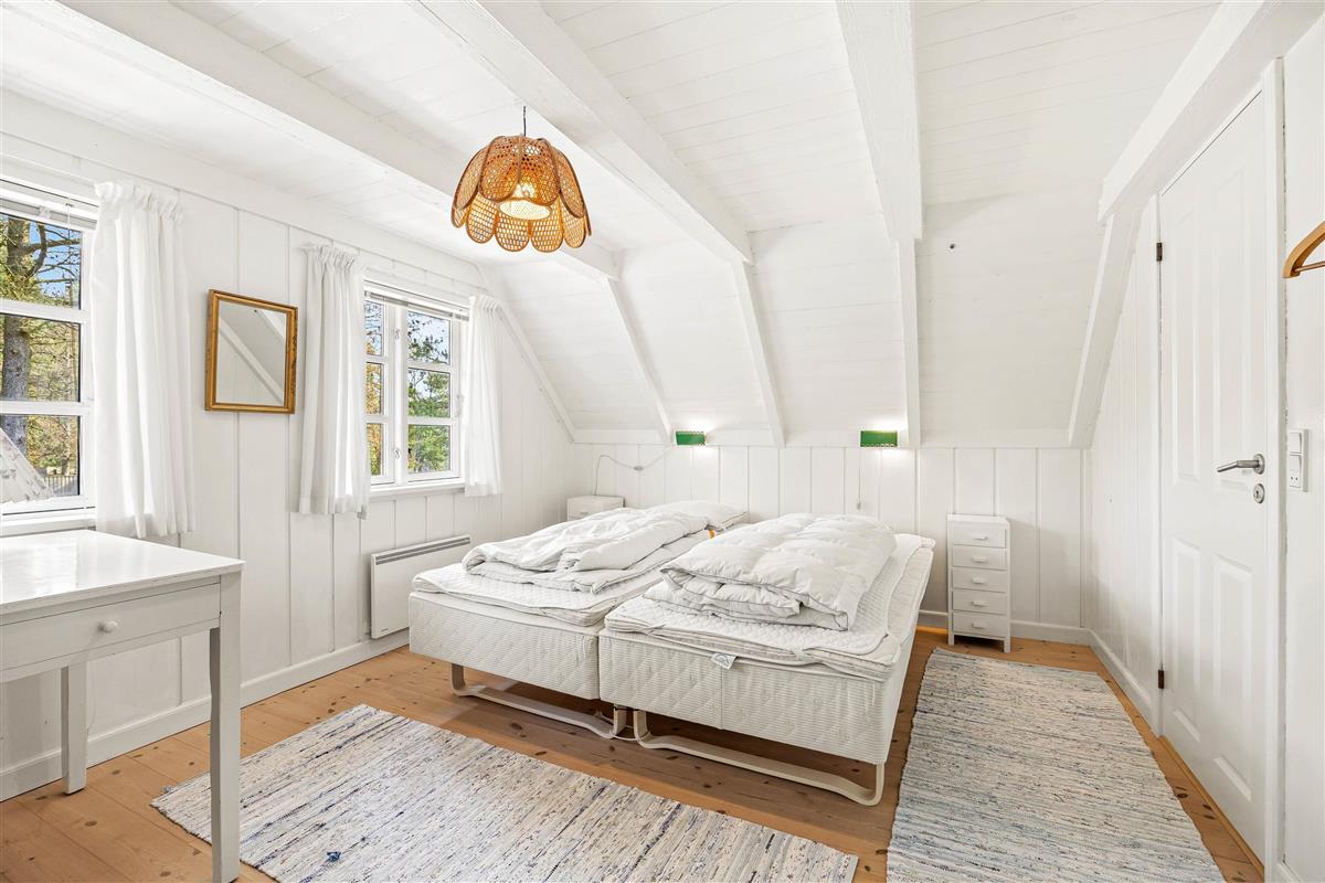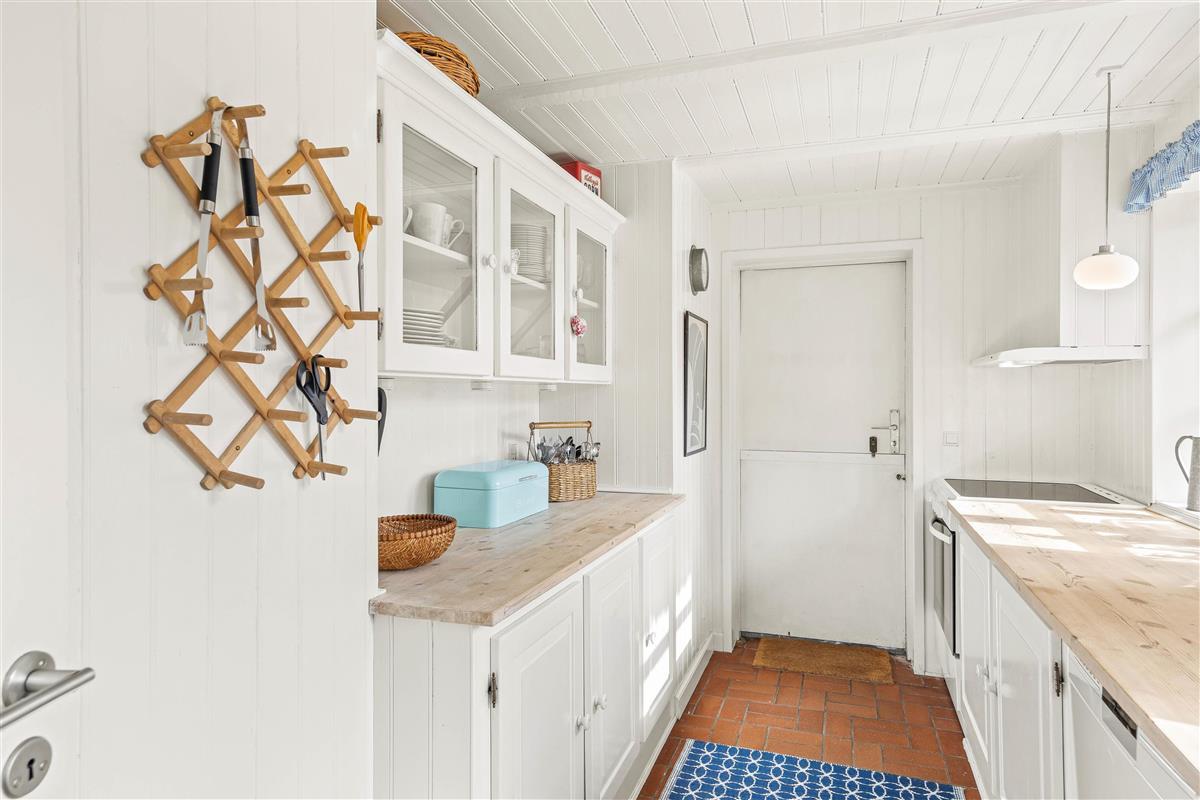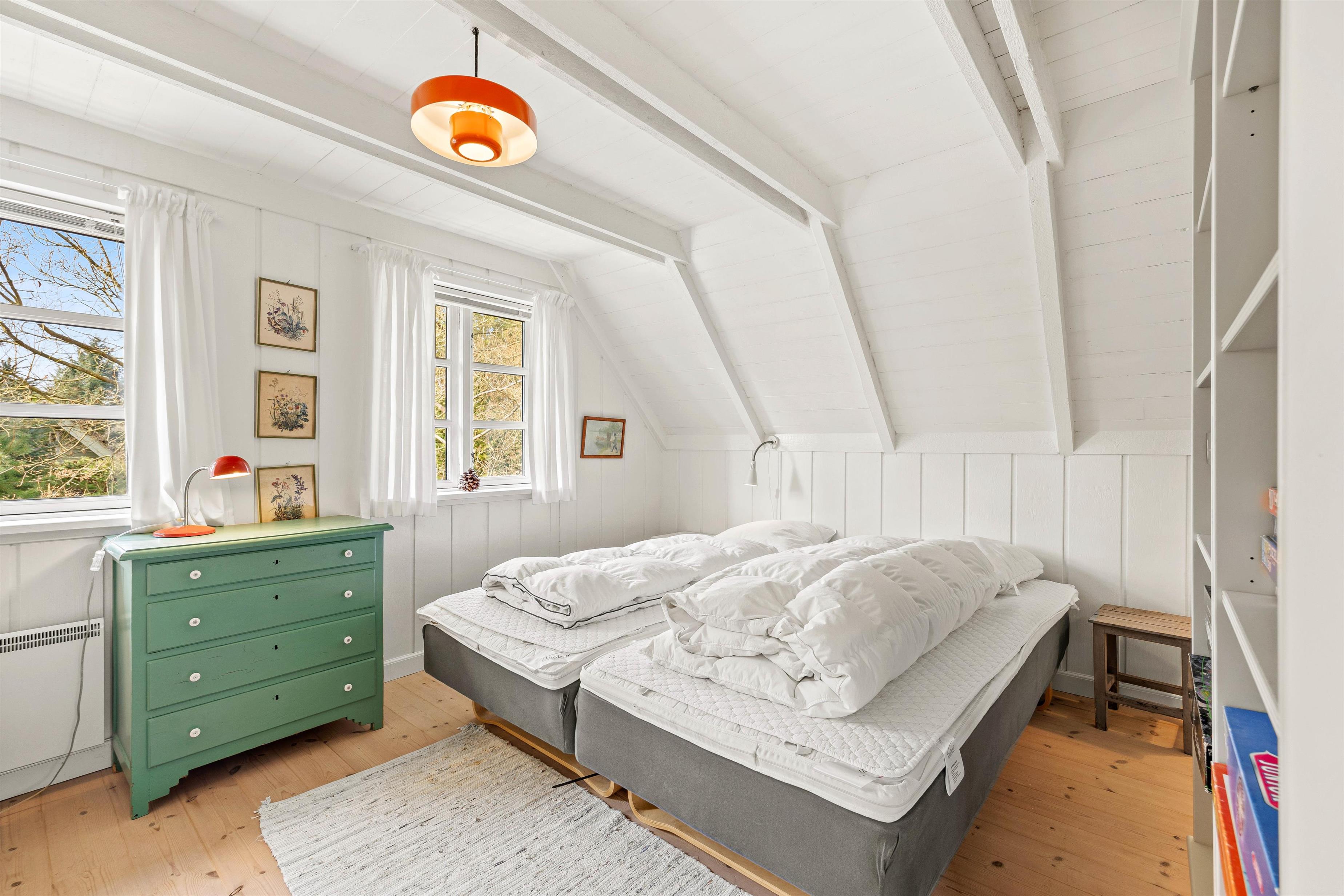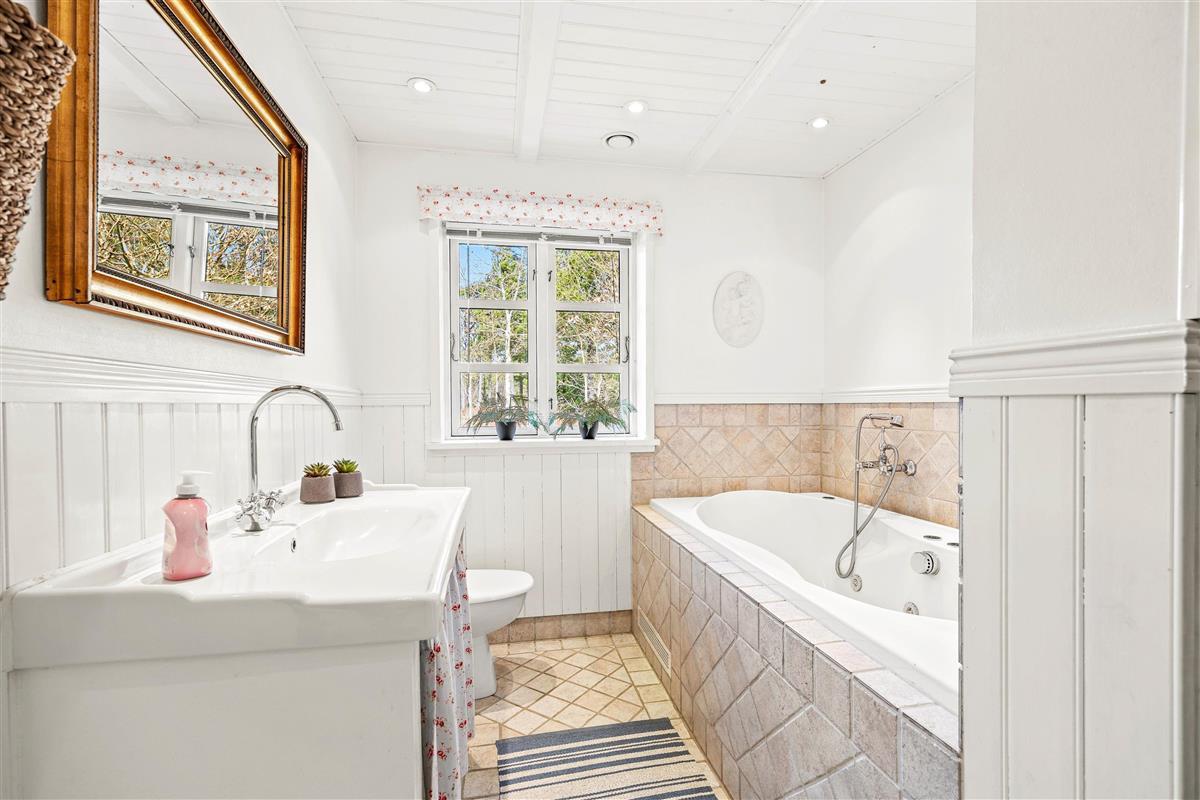 The interior of this Houstrup holiday home immediately exudes a cosy yet modern atmosphere that makes you feel right at home. The open-plan living area is the heart of the holiday home, where the wood-burning stove provides comfortable warmth on cool evenings – the perfect place to unwind after an eventful day. The modern kitchen with dishwasher meets all your needs, making meal preparation and cleanup equally effortless. The dining area is where you can eat together, share laughs and create wonderful memories.