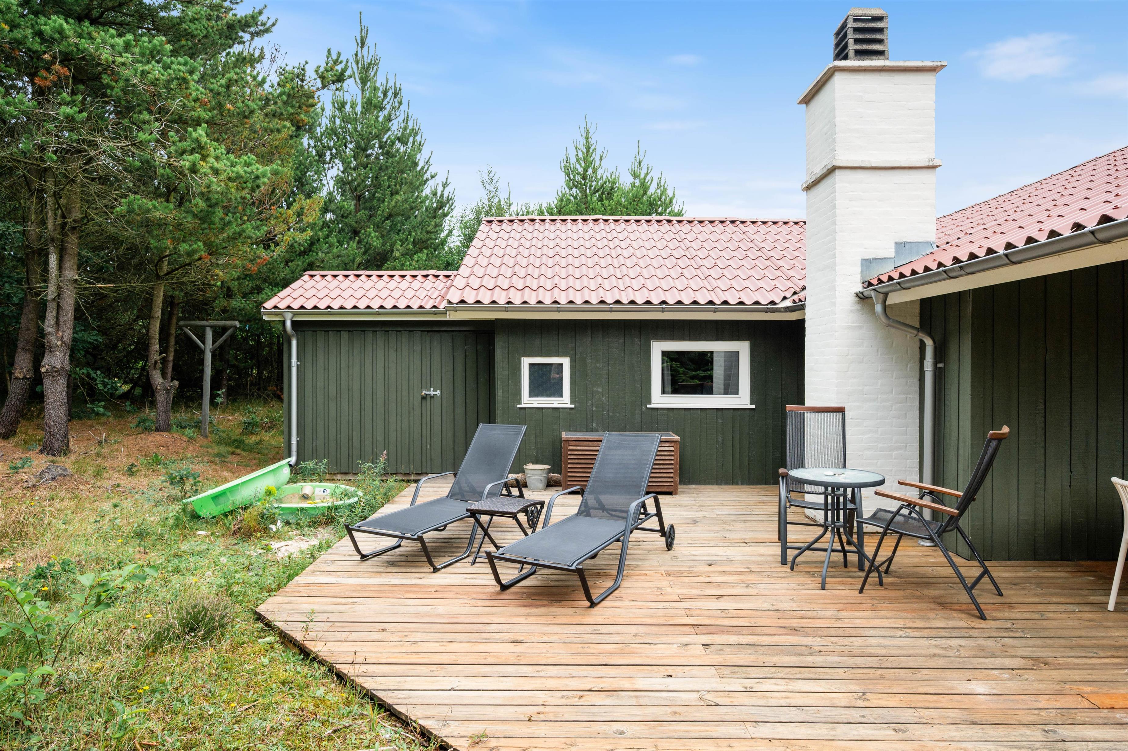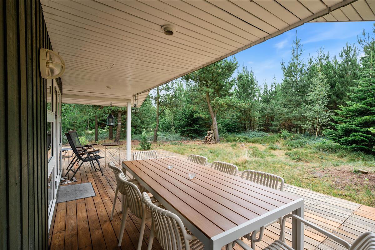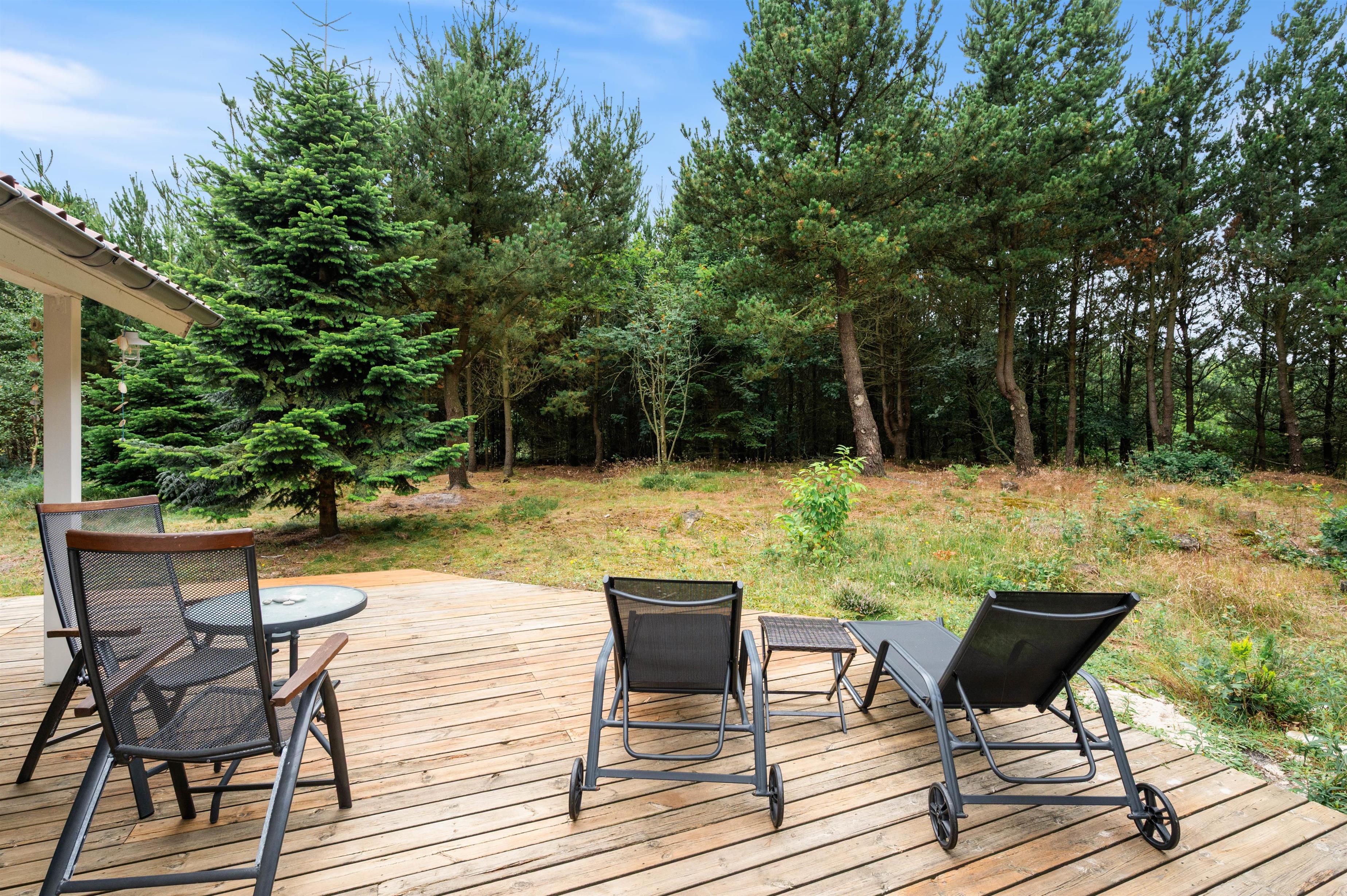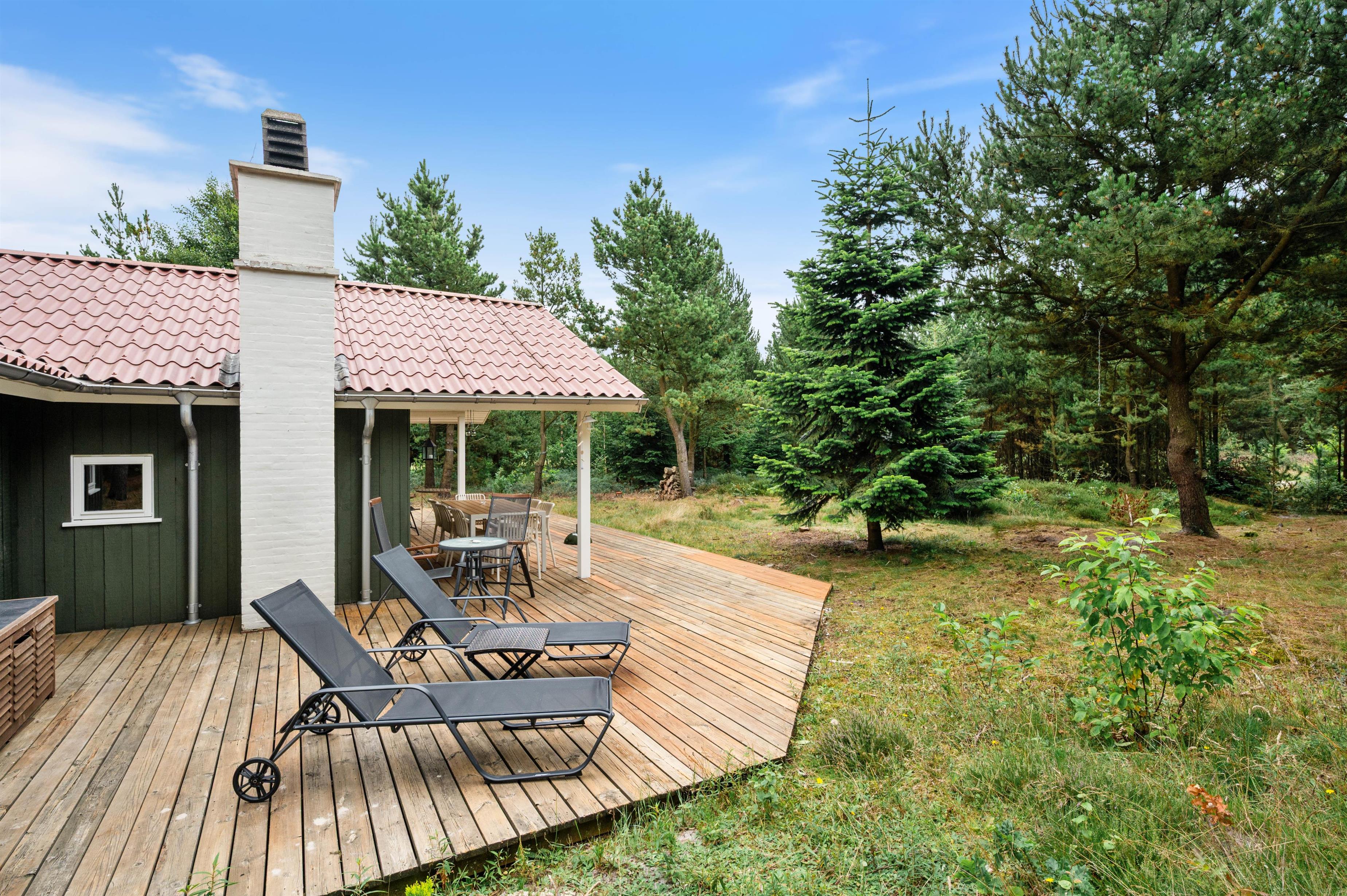 Start your perfect holiday morning with fresh rolls from the local supermarket and plan your day over breakfast on the generous wooden terrace. The partially covered terrace means you can enjoy the wonderful surroundings even on damp days. The house is surrounded by an idyllic natural garden - perfect for playing and running around with dogs and children.