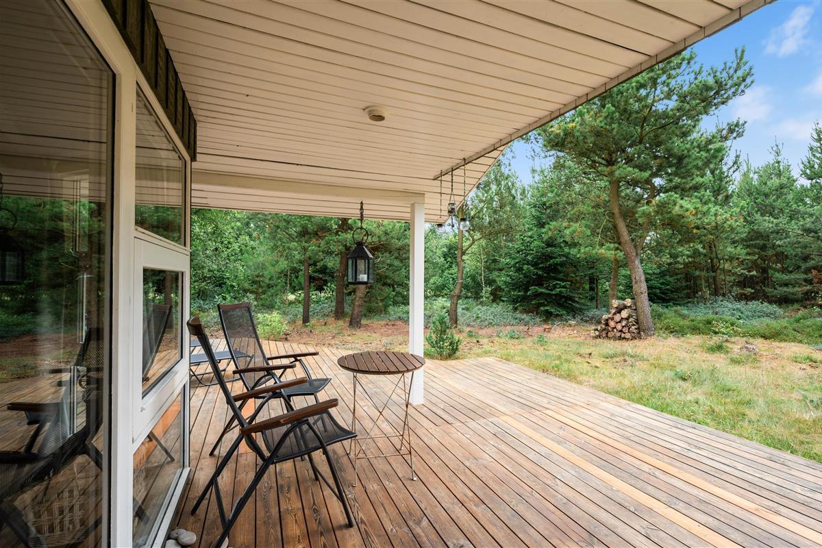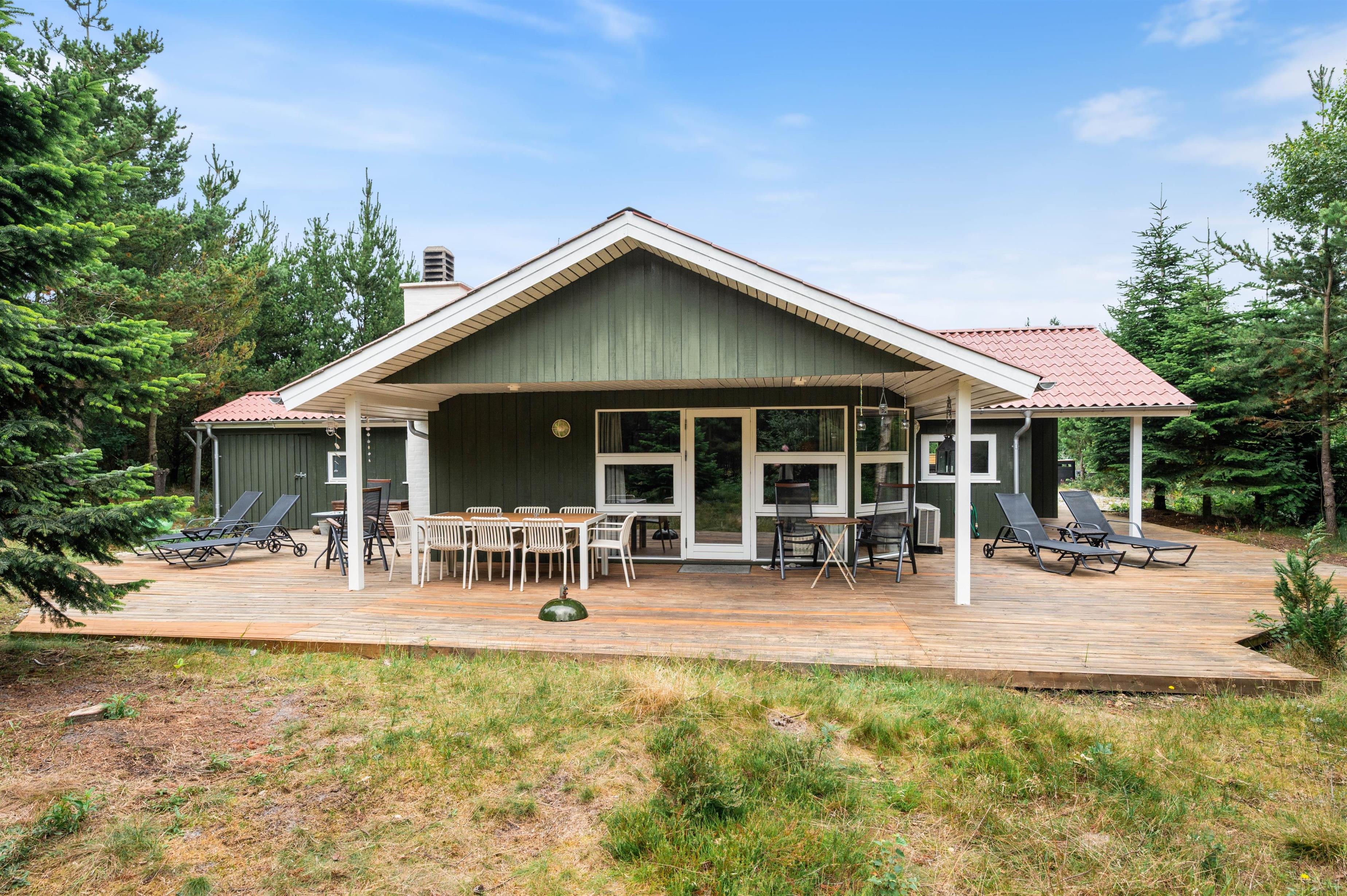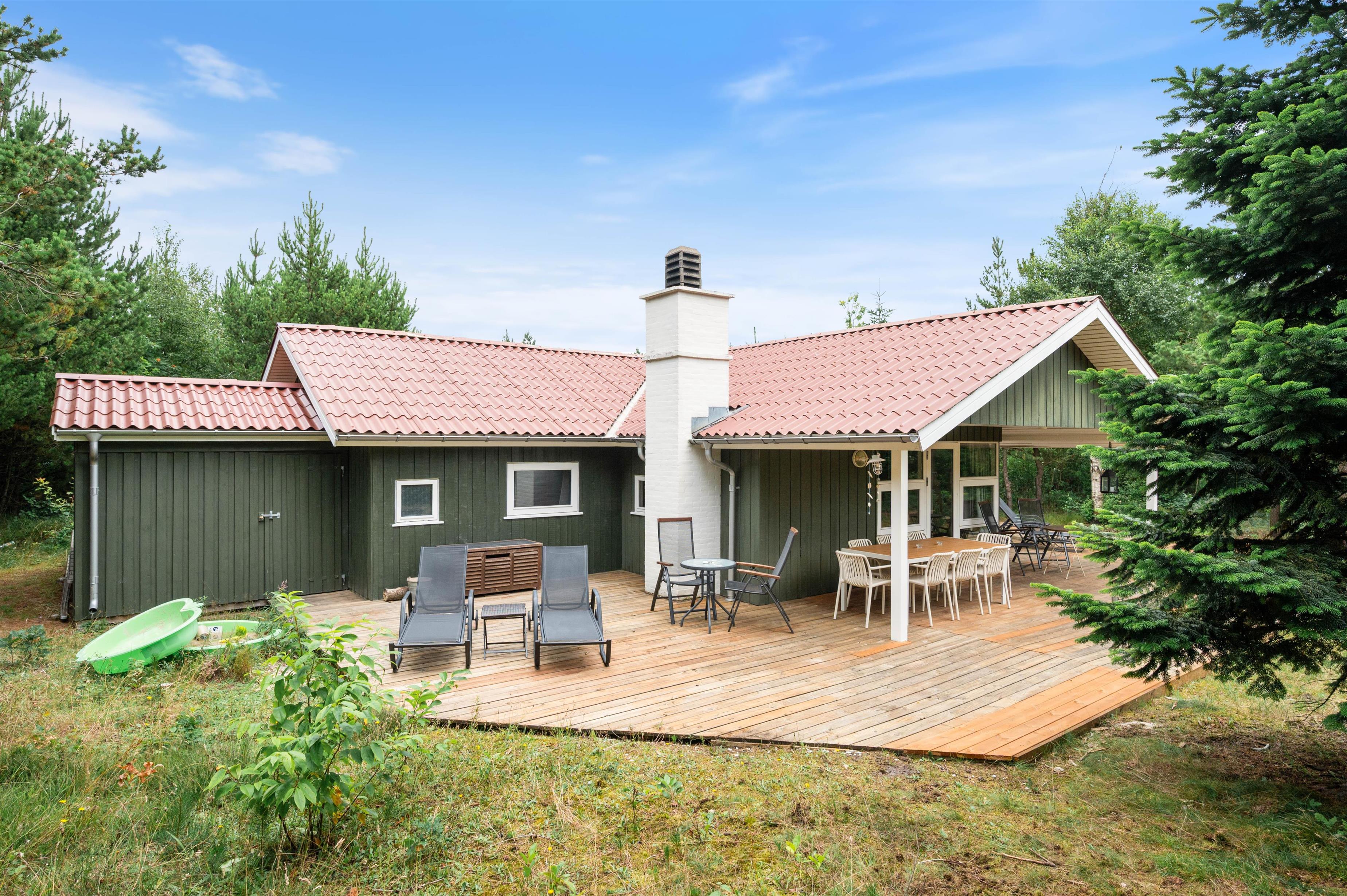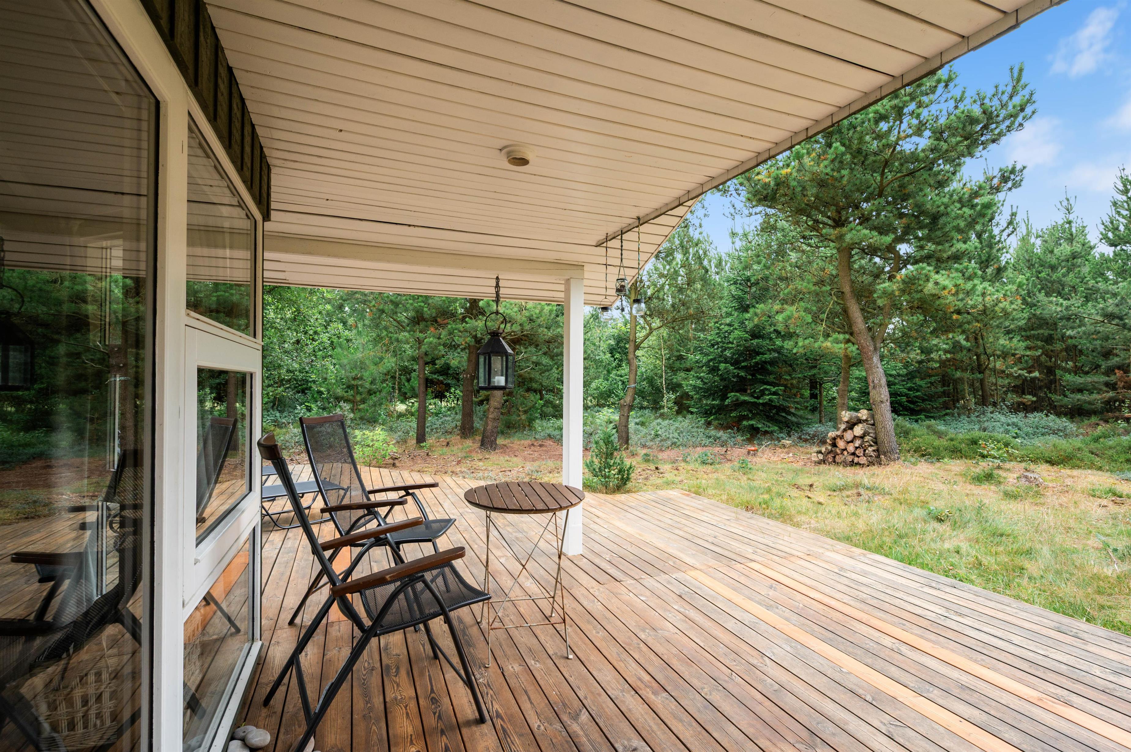 Start your perfect holiday morning with fresh rolls from the local supermarket and plan your day over breakfast on the generous wooden terrace. The partially covered terrace means you can enjoy the wonderful surroundings even on damp days. The house is surrounded by an idyllic natural garden - perfect for playing and running around with dogs and children.