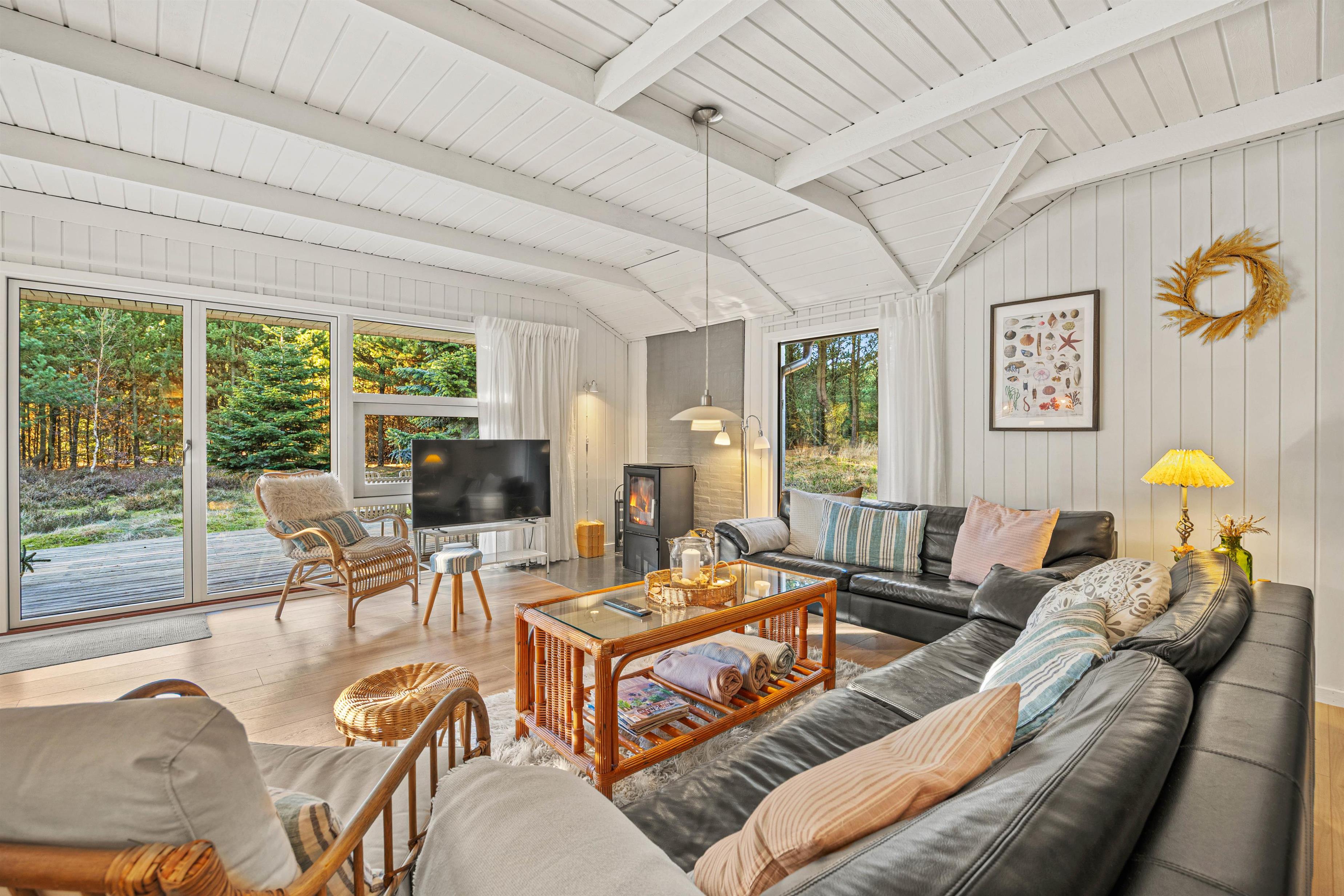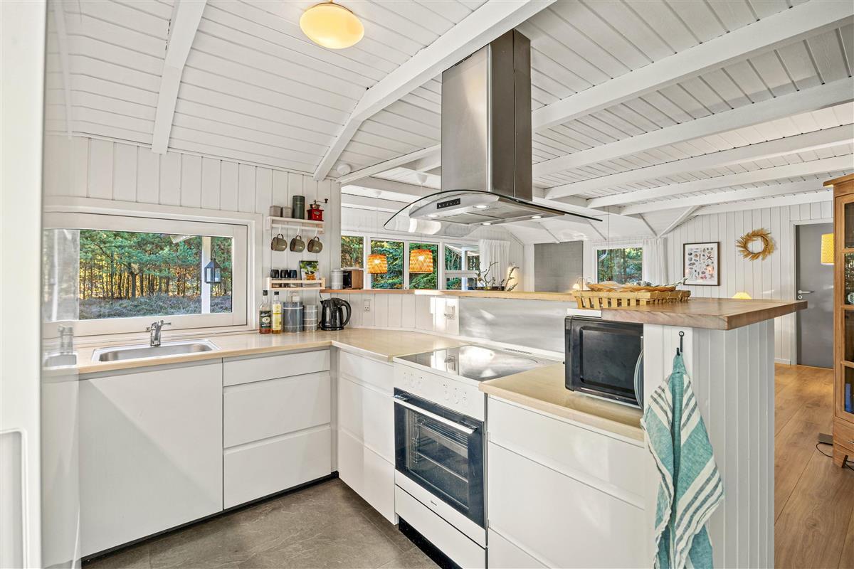There are many beautiful places worth visiting in the surrounding area. Take the children and dog to the long white sandy beach. Here you can enjoy wonderful walks, swimming in summer, and almost always find perfect conditions for flying kites. The nearby Blåbjerg Plantation is a walker's paradise, offering trails through Nordic woods and enchanting heathland.