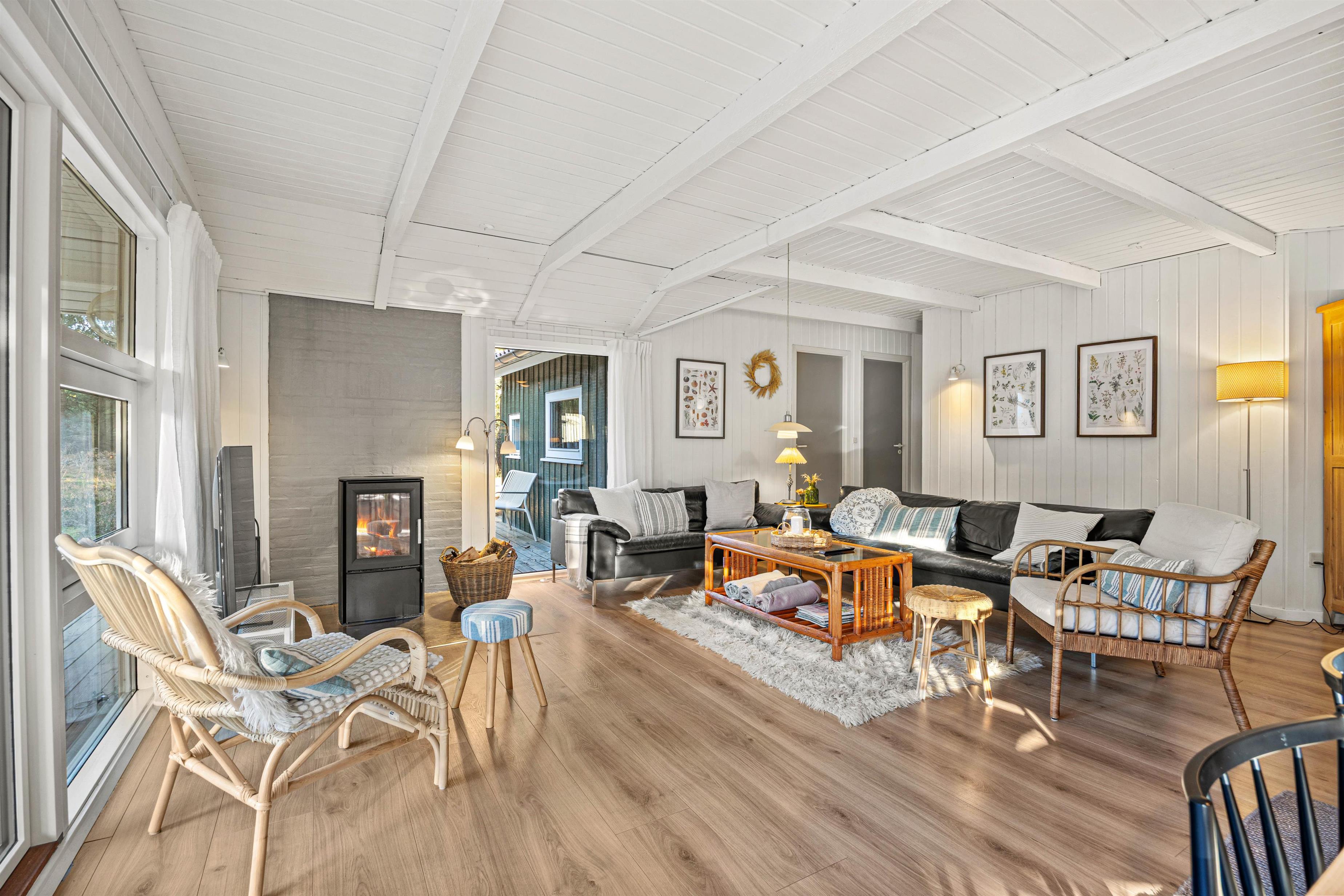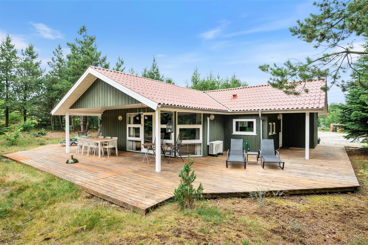This bright wooden holiday home sits on beautiful natural grounds. The holiday home is spacious and well-equipped with both a hot tub and sauna, while the large terrace offers plenty of space to relax and enjoy the surroundings.