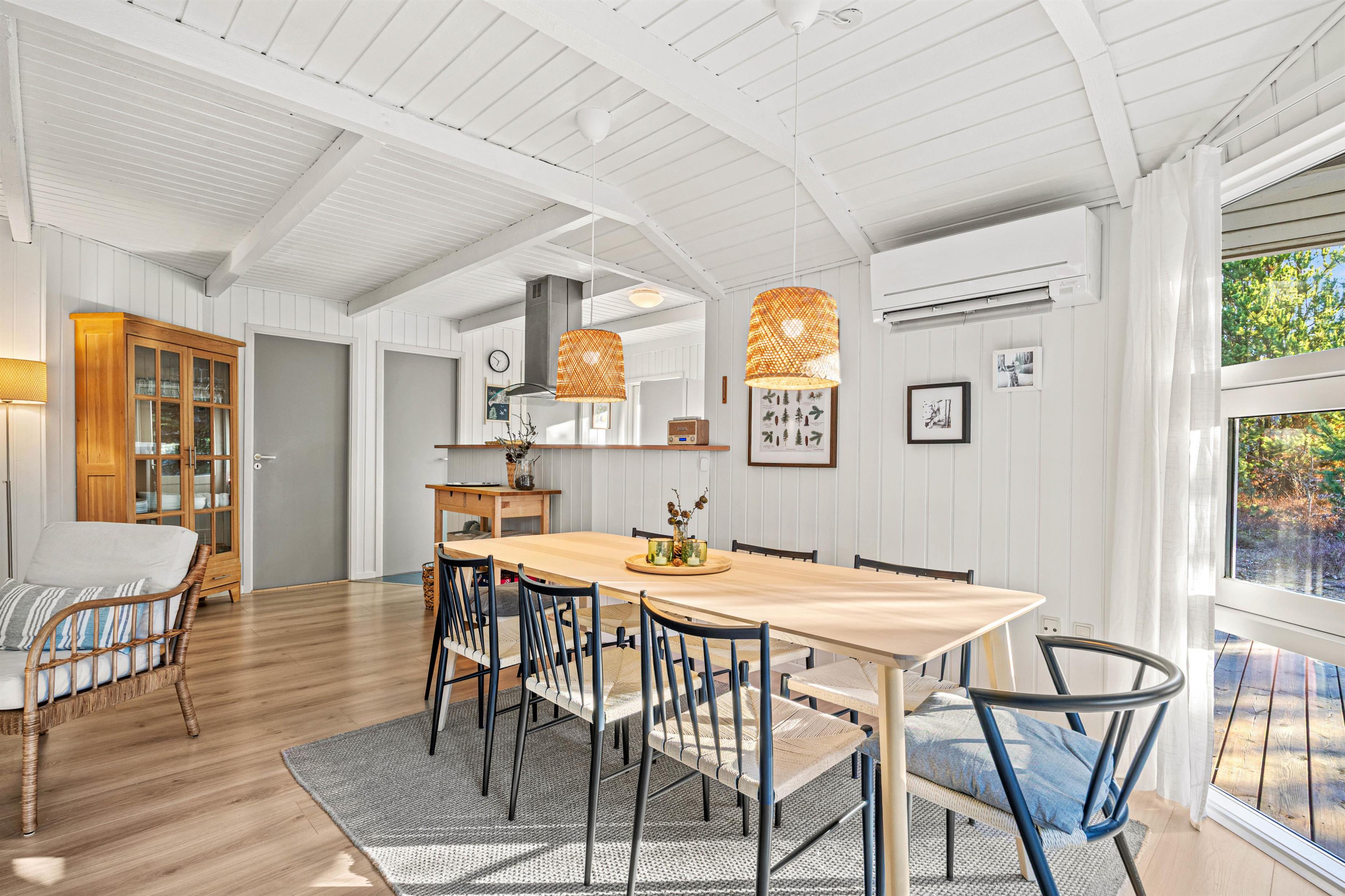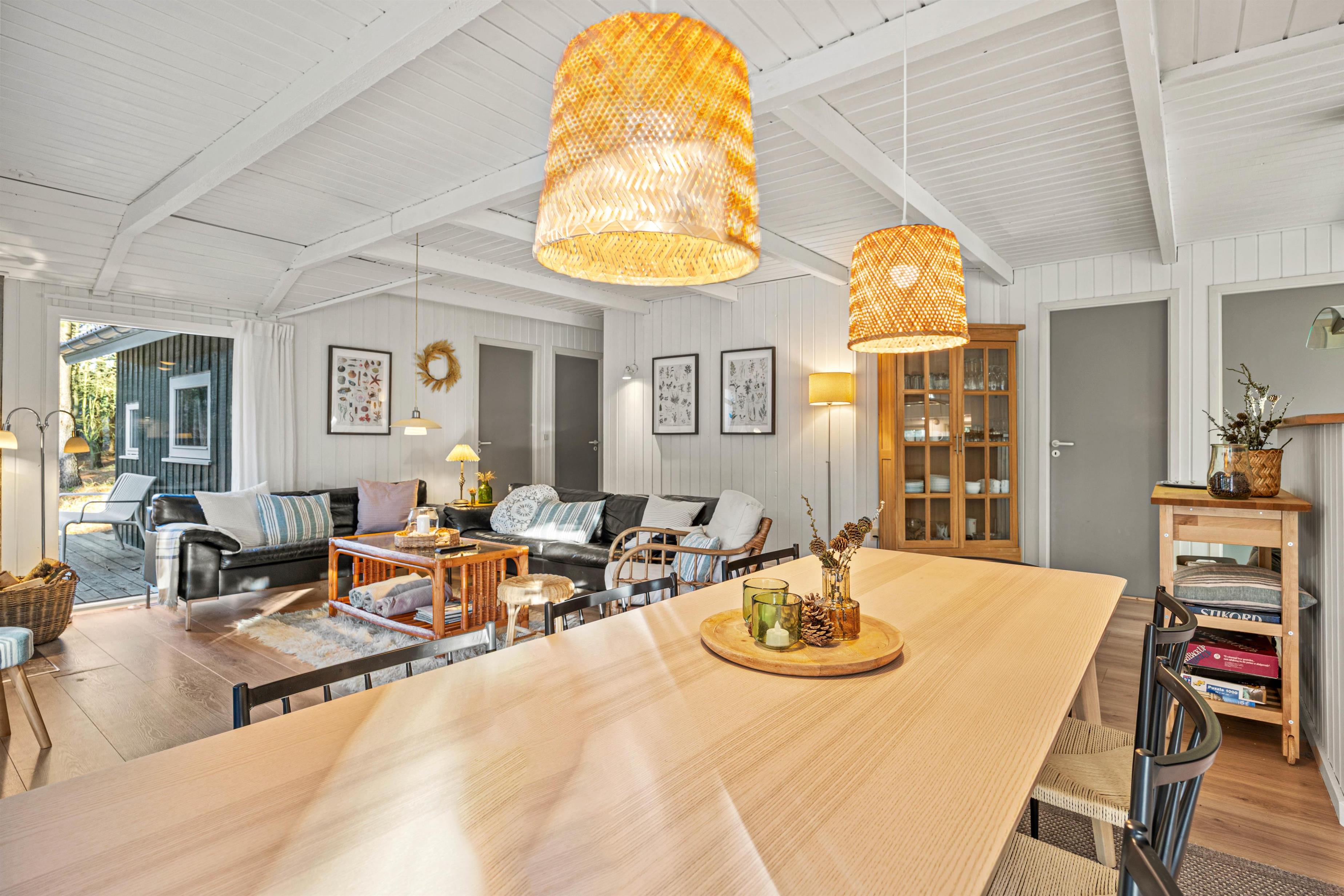 The spacious house comfortably accommodates 8 people and a dog. The large kitchen, installed in 2021, and the combined living/dining area form the heart of the house, perfect for cosy evenings cooking, dining and playing games together.