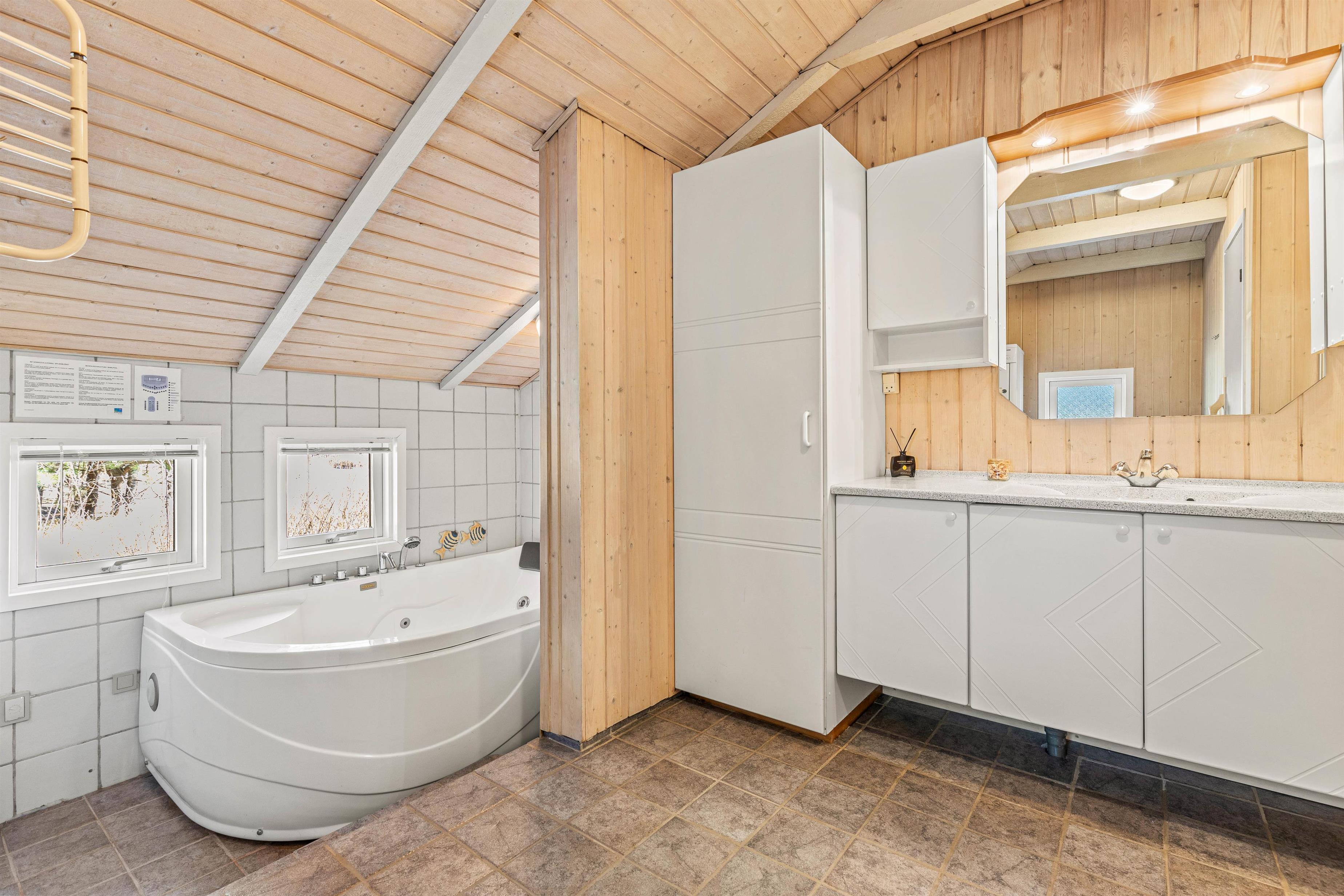 The house at Nørrevang 231 comes equipped with various practical appliances including a dishwasher, washing machine and tumble dryer. The highlight is the large bathroom, where you can truly relax in either the whirlpool or sauna. Lean back and feel the warmth soothing your muscles after an active day in the fresh air.