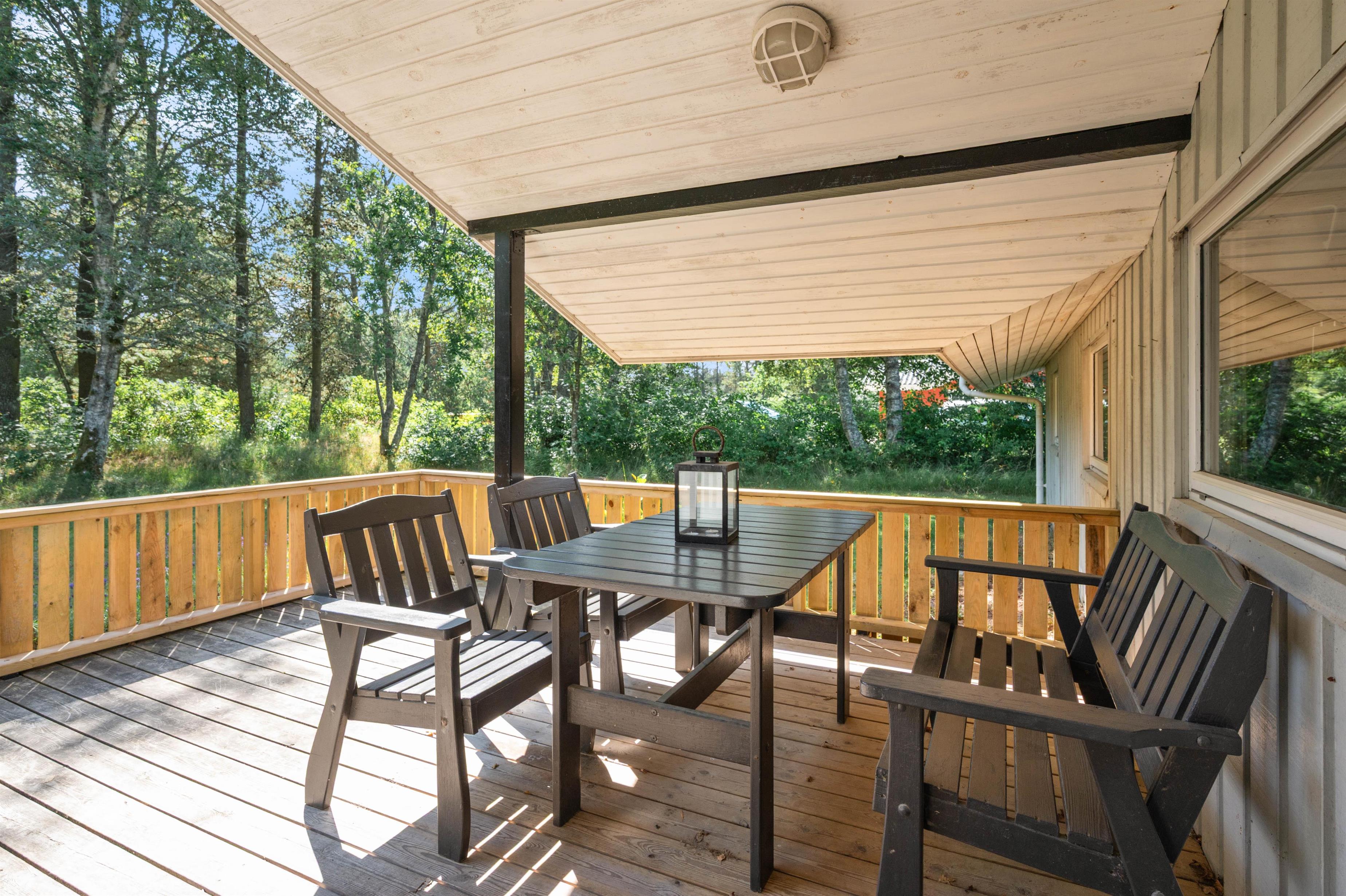 This cosy non-smoking holiday home sits on a beautiful natural plot in stunning surroundings. The large, partially covered terrace offers plenty of space for everyone to enjoy the weather on the sun loungers.