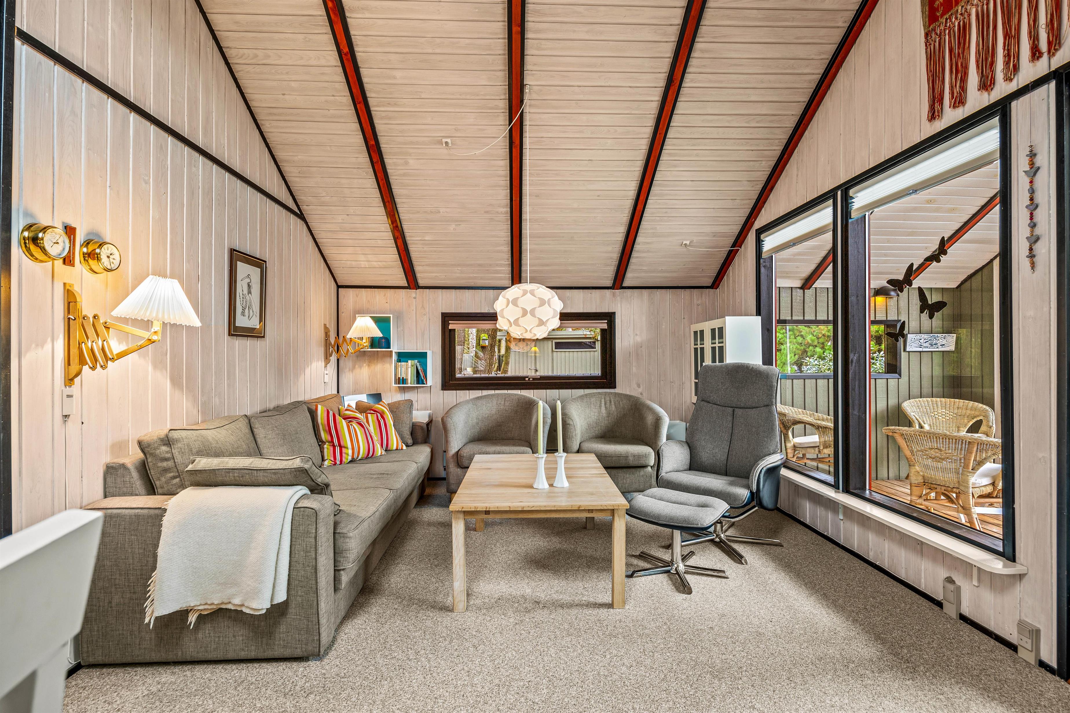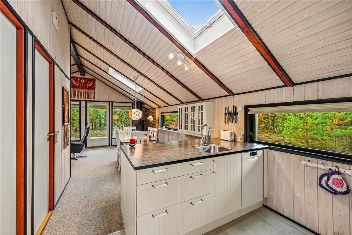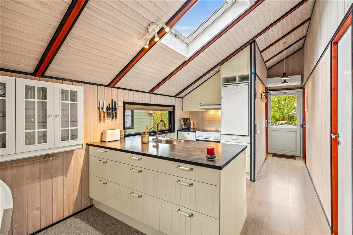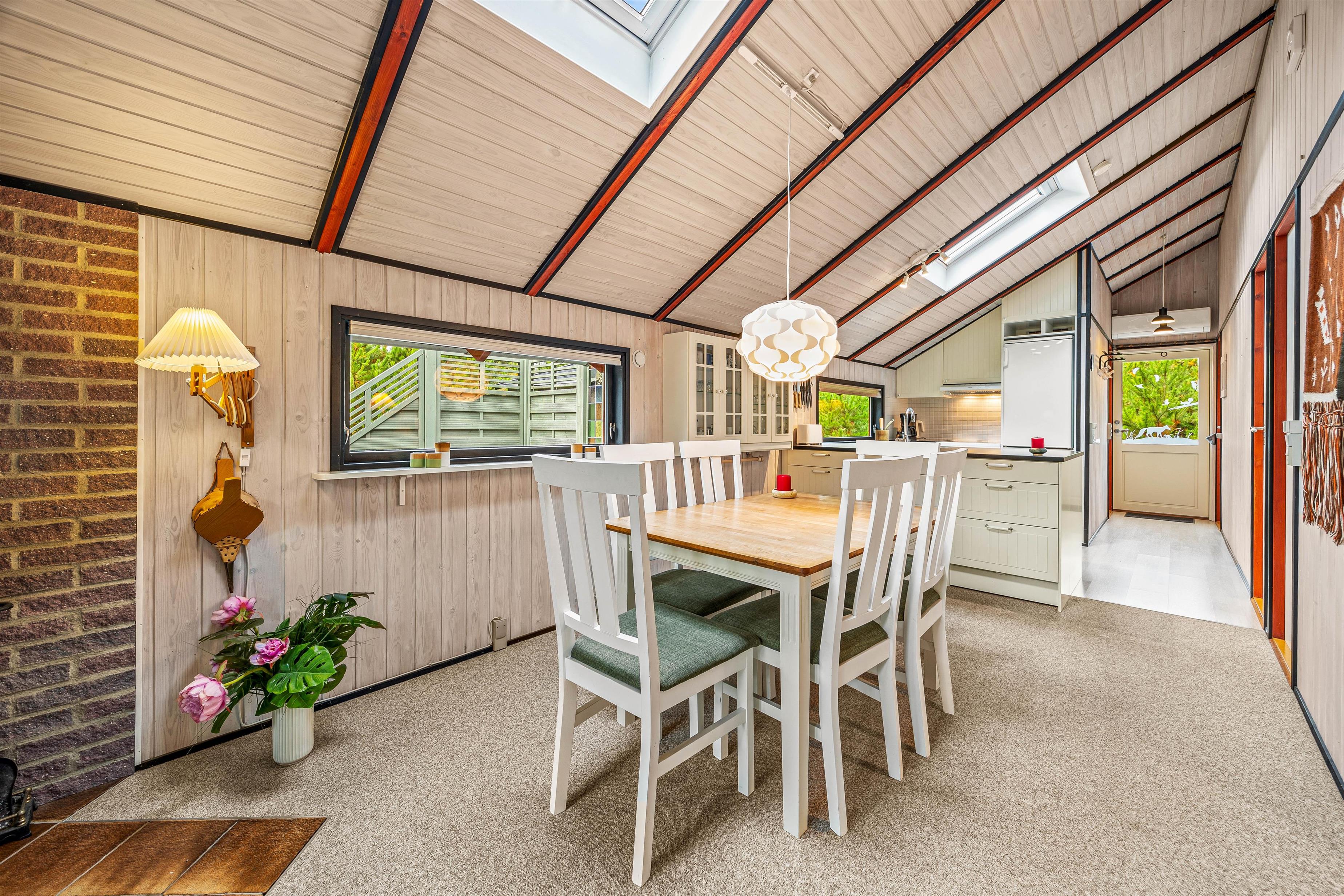 The holiday home at Skovvang 100 sits on a large natural plot and features multiple terraces. The open terrace allows you to make the most of sunny days, while the screened terrace offers a peaceful retreat. The covered terrace is ideal for days when the weather is less predictable.