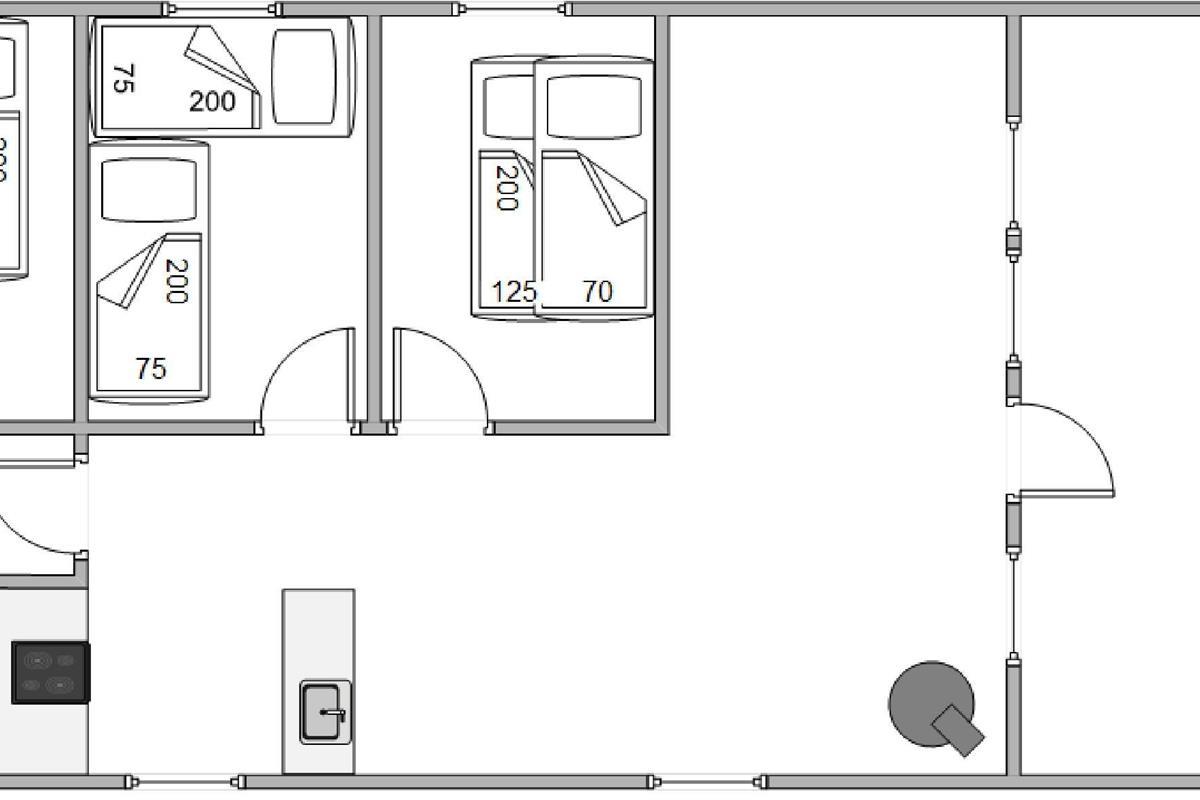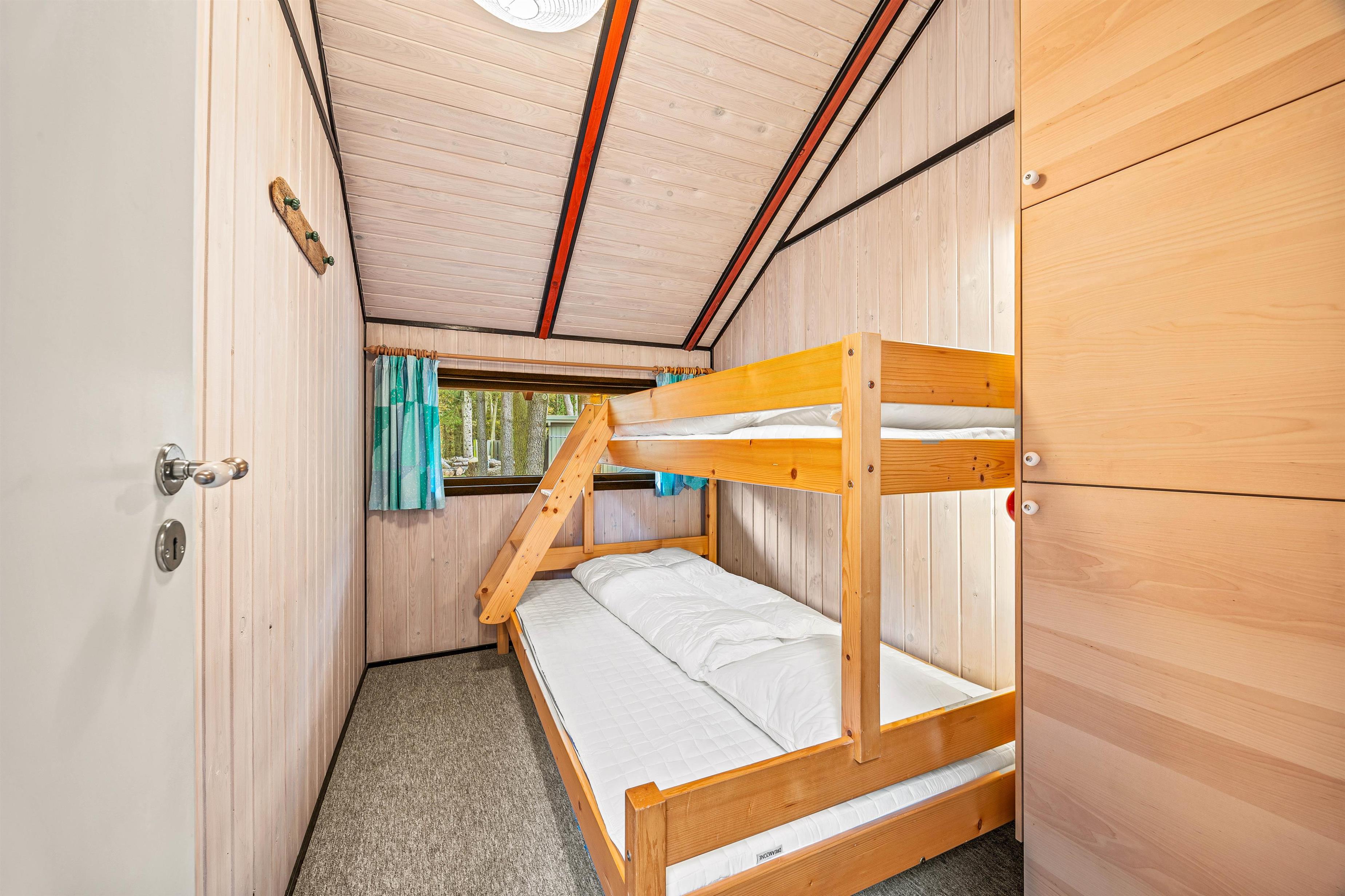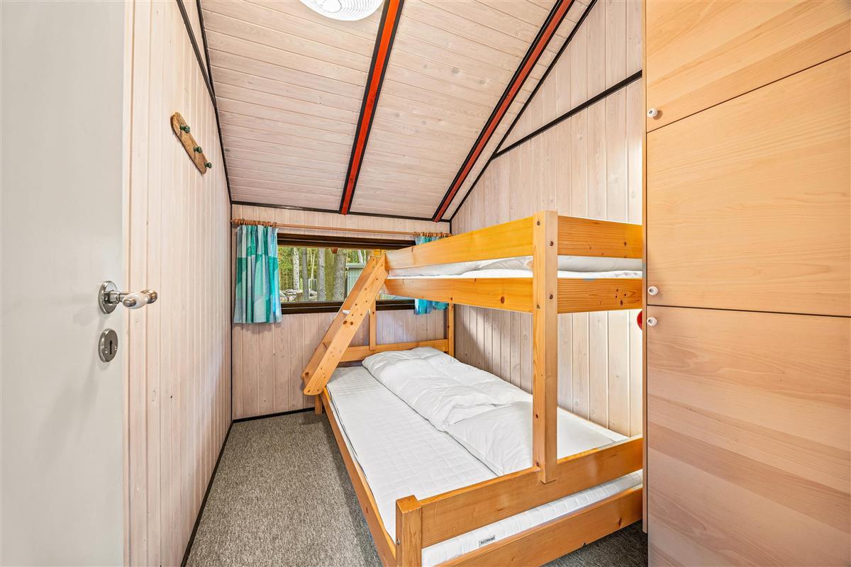 With 3 bedrooms in total, the holiday home is ideal for families or small groups. One double bed, two single beds, and one bunk bed are distributed across the different rooms, providing sleeping arrangements for up to 6 people.