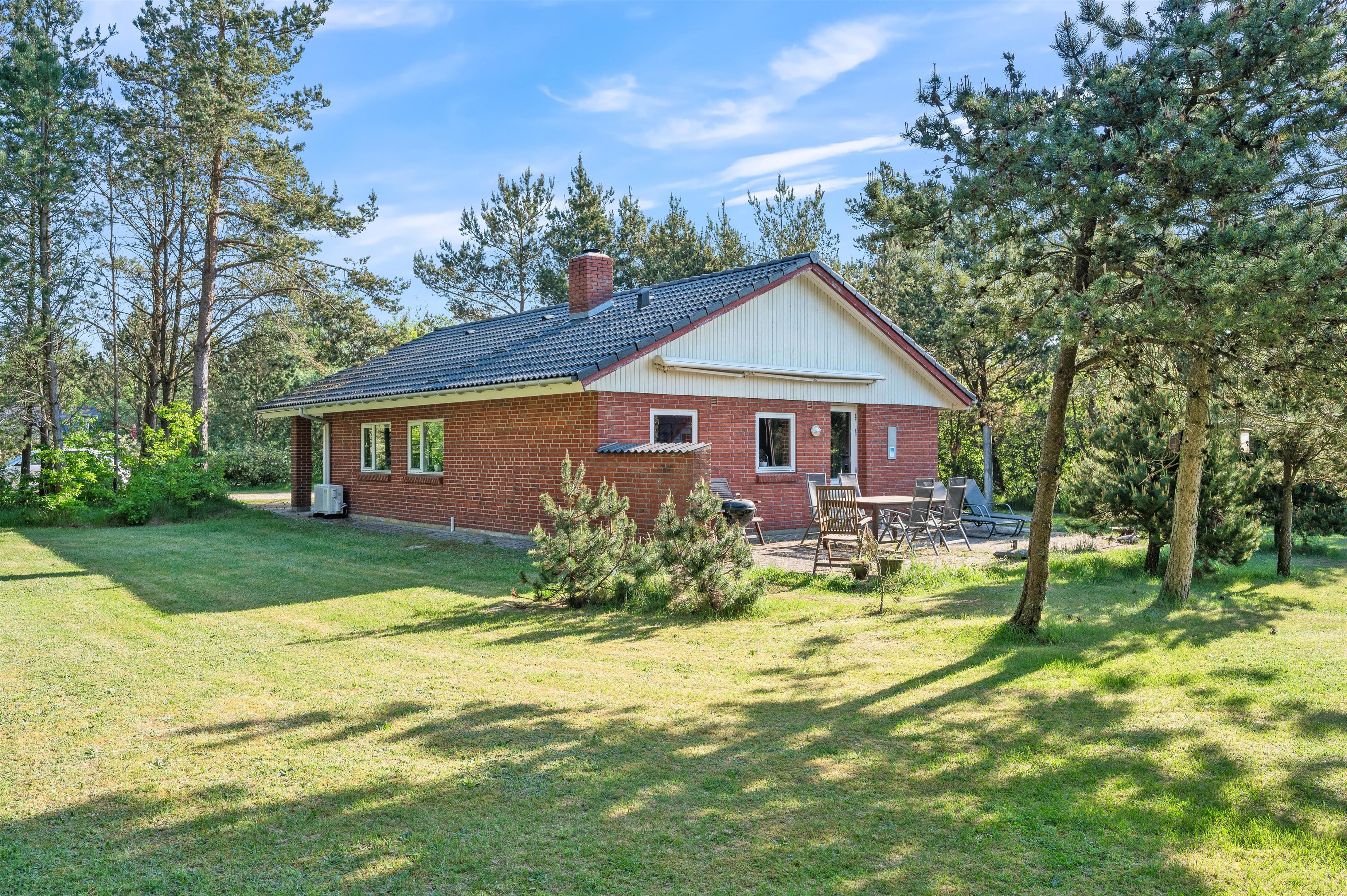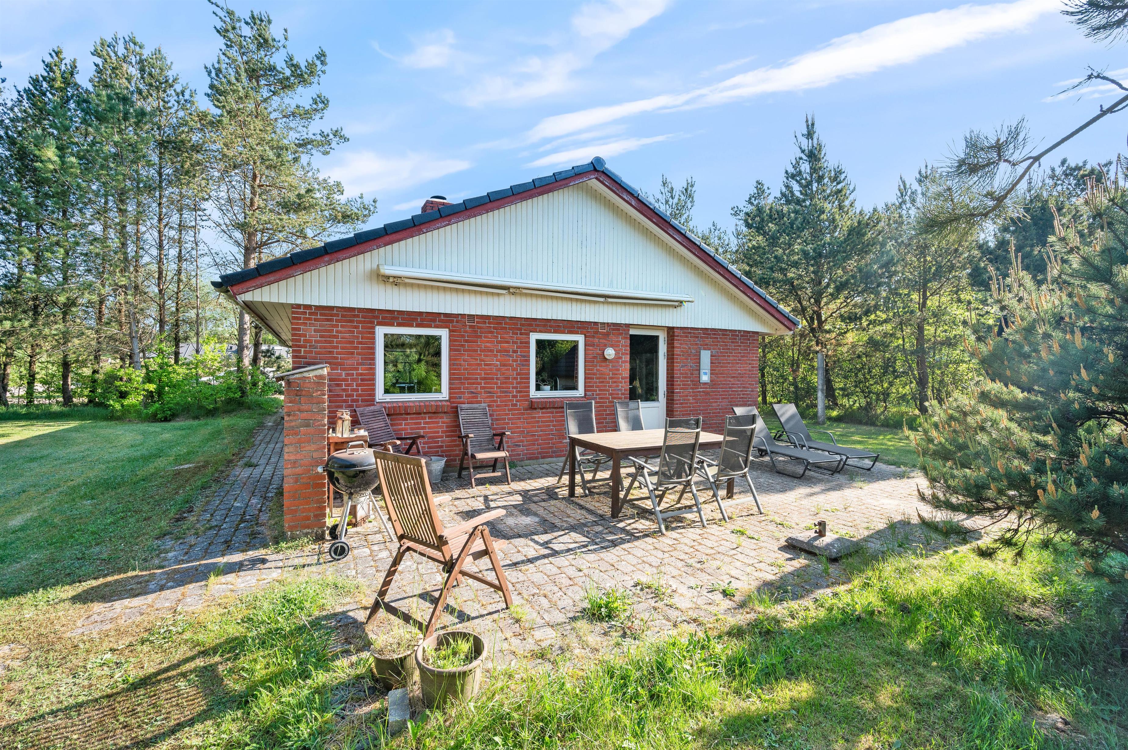 The holiday home, partially renovated in 2017, features three bedrooms accommodating up to 6 people. It also boasts a large, south-facing terrace with garden furniture, sun loungers and a barbecue. Mature trees surround the holiday home, providing shelter for most of the 1,414-square-metre lawn - perfect for playing games and spending relaxing hours outdoors.