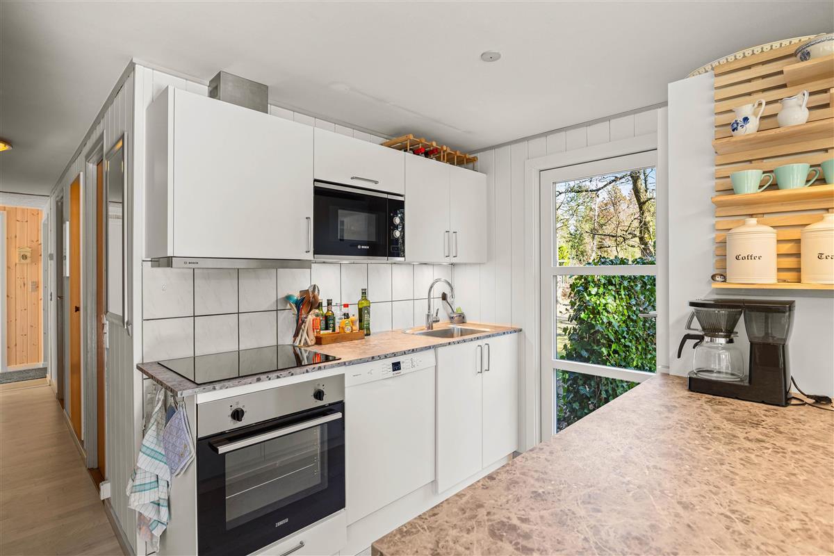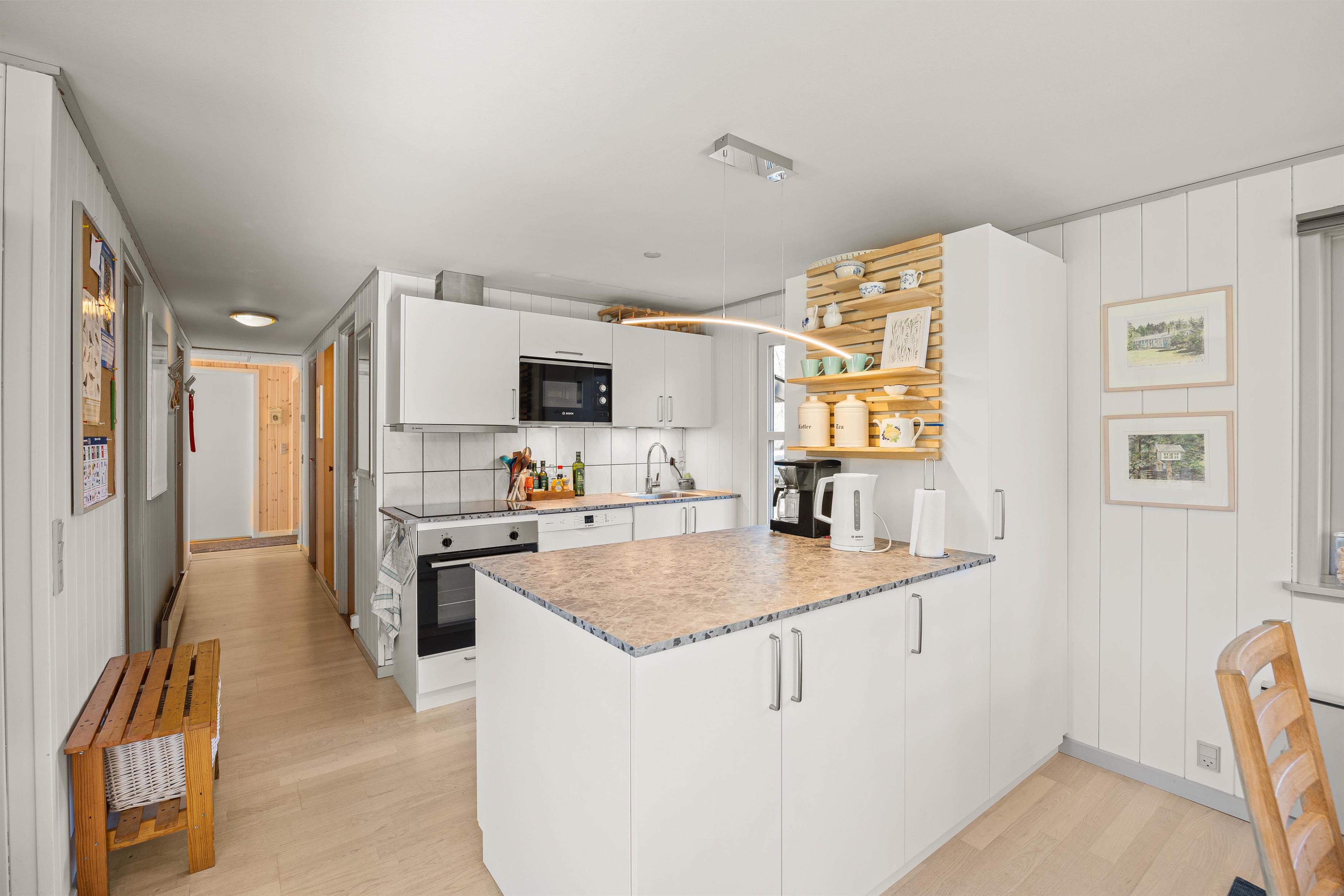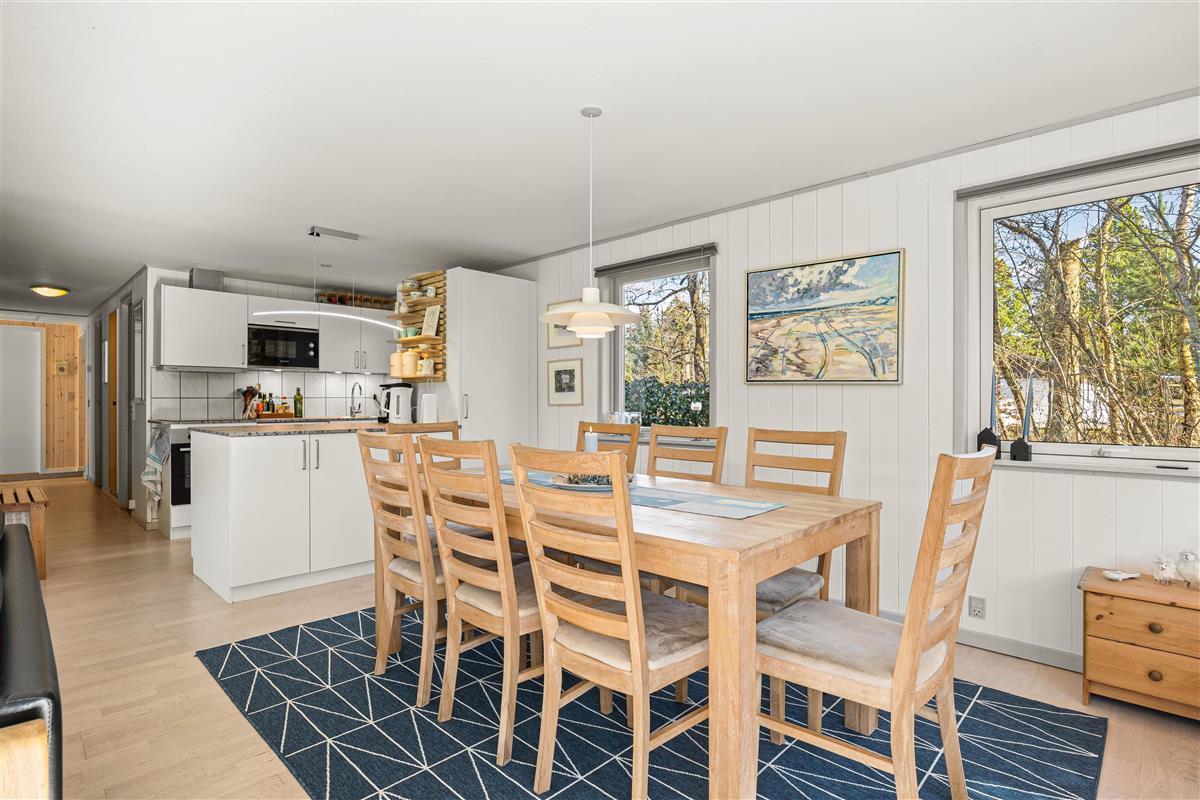 The well-equipped kitchen connects to the living and dining area, forming the heart of the home. Large windows in this space allow you to feel close to nature even while relaxing on the sofa.