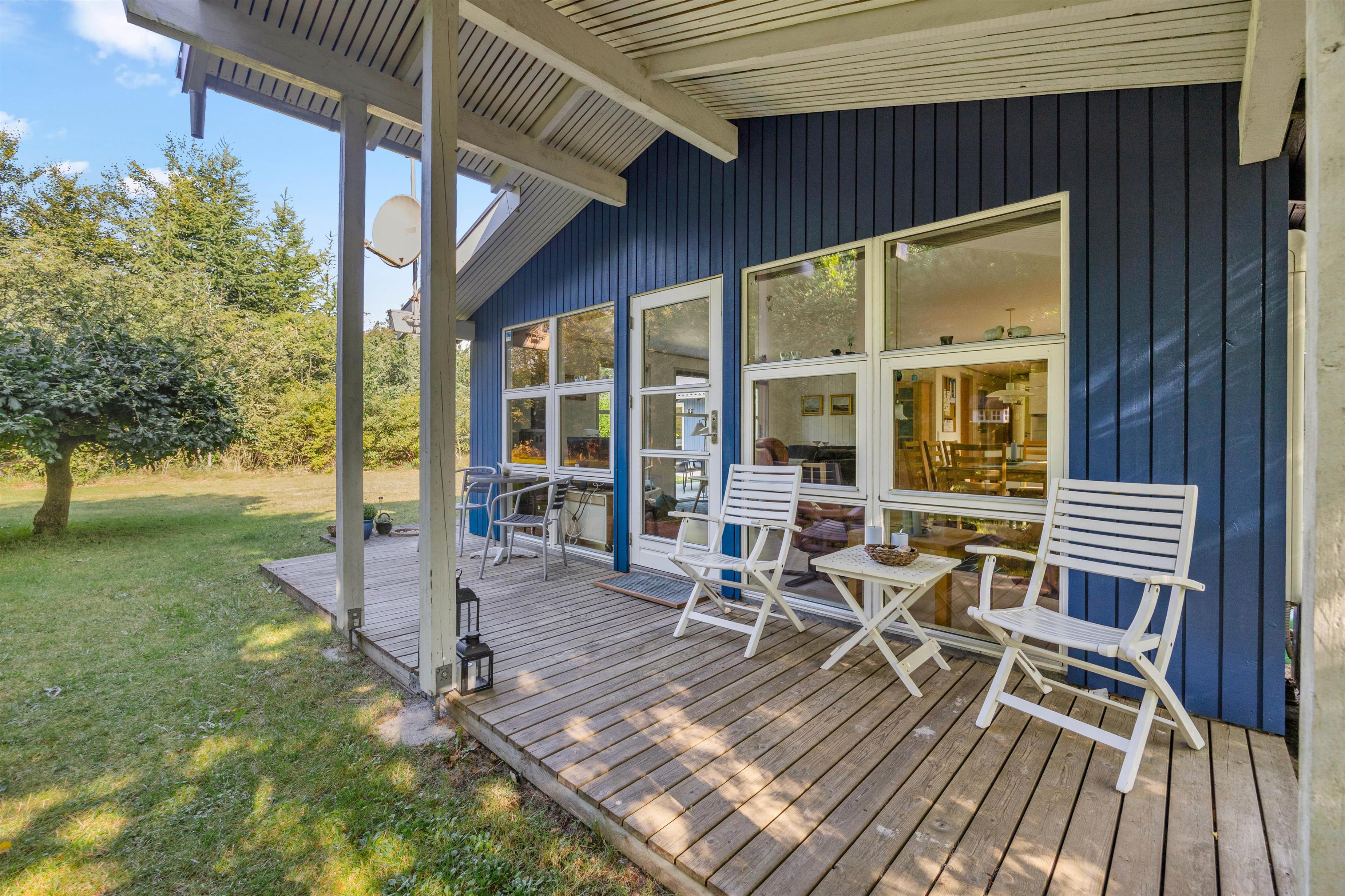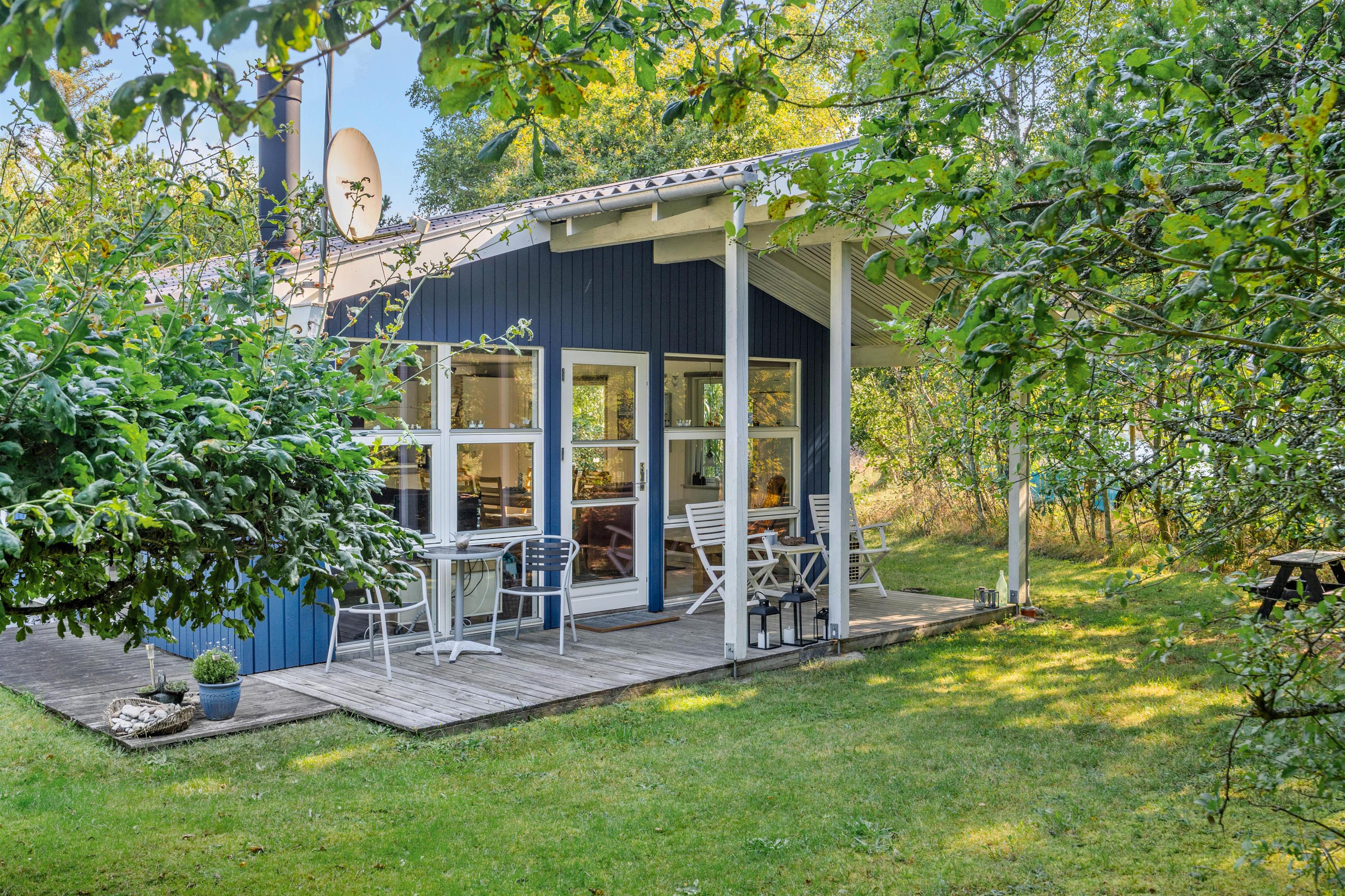 This traditional and cosily furnished wooden holiday home is situated on a beautiful natural plot at Jens Thomsensvej 16, nestled in the woodland area of Houstrup. With space for up to 6 people, it's ideal for families or couples seeking a relaxing break.