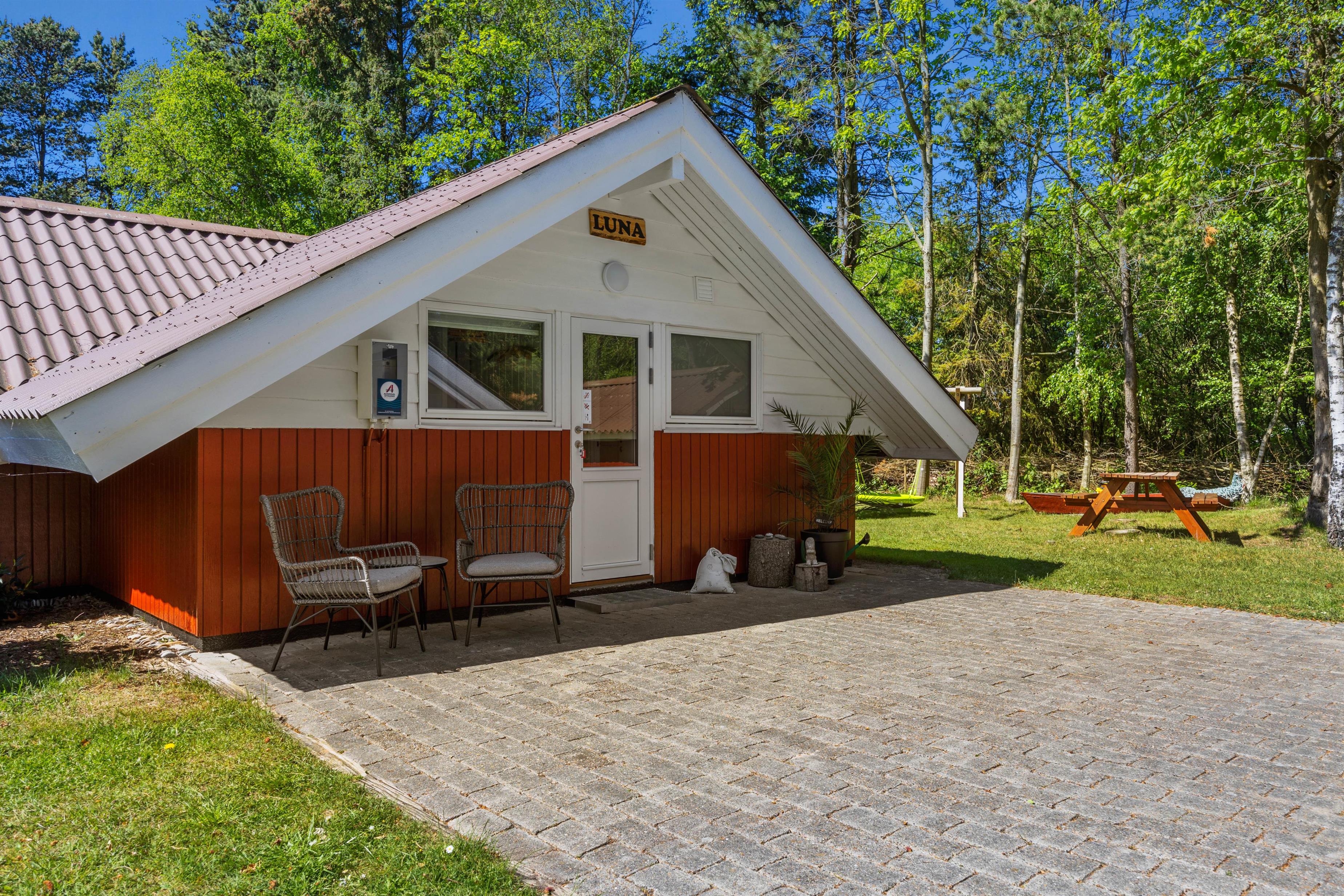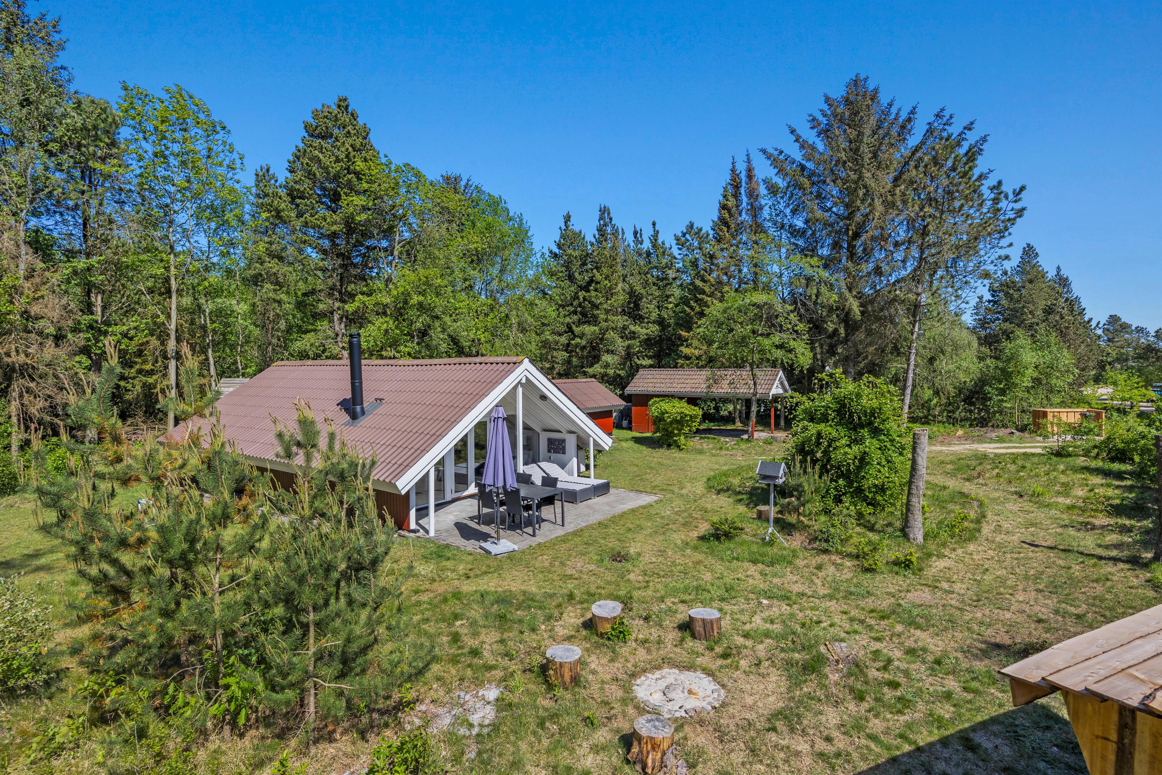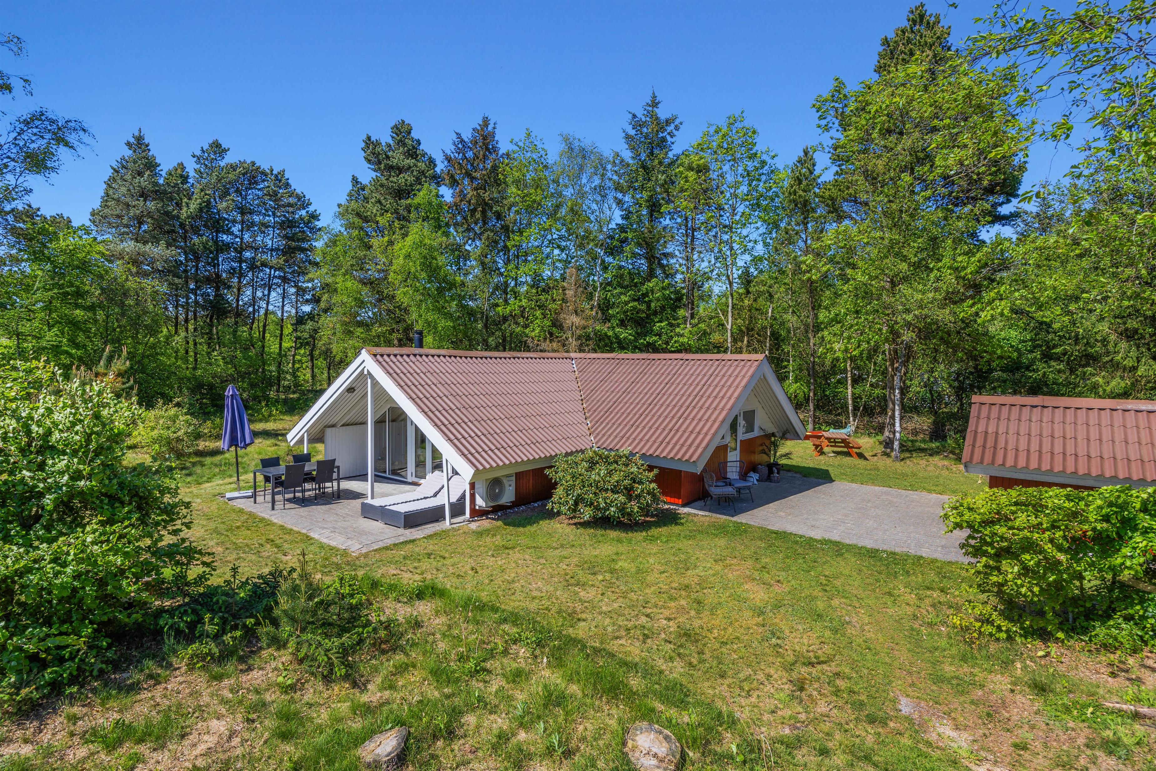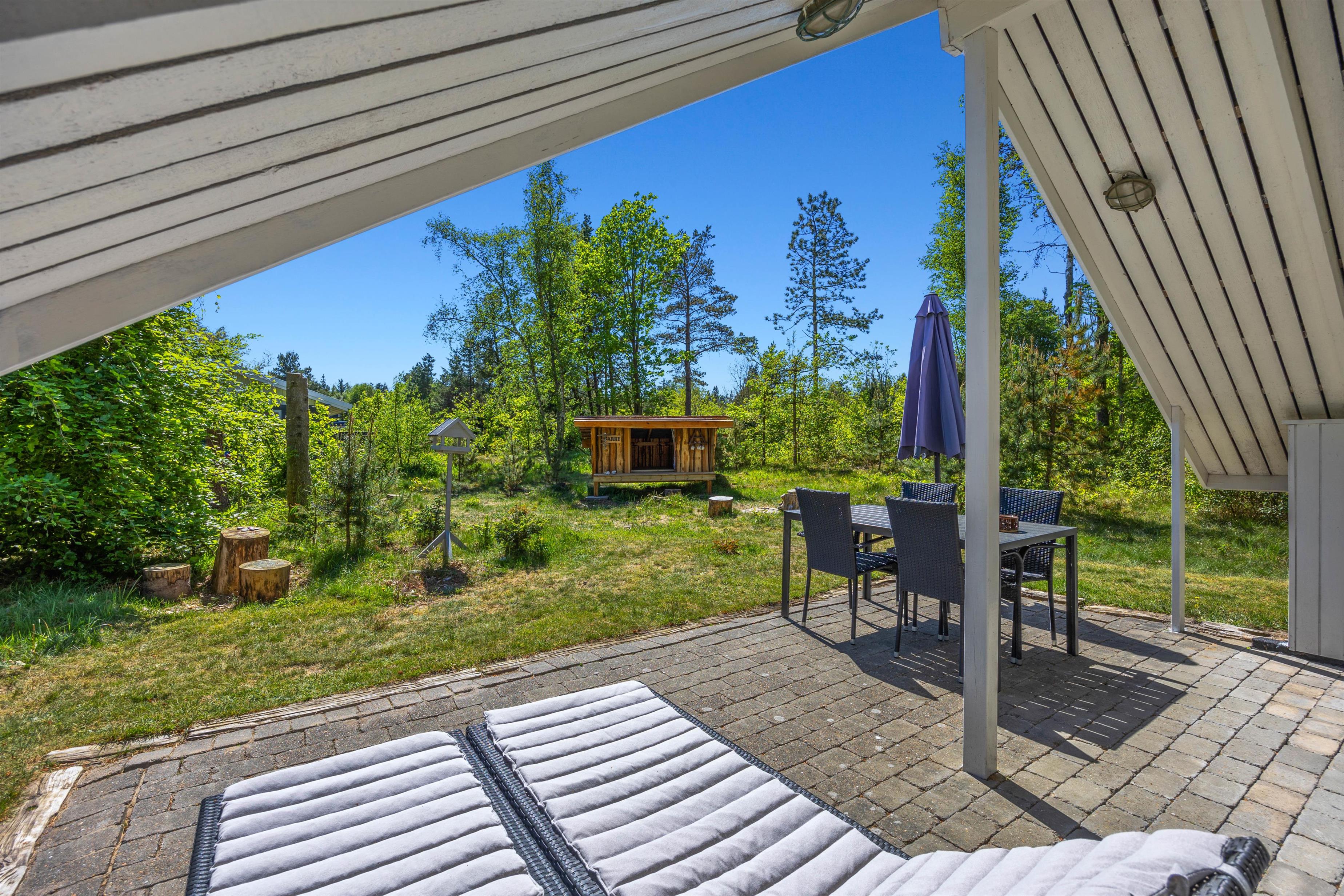 As soon as you enter the holiday home, you'll feel the classic atmosphere of a Danish holiday retreat. The walls and ceilings throughout are wood-panelled, giving the holiday home a bright and welcoming ambiance. The heart of this beautiful holiday home is the large living area, combining the living room, kitchen and dining room in one space.