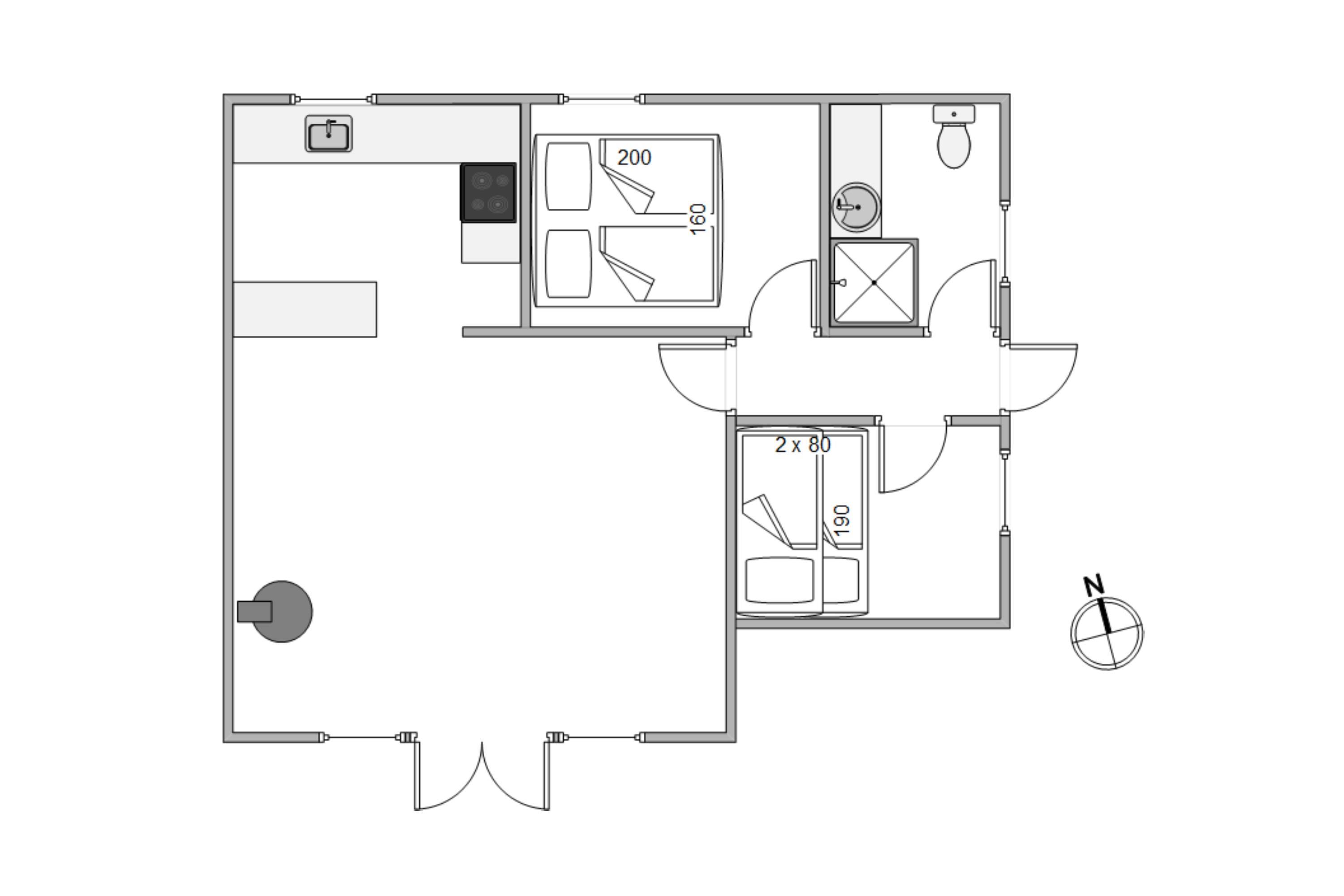 The holiday home features an energy-efficient heat pump that quickly and efficiently creates a comfortable temperature and pleasant indoor climate. For a restful night's sleep, there are two bedrooms available. For the little ones, there's a children's room with a modern bunk bed – they're sure to feel right at home and have lots of fun here. The bathroom is practically equipped with a shower.
