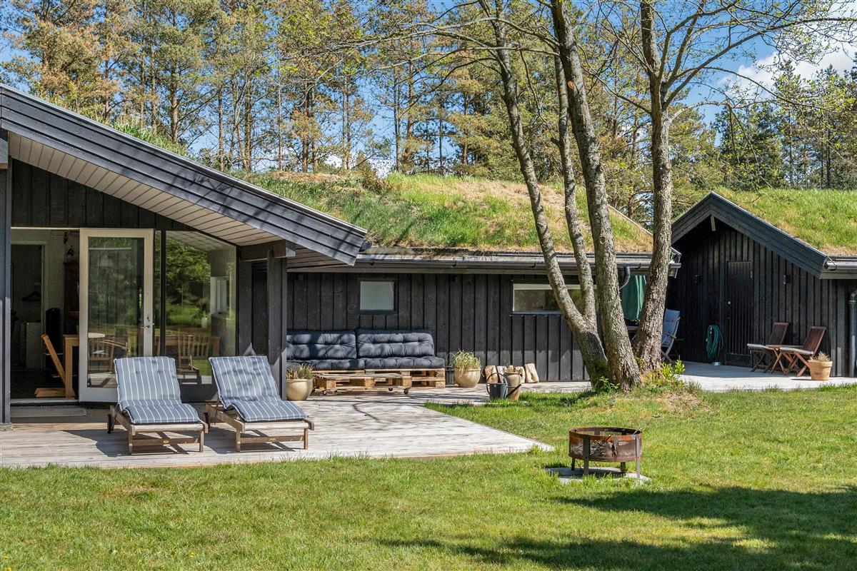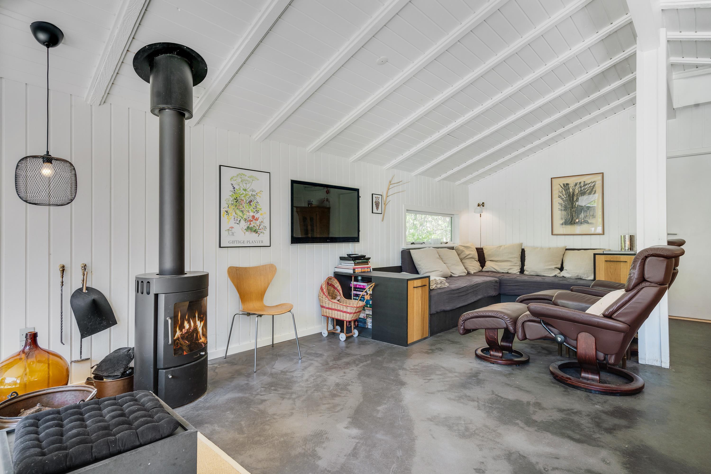Looking for peace, relaxation and beautiful green surroundings? Then this charming holiday home in Houstrup is absolutely perfect for you. Renovated in 2019, the holiday home offers a harmonious blend of modern and classic styles, featuring a fantastic, secluded and fenced lawn with beautiful terraces, a fire pit and children's playground. Your dogs are also very welcome here.