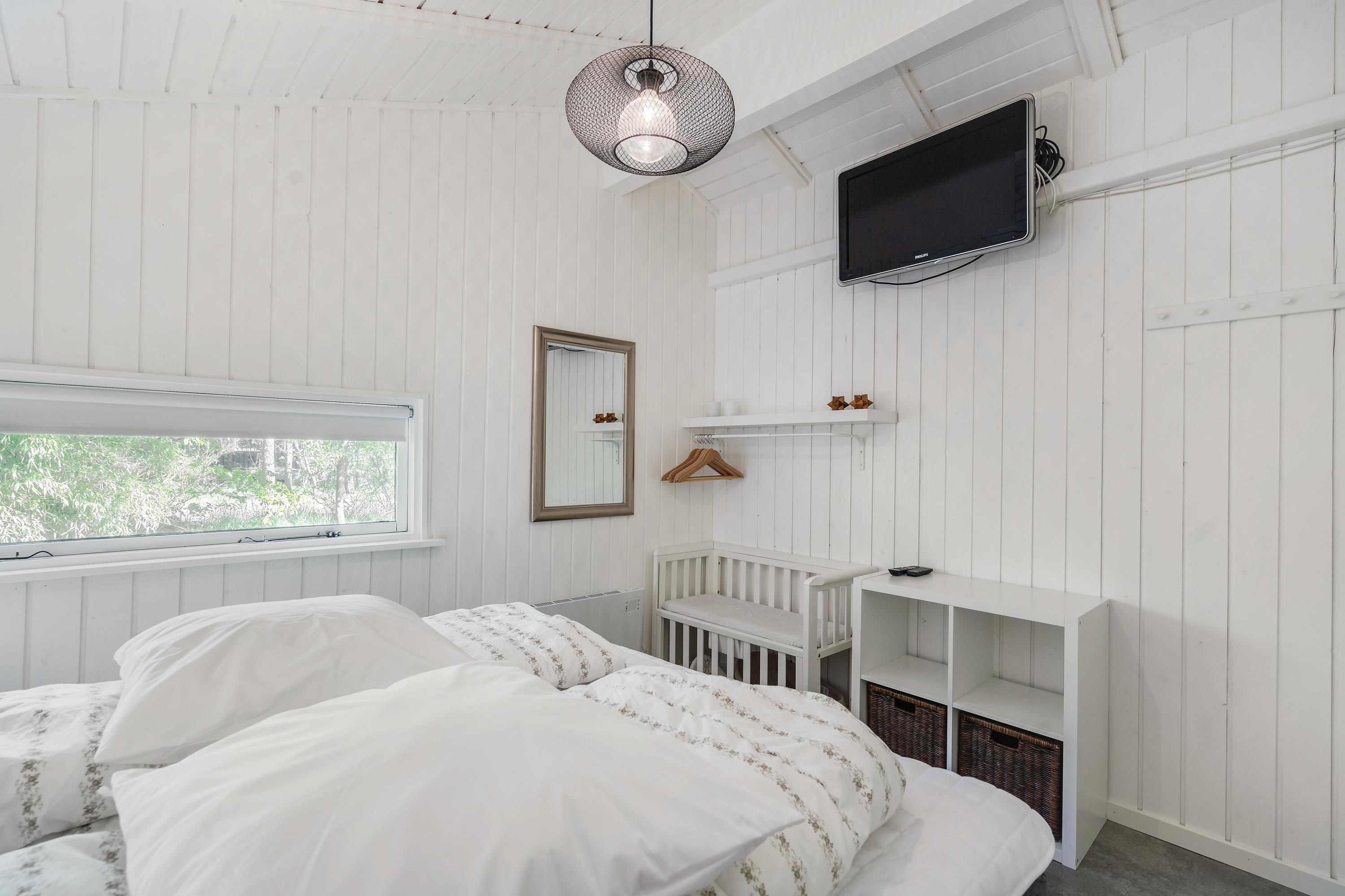 Light colours and high ceilings create a spacious atmosphere. The many small details add extra charm and soul to the holiday home. You'll feel welcome from the moment you arrive. The large wall-to-wall bed provides plenty of space for children to snuggle up with mum and dad. The master bedroom, a cot, and a changing table make this holiday home particularly convenient for families with small children.