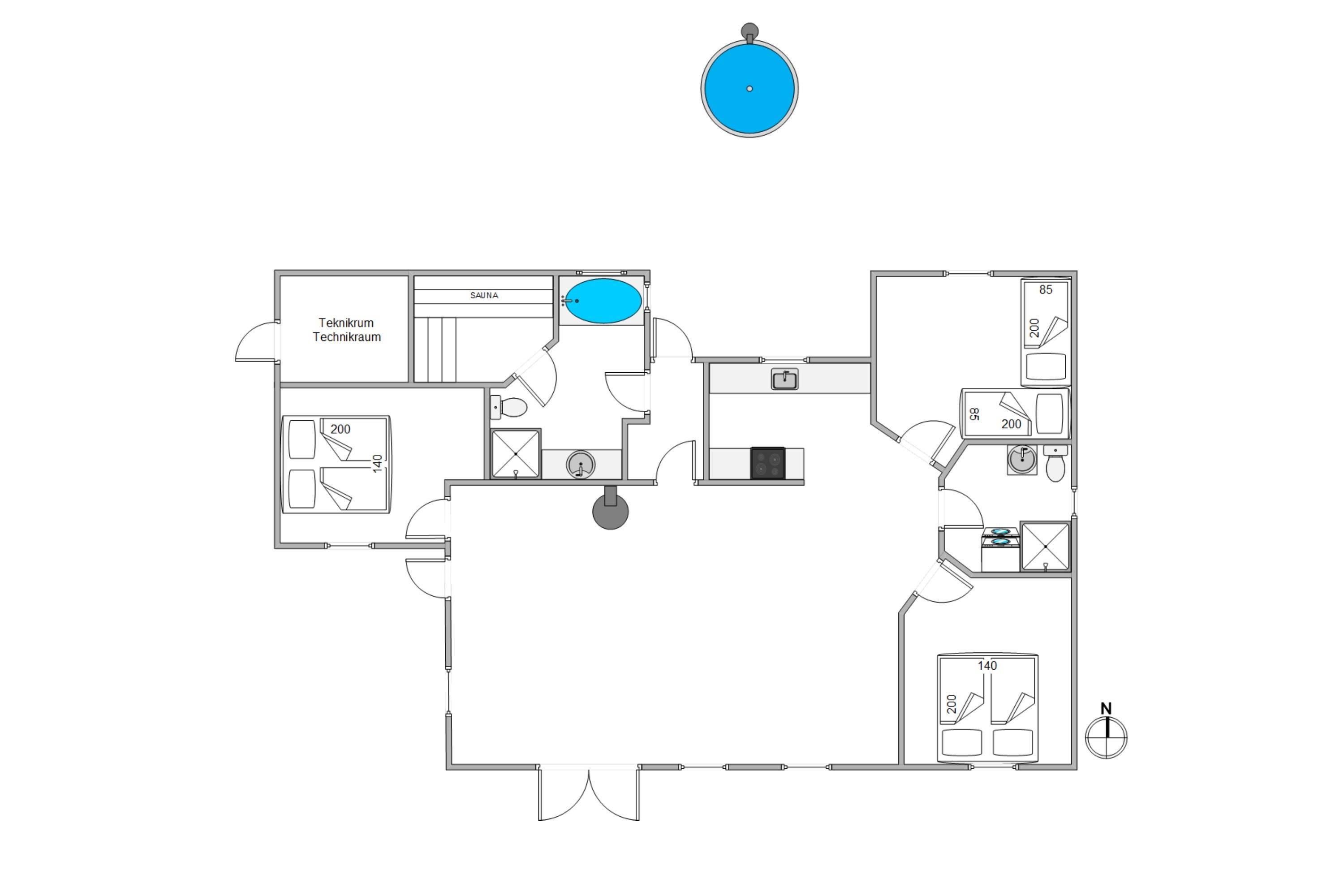 The holiday home features three bedrooms where you can enjoy restful sleep after an active day in nature. Both bathrooms are fitted with underfloor heating for additional comfort. One bathroom also includes a whirlpool, perfect for relaxing moments after an active day outdoors.