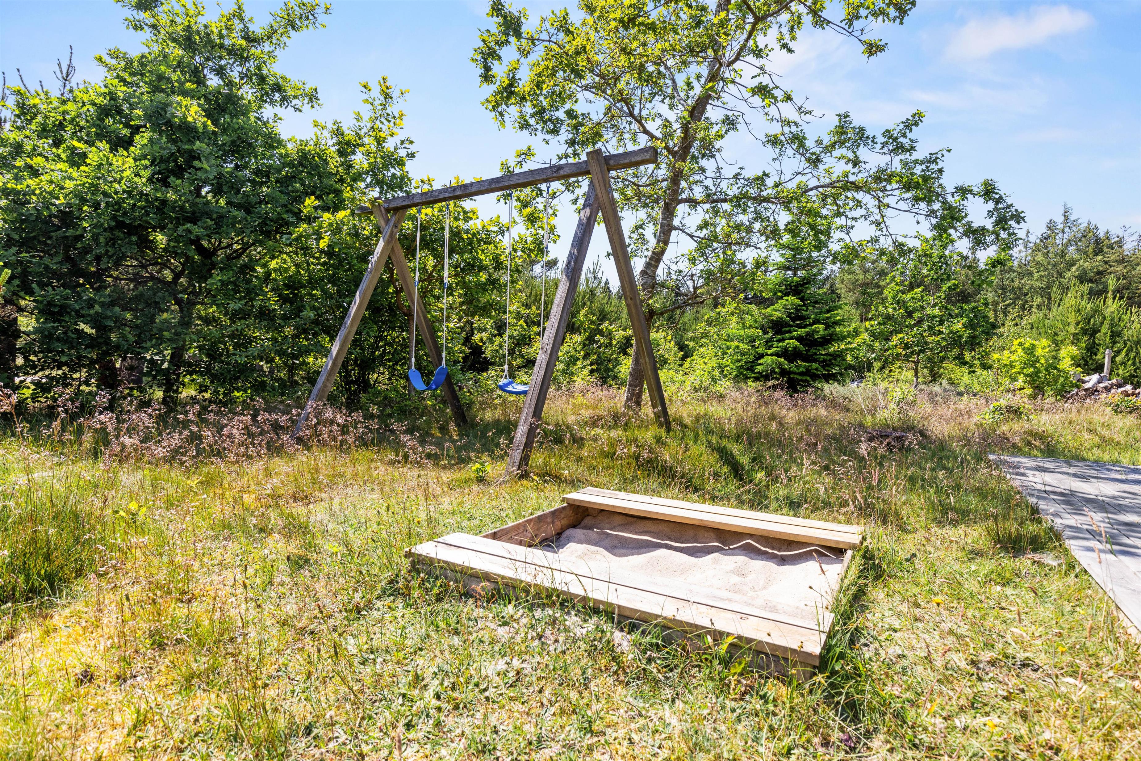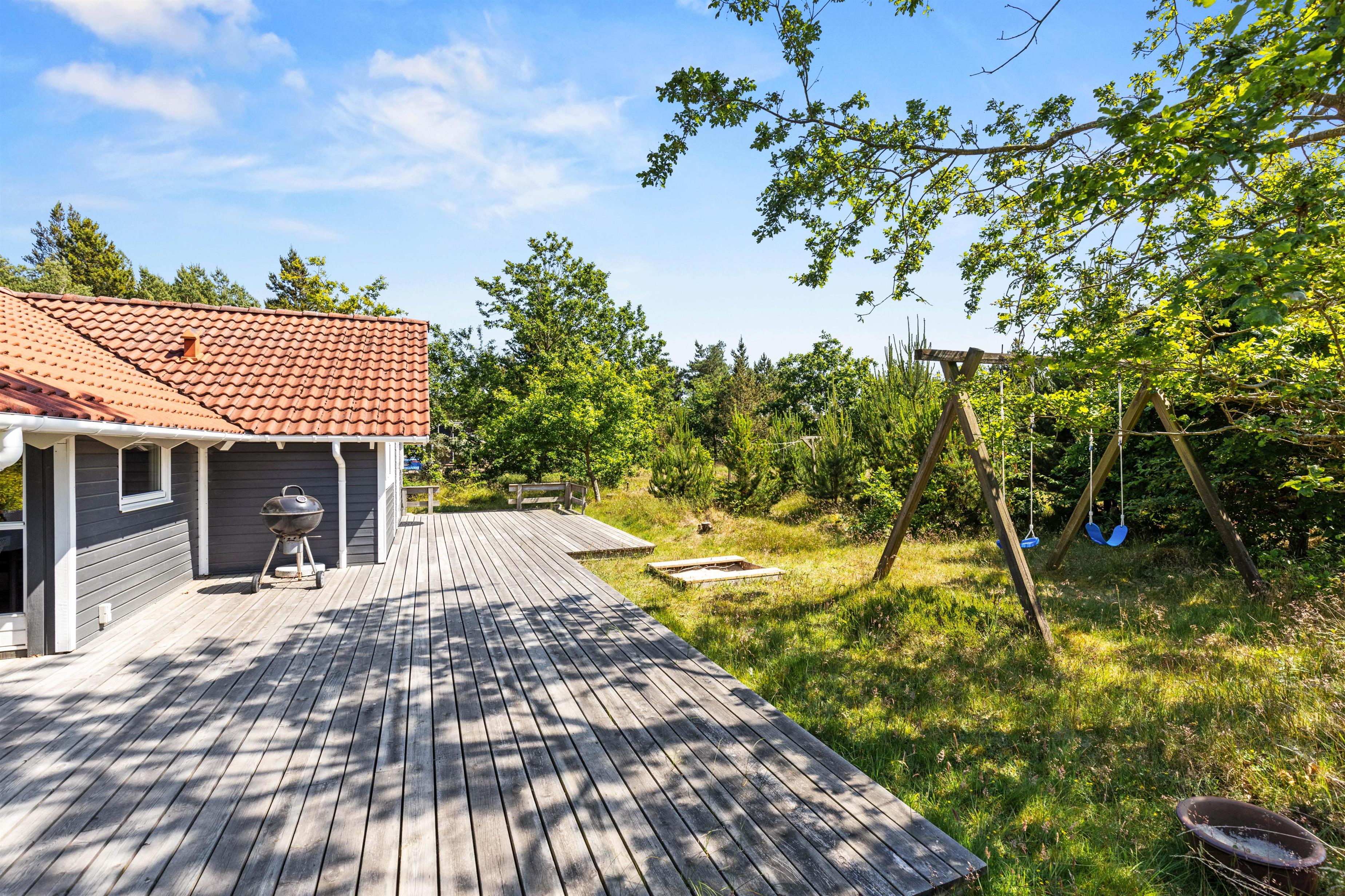 This holiday home sits on a naturally landscaped plot directly beside woodland. While you relax on sun loungers on the large wooden terrace, children can play freely in the expansive grounds, enjoying the swing set or sandpit.