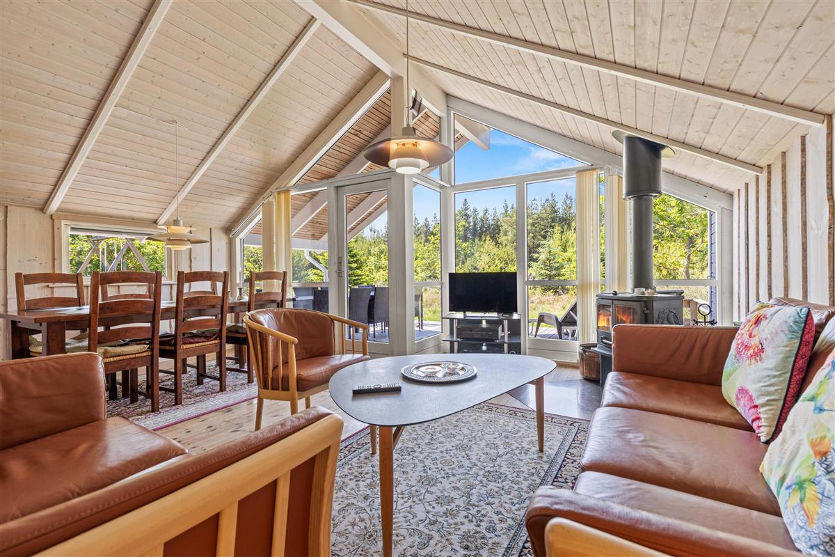 The numerous windows in the open-plan living and dining area provide plenty of light and a friendly atmosphere. Here you can read on the sofa or play cards together and plan your next excursions. The wood-burning stove is a particularly nice feature, providing cosy warmth on colder days. After cooking together in the open-plan, well-equipped kitchen, you can eat together in the dining room with a view of the large natural garden or on the large terrace. The dishwasher takes care of the washing up for you.