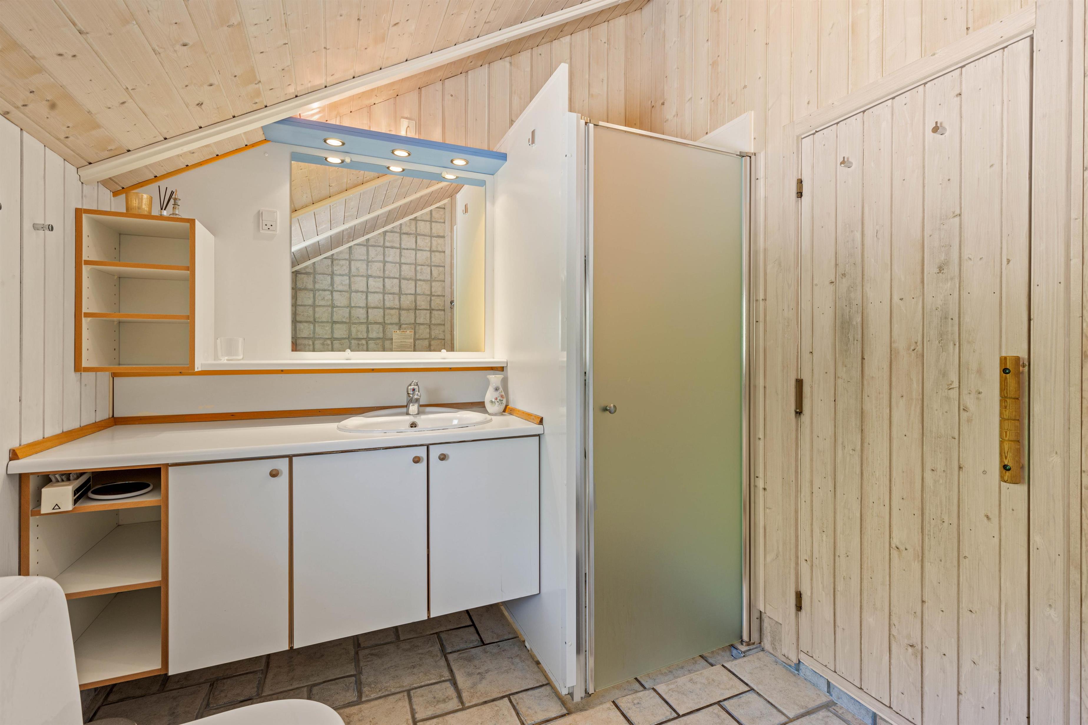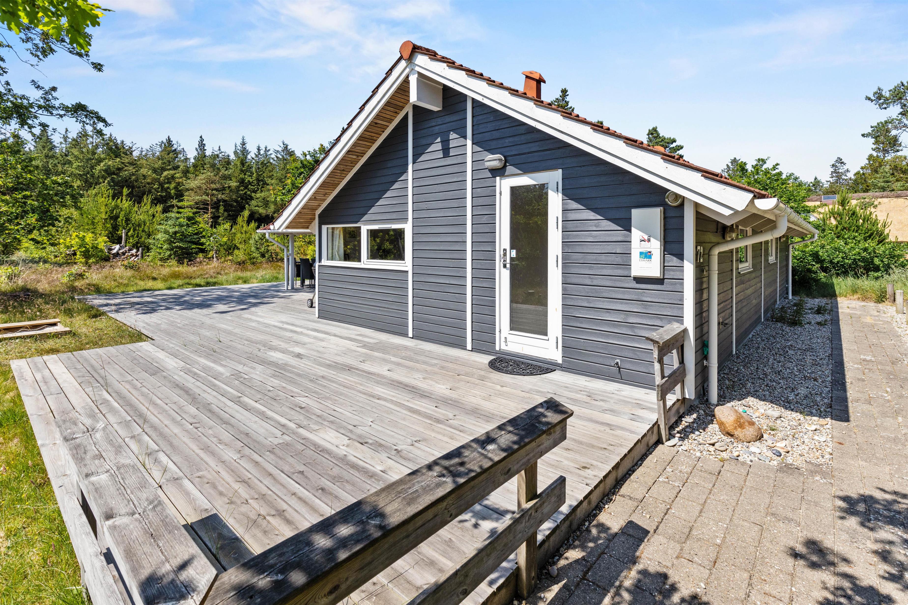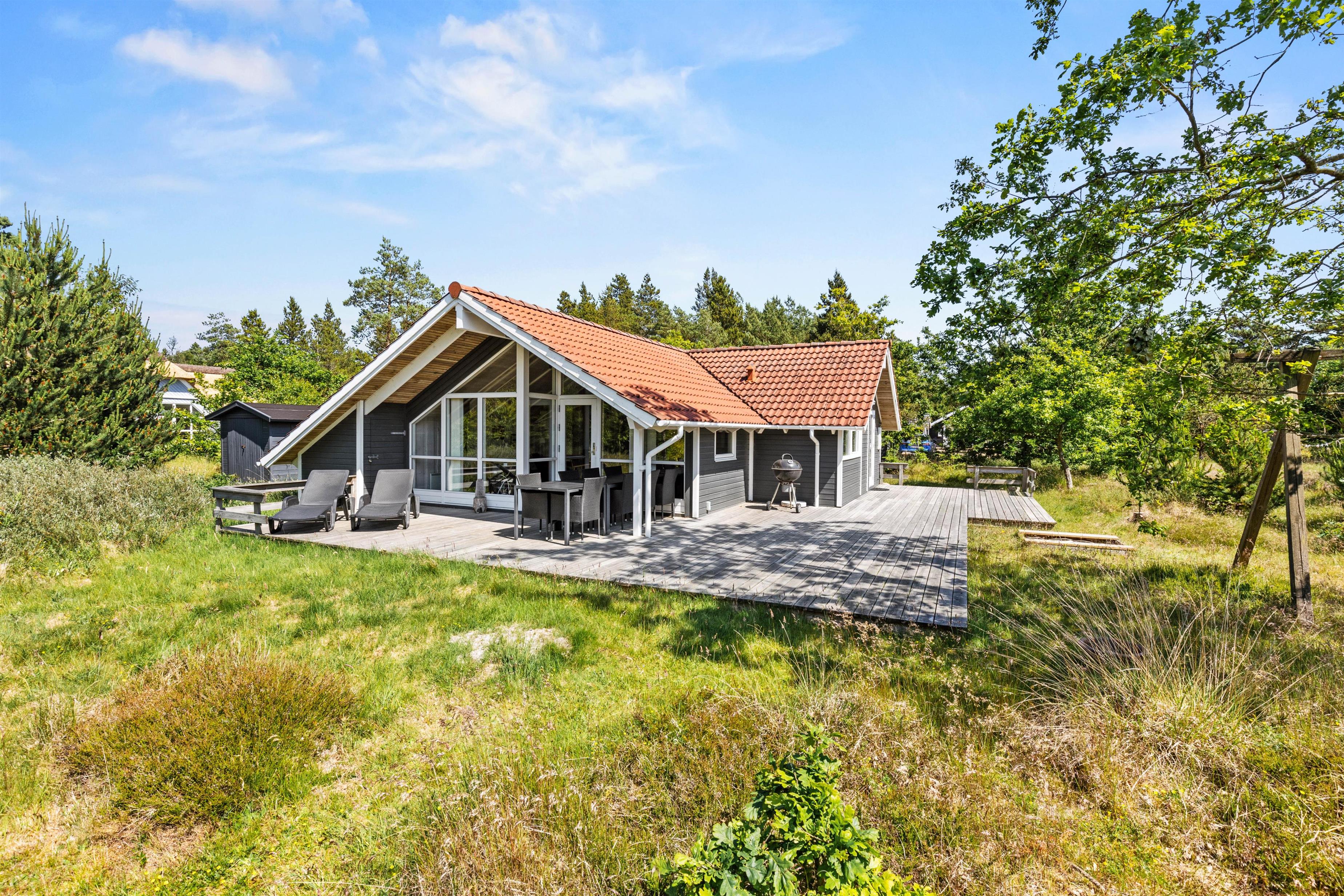 Trees lining the holiday home provide wind protection and natural boundaries with neighbouring plots. Many walking paths through the nature reserve, just 100 metres away, invite extended exploration of Nordic woodland. The sea and beach are only 1.9 miles (3,000 metres) away. The nearest shop is 2.5 miles (4,100 metres) away.