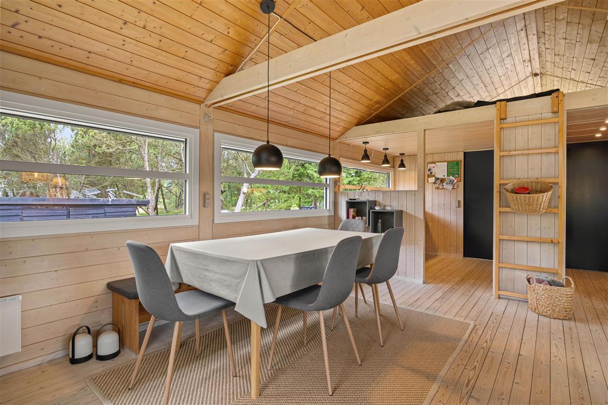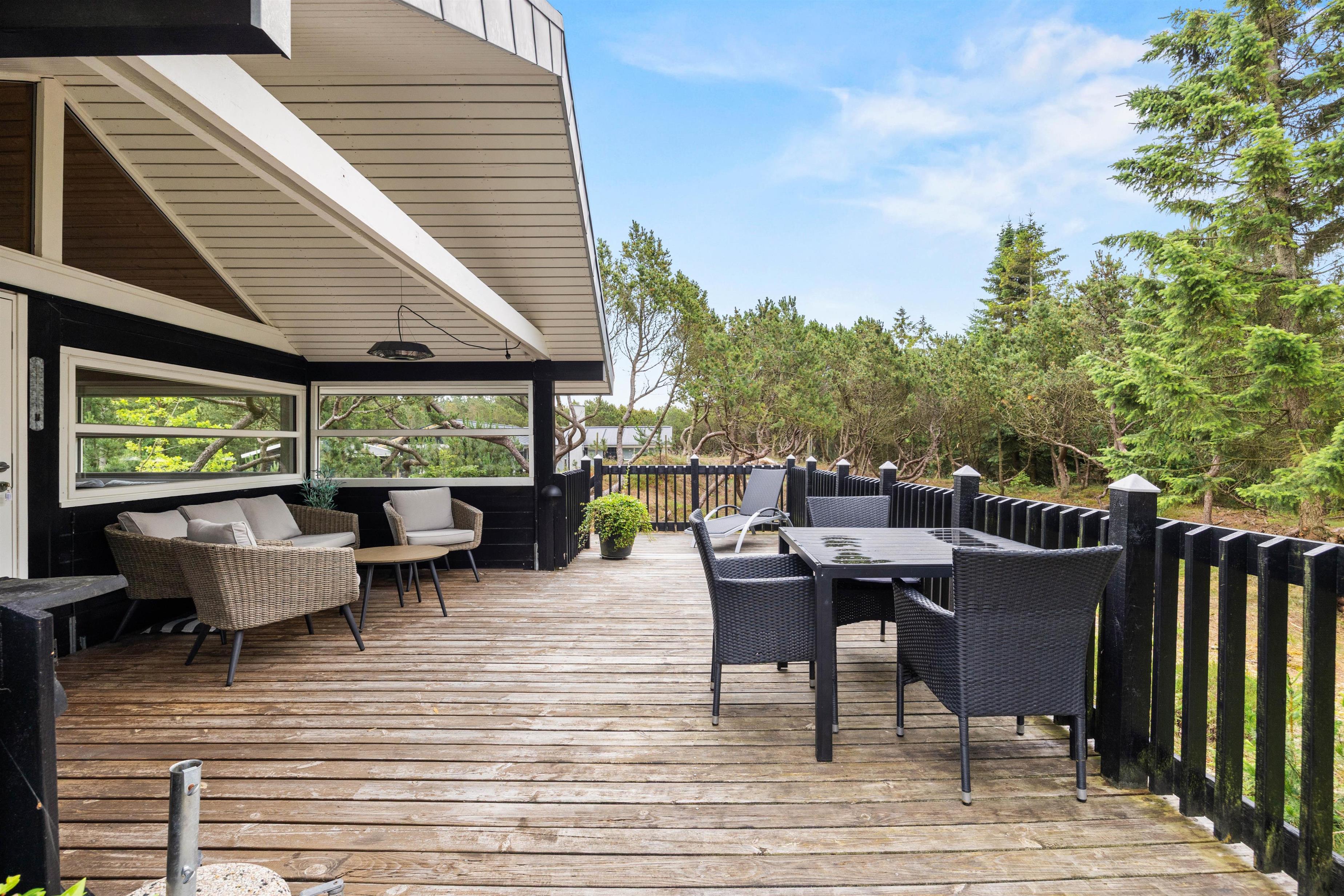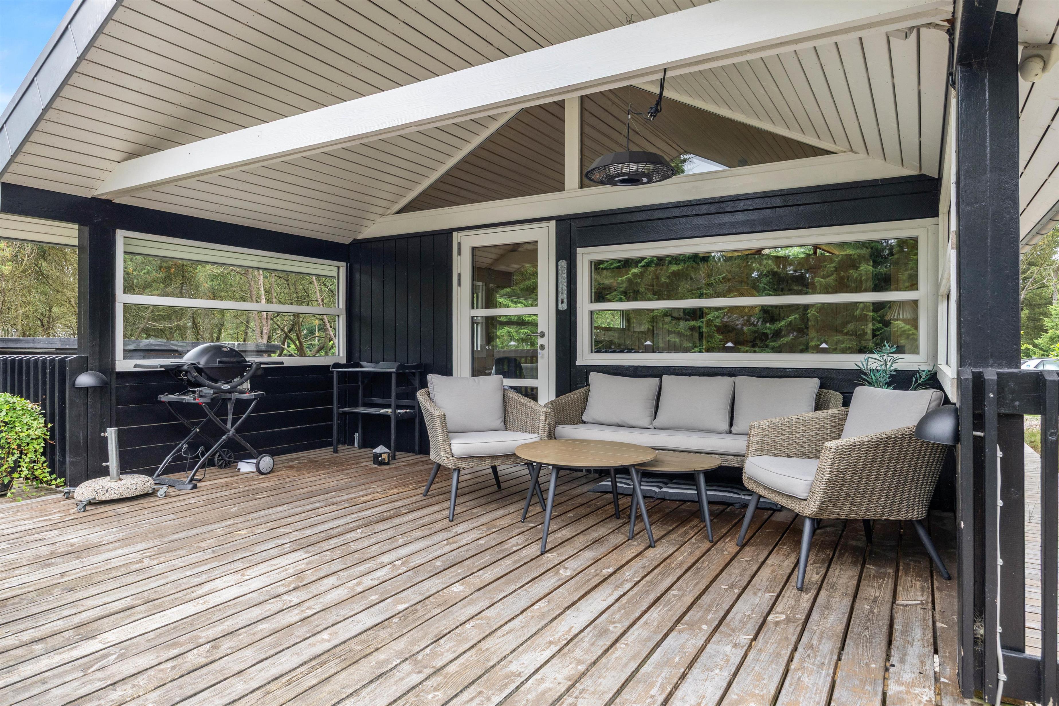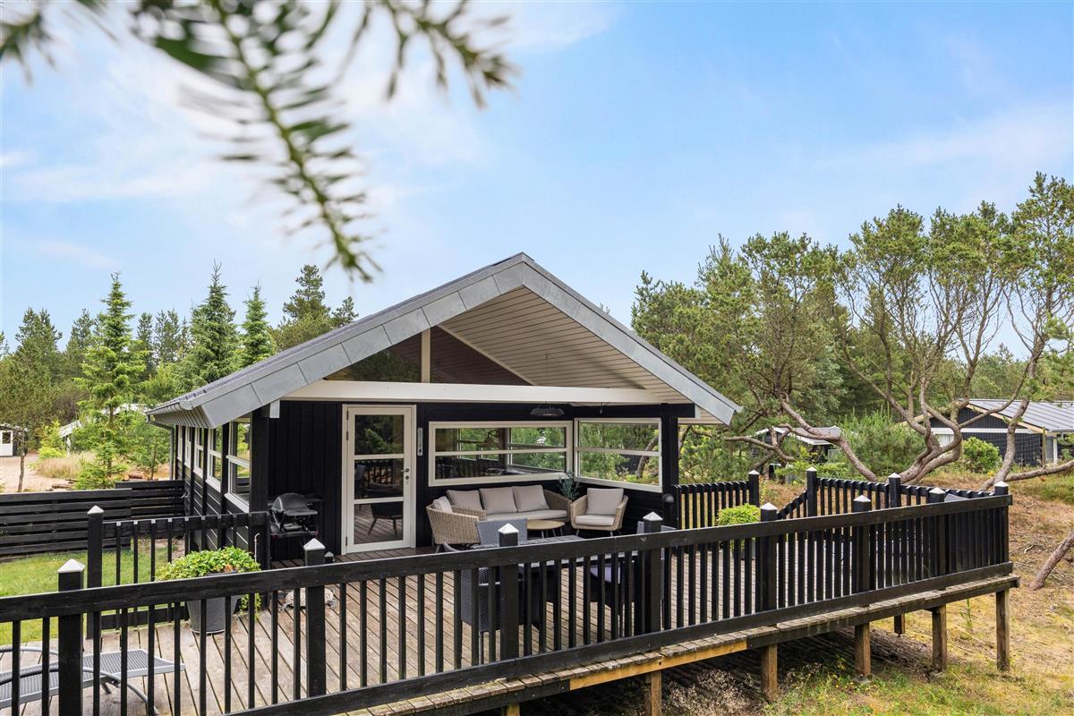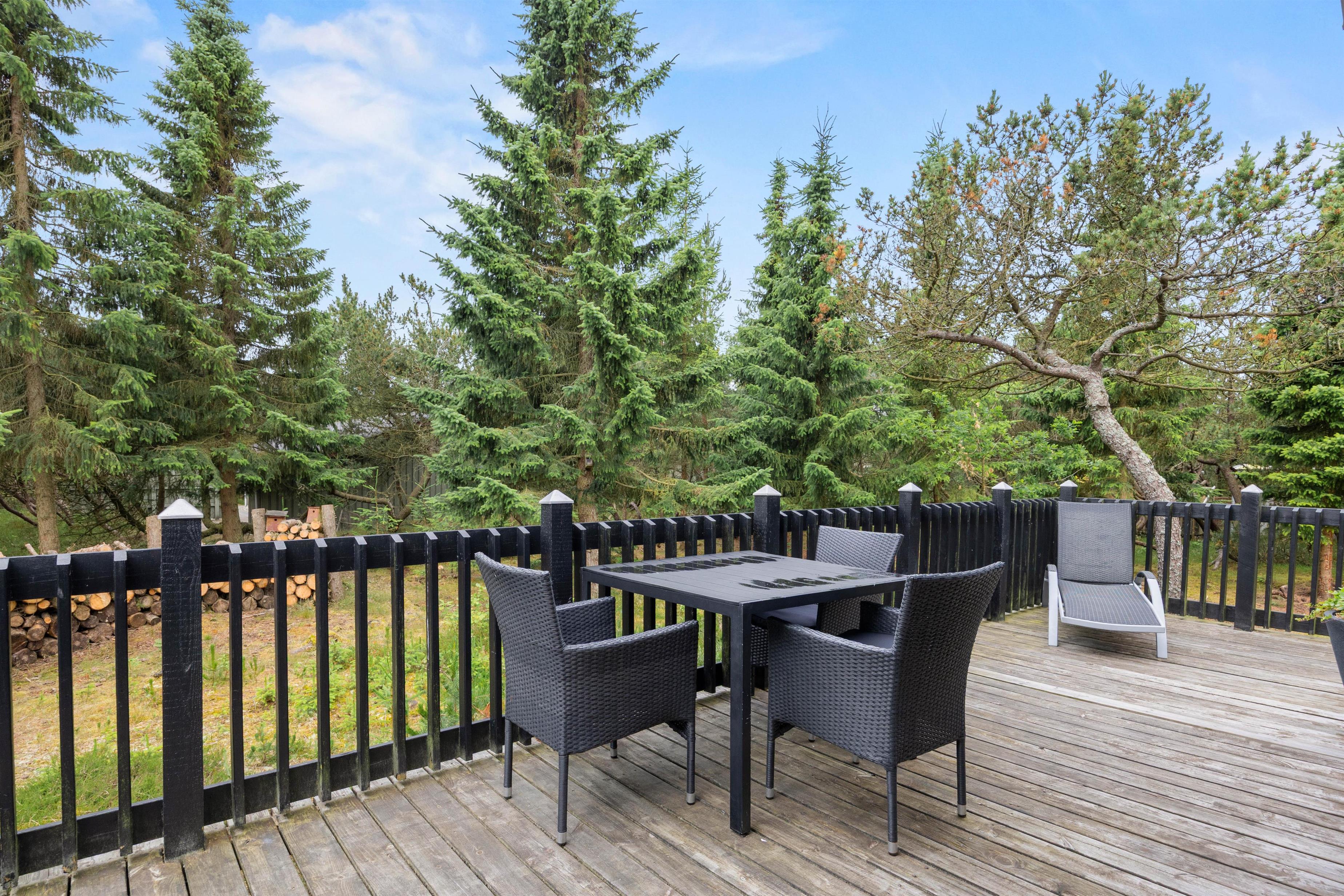 This charming Danish holiday home stands out for its spacious wooden terrace, which resembles a wide balcony. While modest in size, the house offers a cosy and relaxing holiday atmosphere in a compact space.