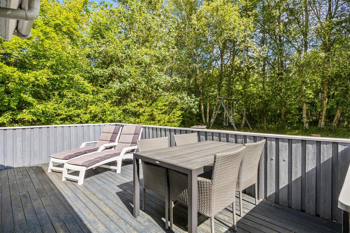 The holiday home is surrounded by well-maintained grounds of 2,000 square metres, offering plenty of space for outdoor activities. The partially covered terrace is perfect for barbecue evenings. Comfortable garden furniture ensures relaxed outdoor living and lounging.