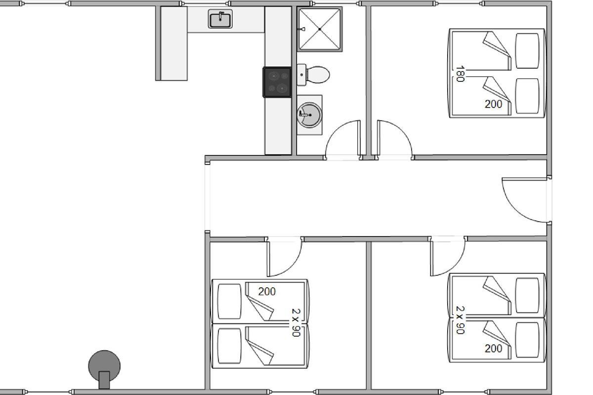Spanning a generous 84 square metres, the holiday home provides ample space for up to 6 people, ensuring comfort in every room.