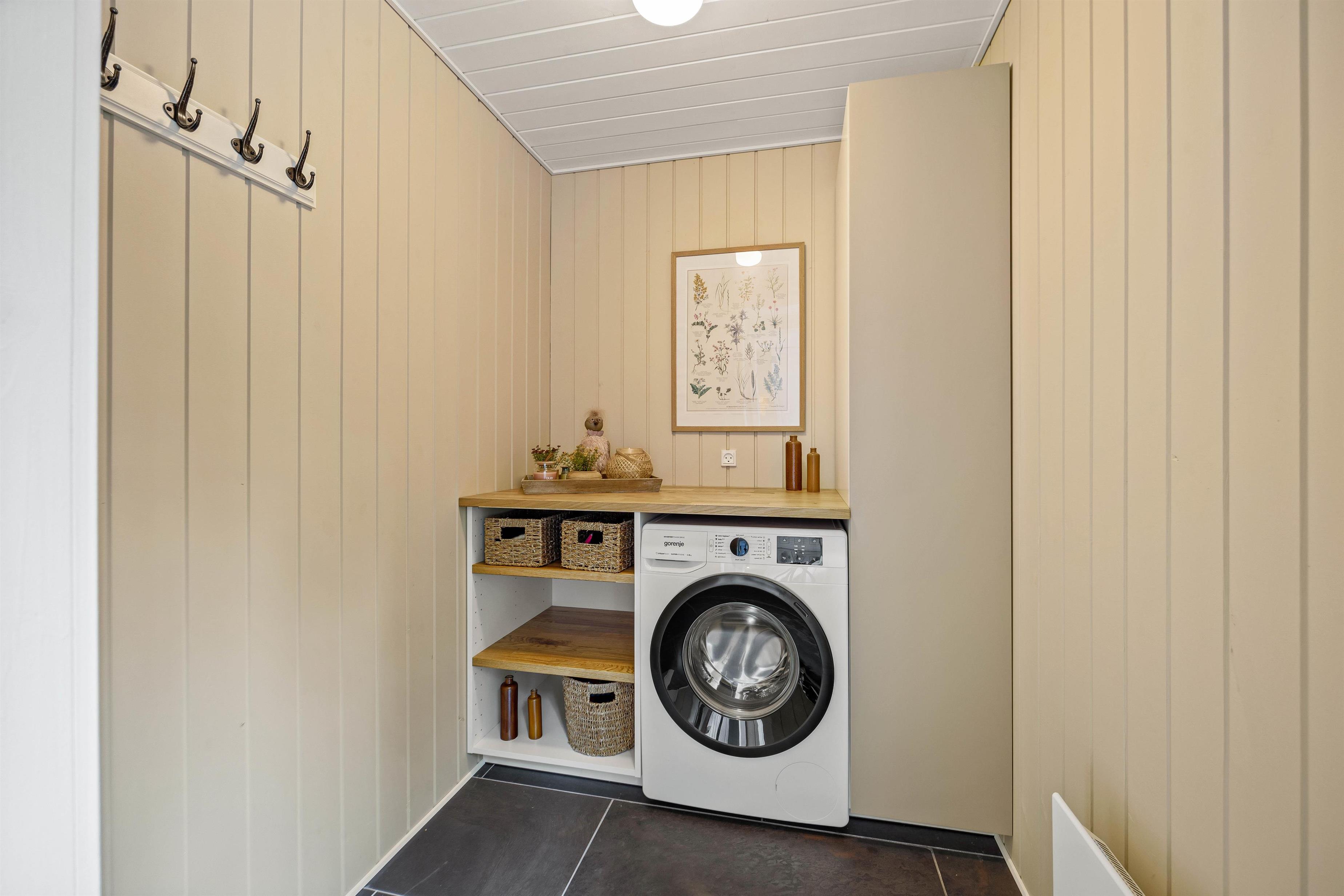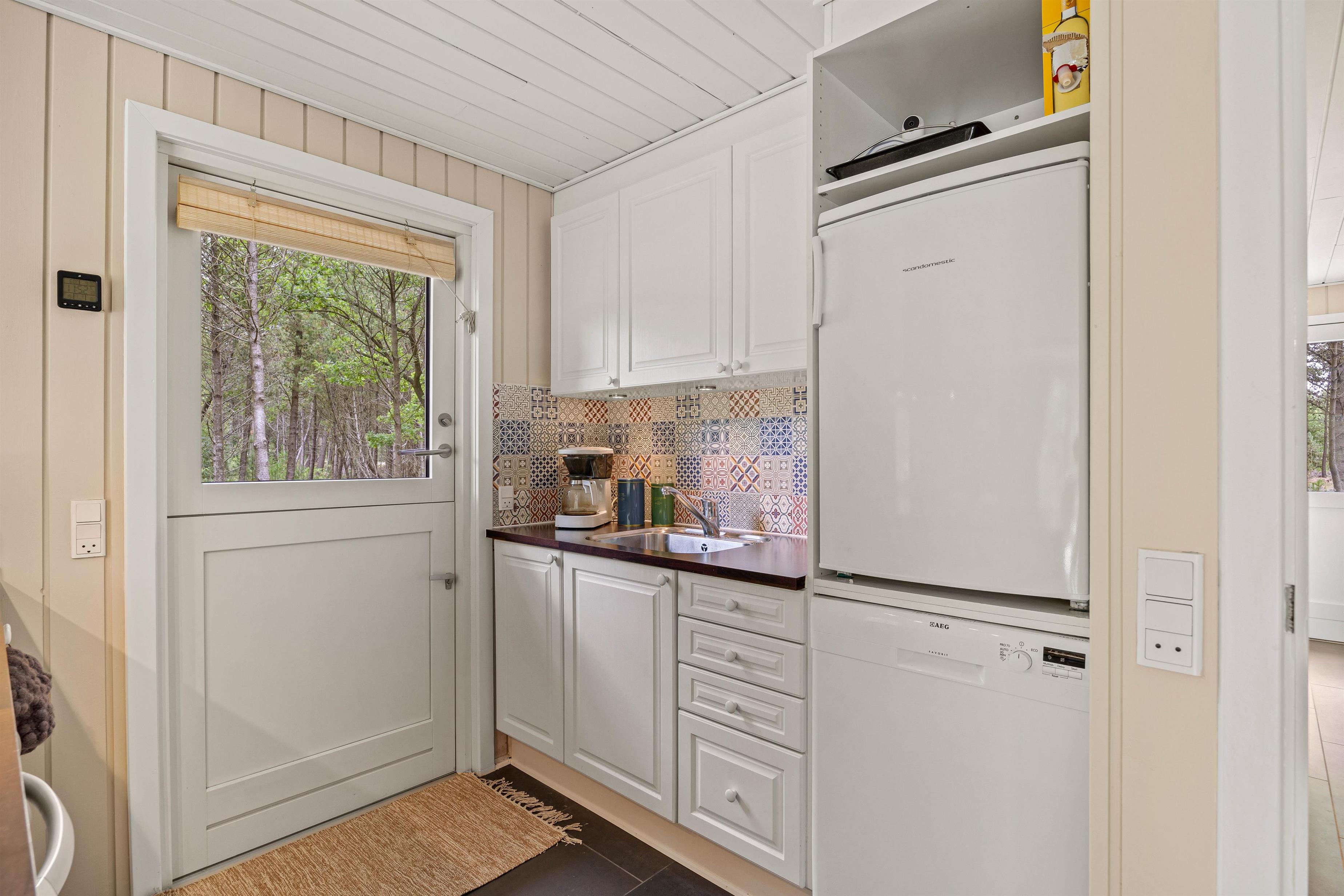 Easy-care laminate flooring runs throughout all rooms, while the kitchen, entrance area and bathroom are tiled. Next to the front door, there's a practical storage room for shoes, coats and other items, while the washing machine ensures fresh laundry throughout your stay.