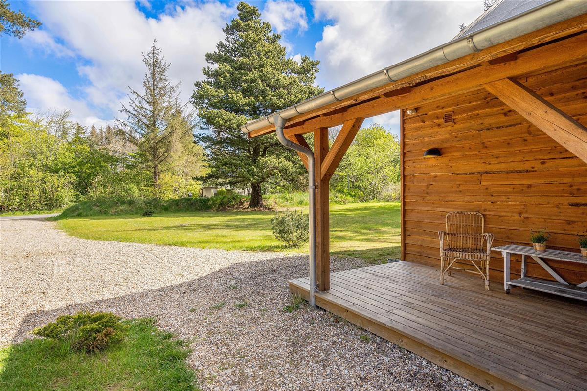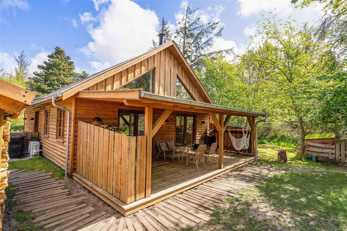 This beautiful wooden house is situated in a secluded spot, directly adjacent to Houstrup's forest, the Blåbjerg Plantage. Here, you truly feel like you're living in the heart of the forest. The birdsong in the treetops is both entertaining and relaxing - and you might be lucky enough to receive visits from the forest's resident wildlife.